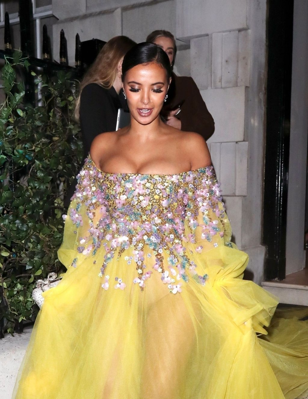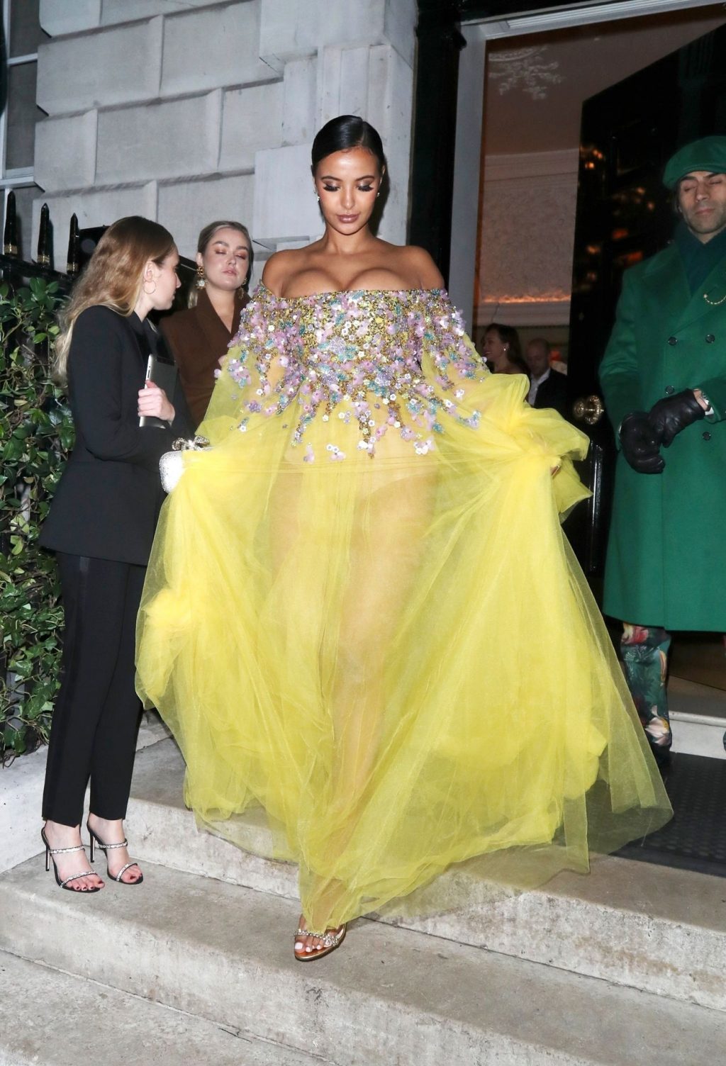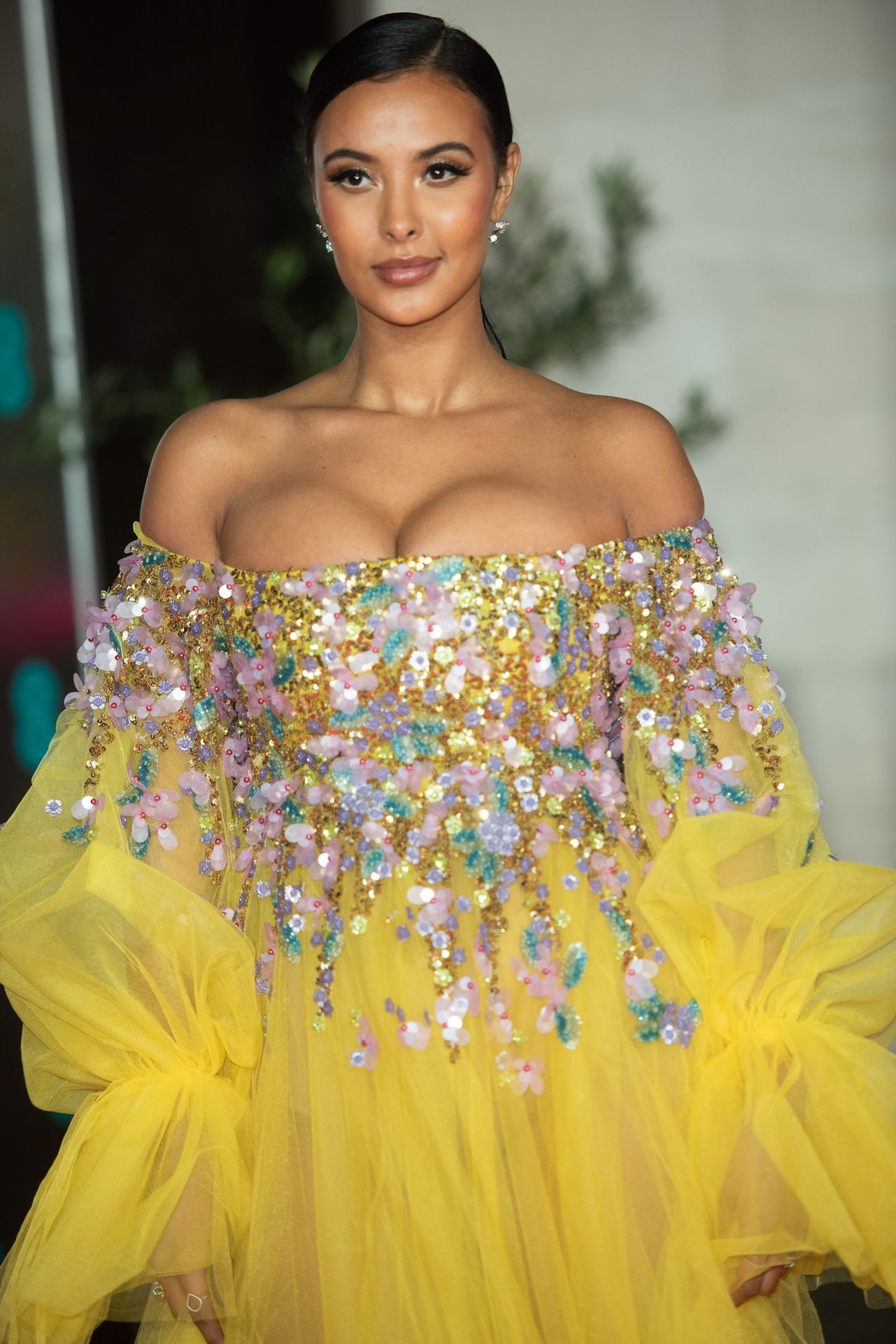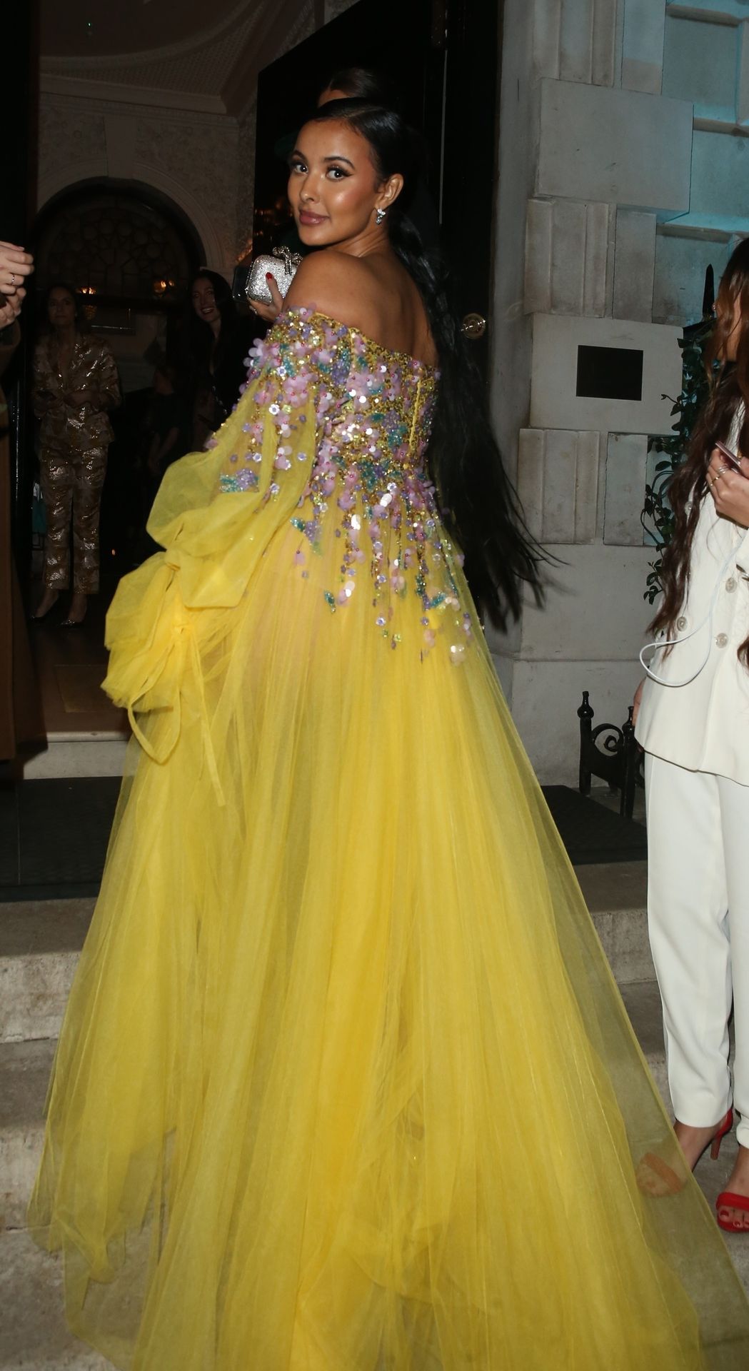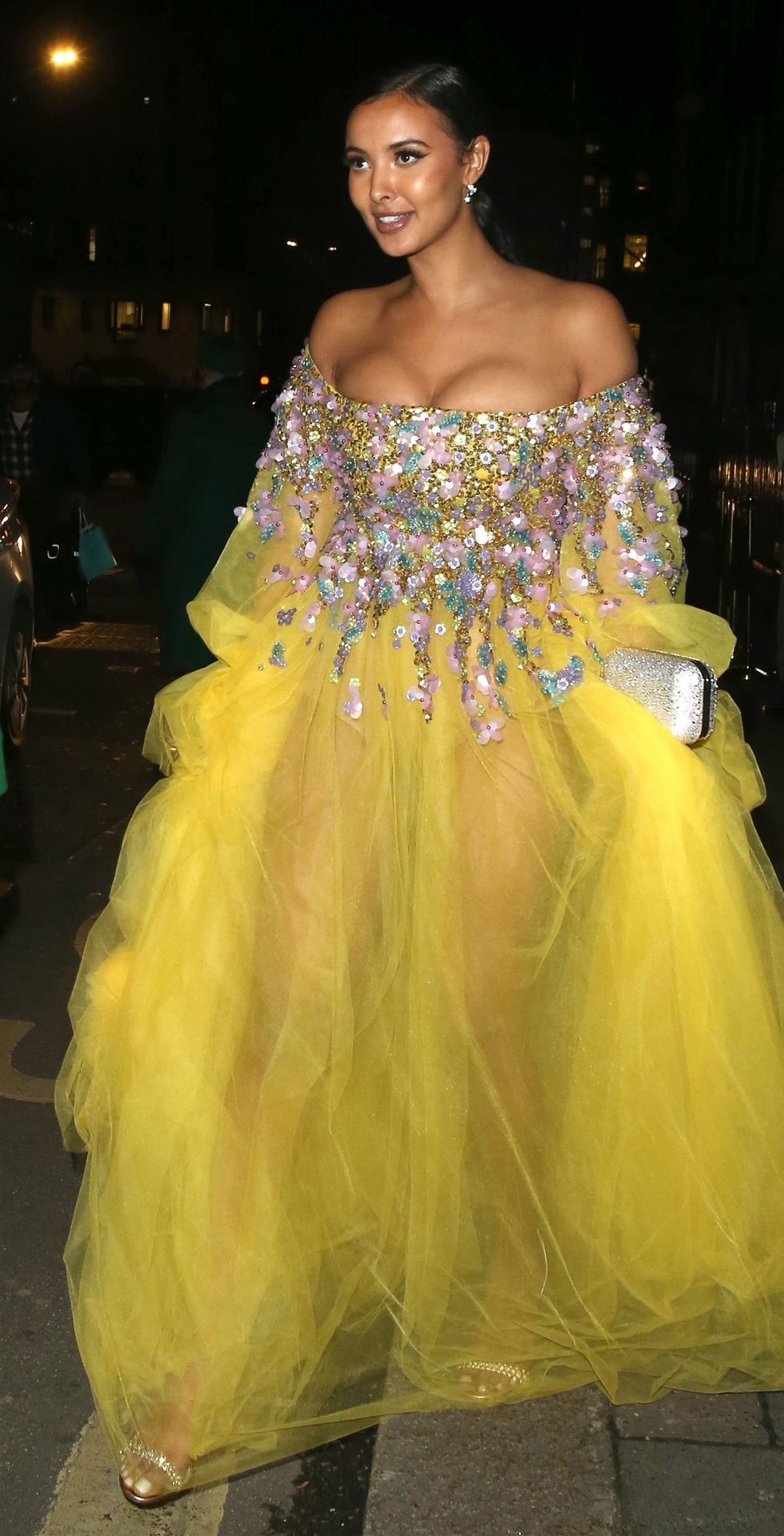 La presentadora de televisión con busto Maya Jama fue fotografiada mientras asistía a la fiesta Celebrate Fashion and Film de British Vogue y Tiffany & Co. en Annabel’s en Londres, 02/02/2020.