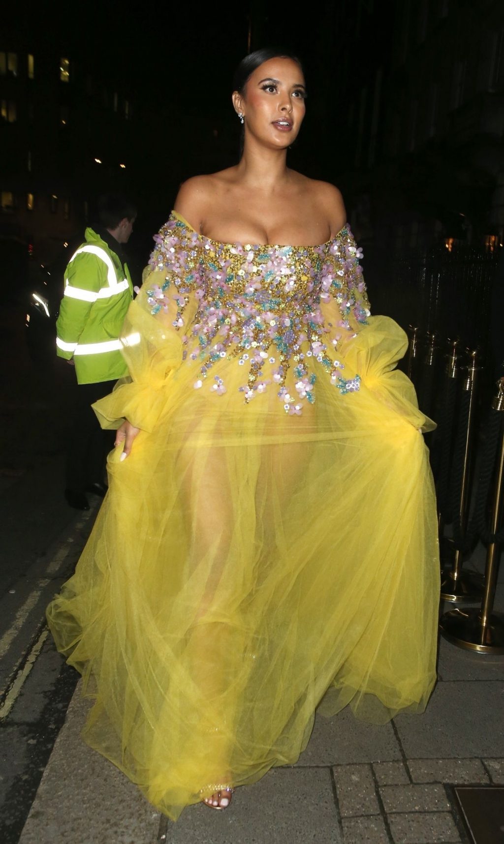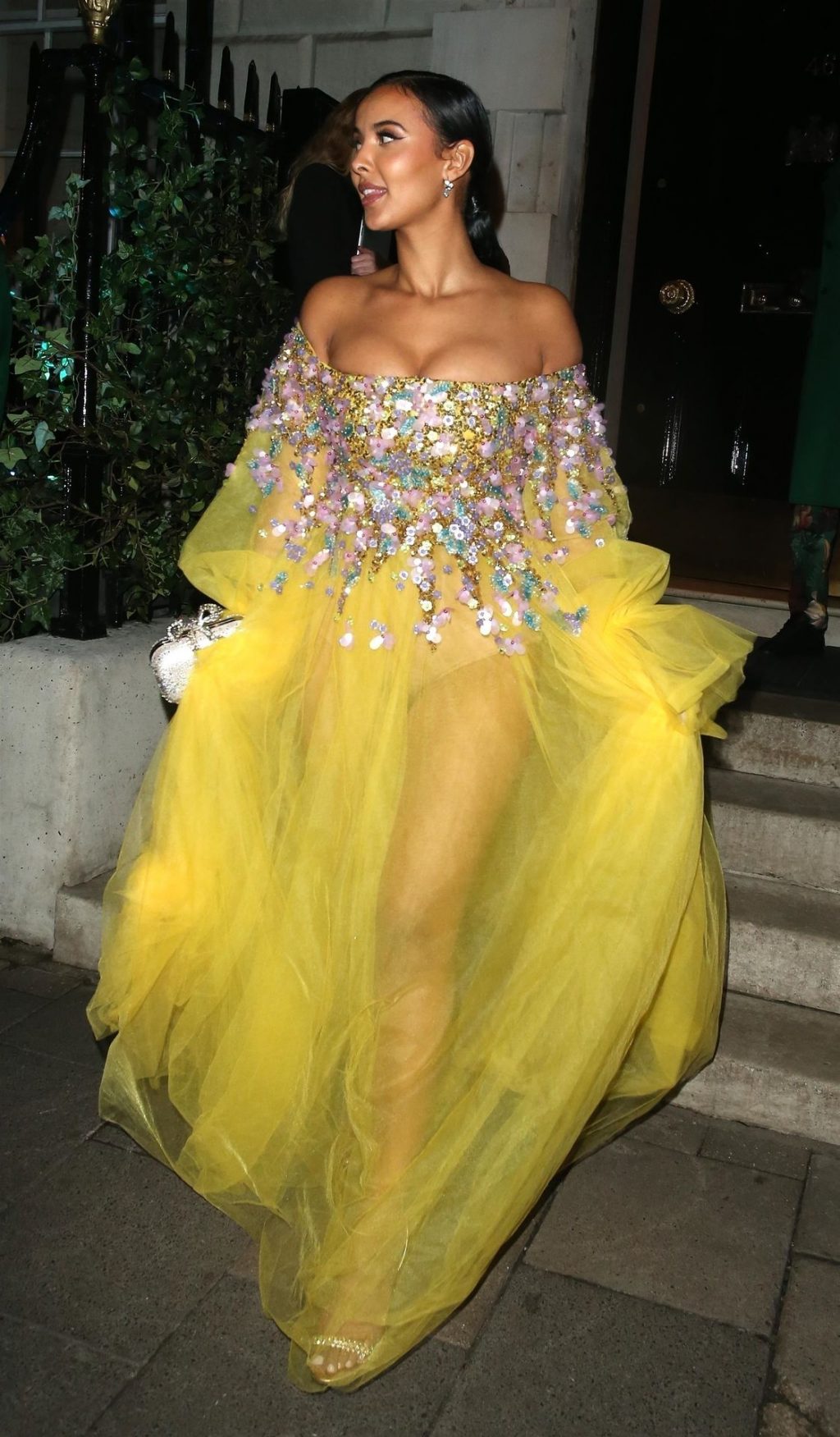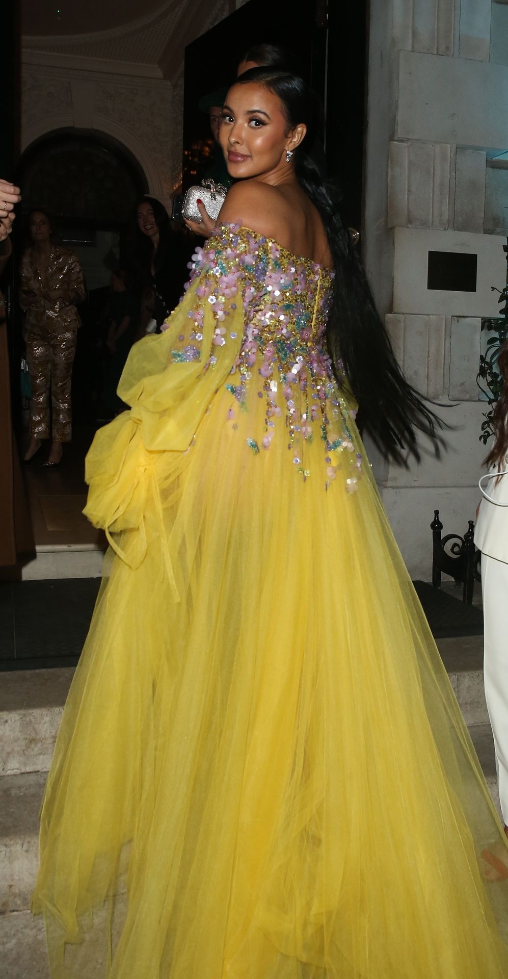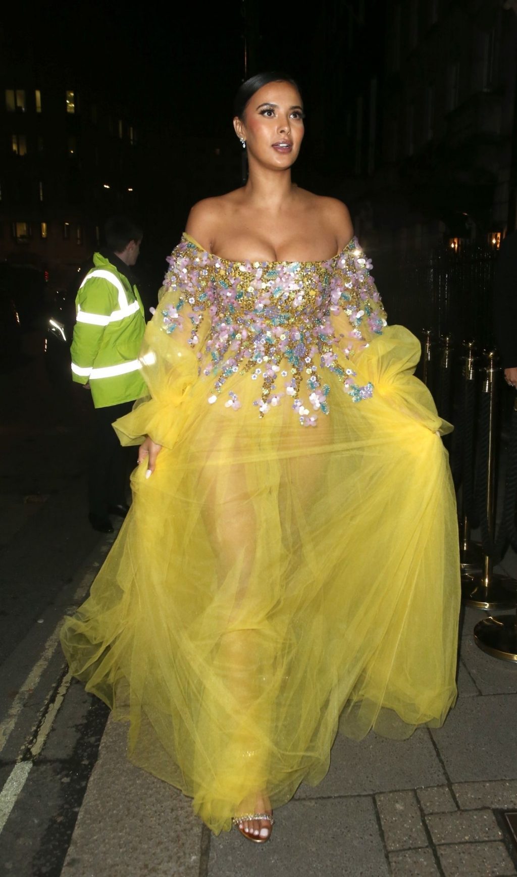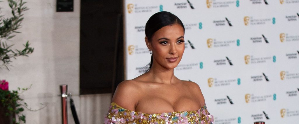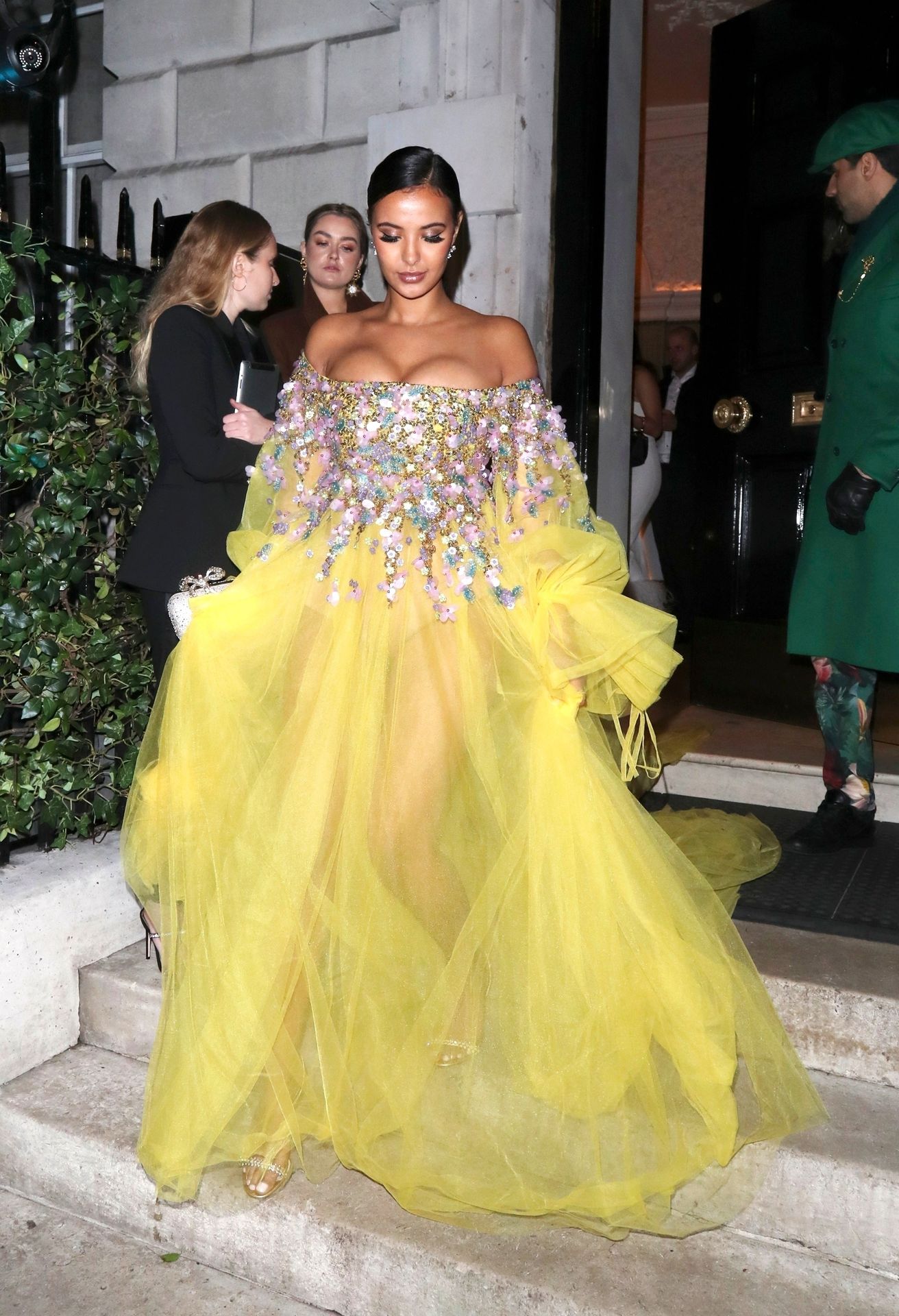 La presentadora de televisión con busto Maya Jama fue fotografiada mientras asistía a la fiesta Celebrate Fashion and Film de British Vogue y Tiffany & Co. en Annabel’s en Londres, 02/02/2020.