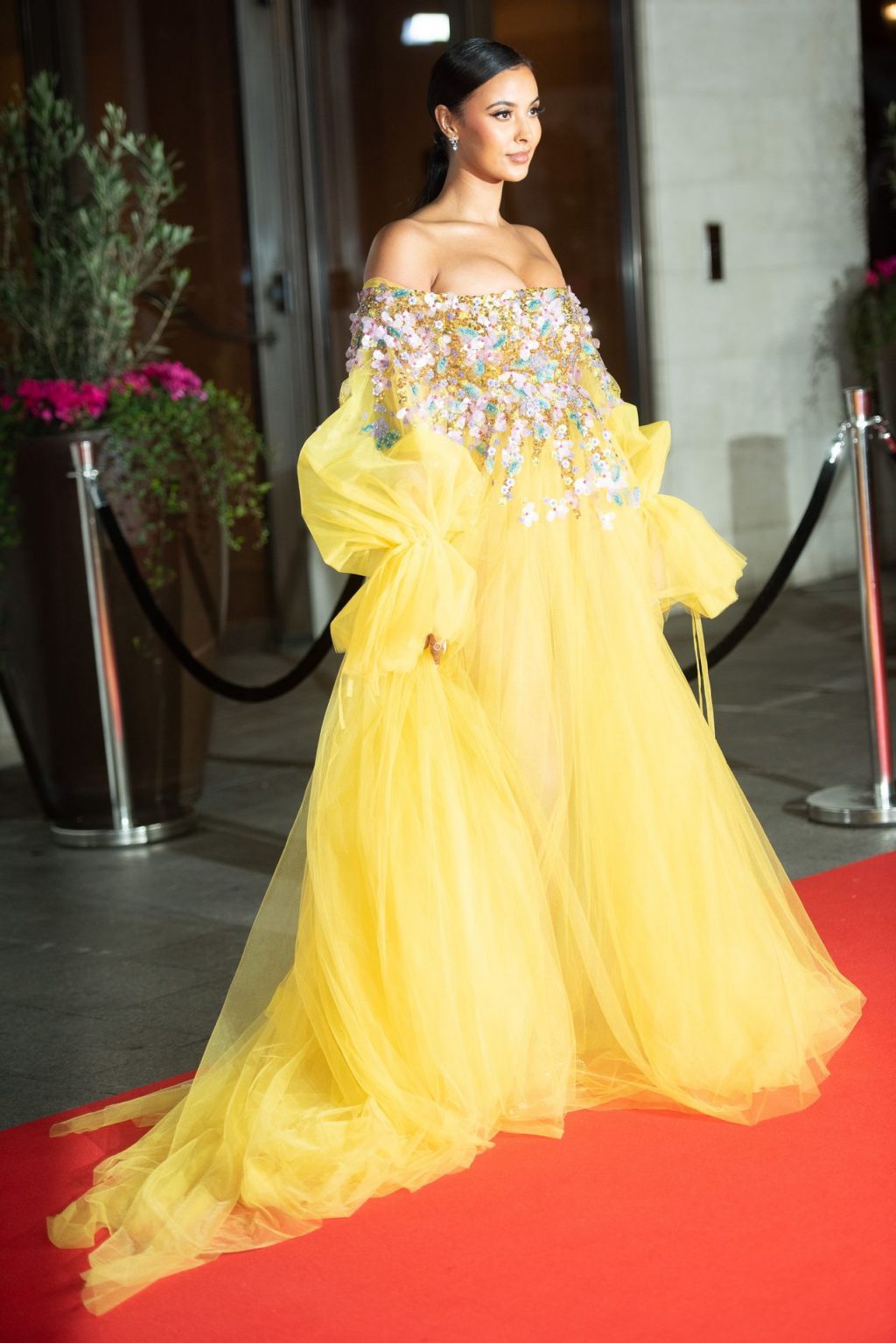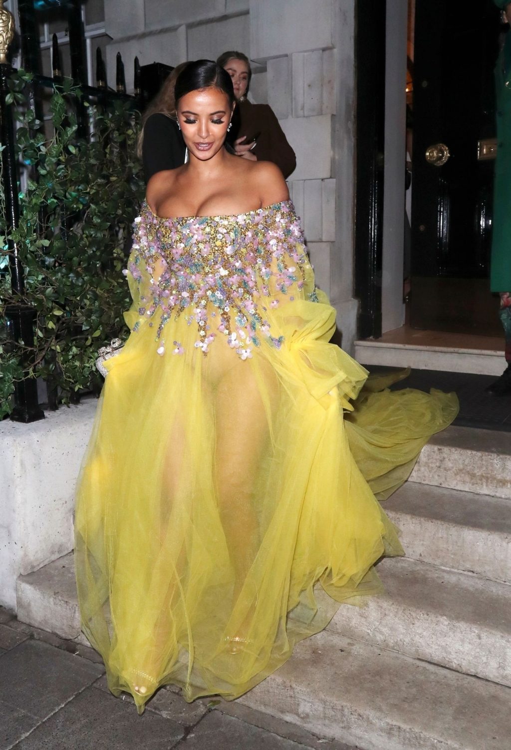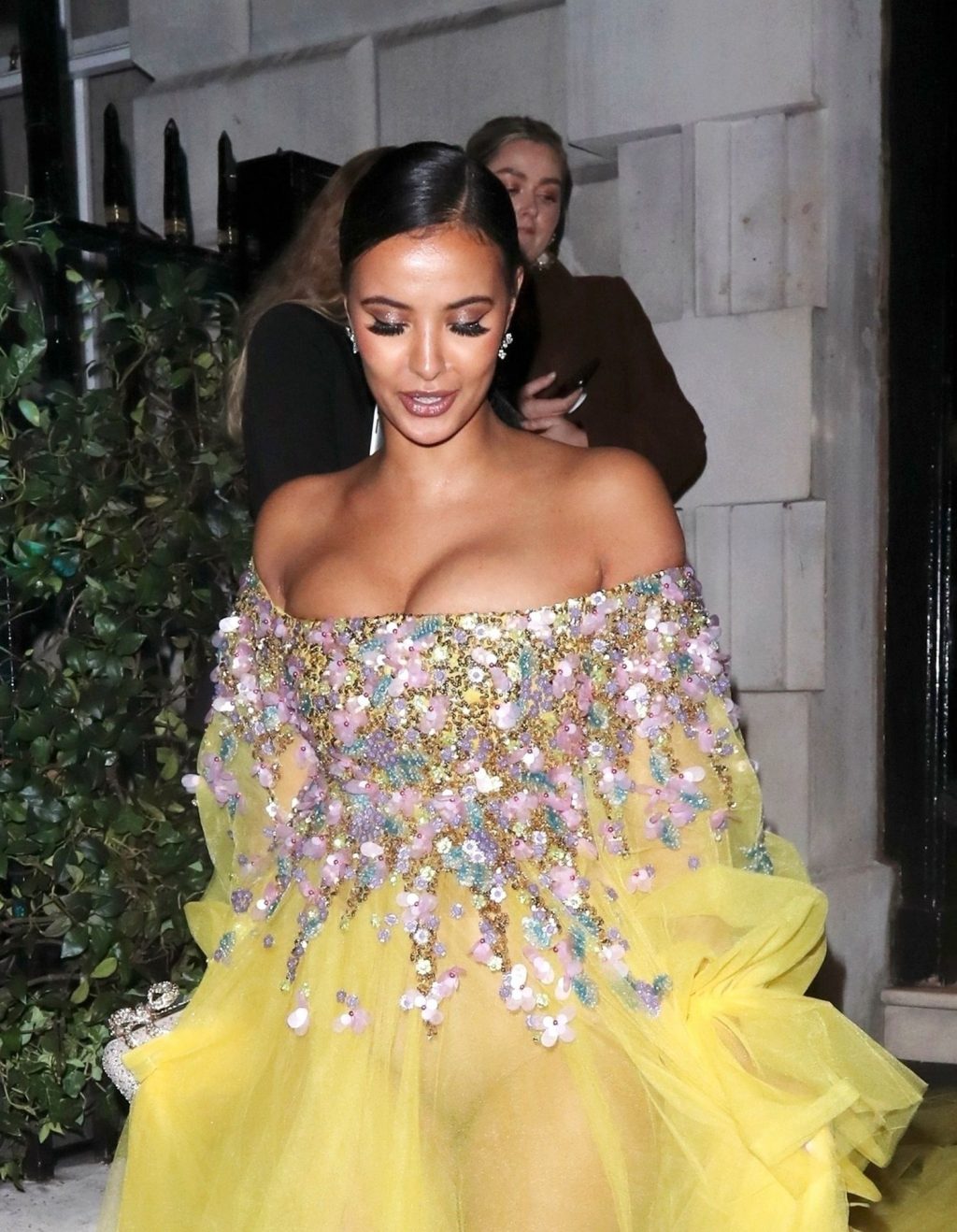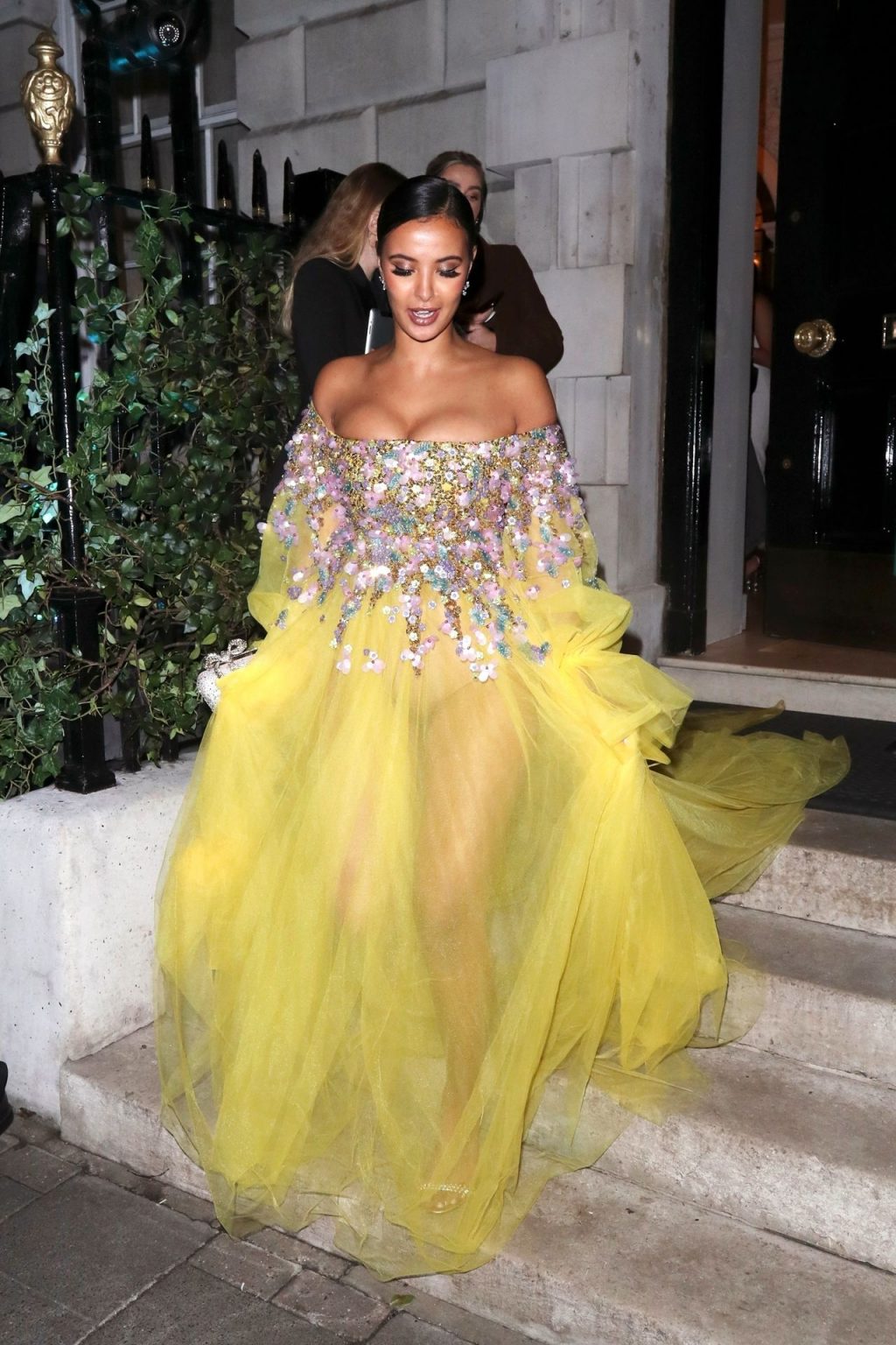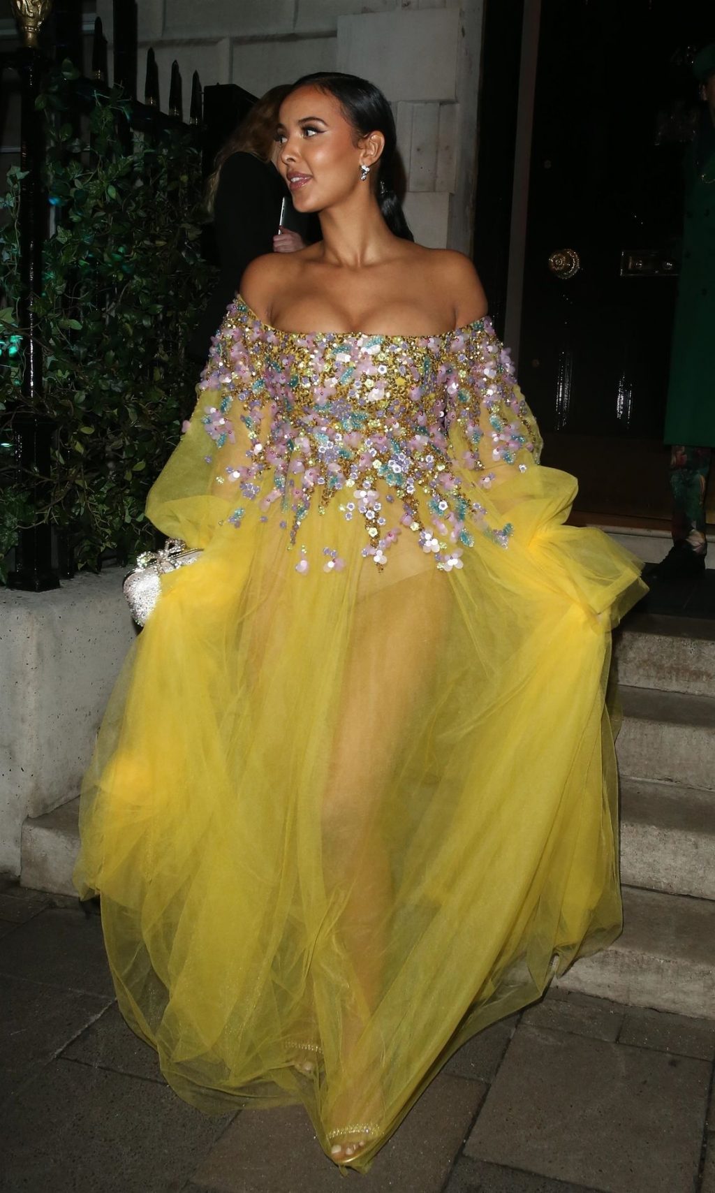 La presentadora de televisión con busto Maya Jama fue fotografiada mientras asistía a la fiesta Celebrate Fashion and Film de British Vogue y Tiffany & Co. en Annabel’s en Londres, 02/02/2020.