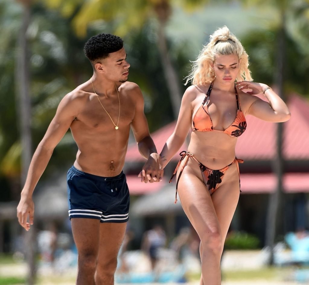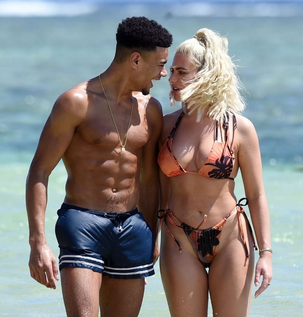A pesar de algunas rupturas románticas entre los concursantes de la serie Love Island 2018, la pareja enamorada Megan Barton Hanson y Wes Nelson sigue fuerte mostrando una exhibición atrevida de afecto en unas vacaciones románticas bañadas por el sol en Mauricio, 12/12/2018.
