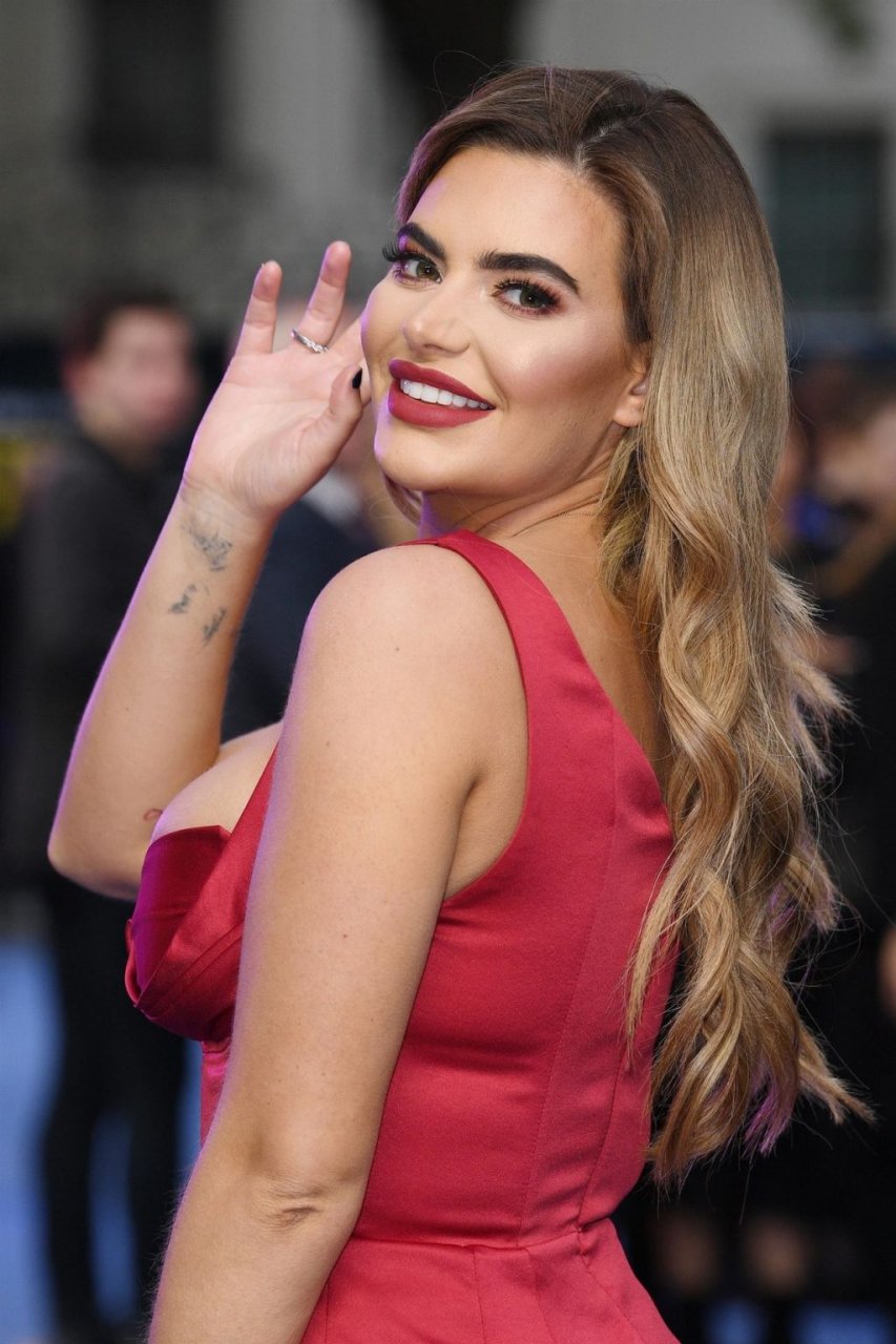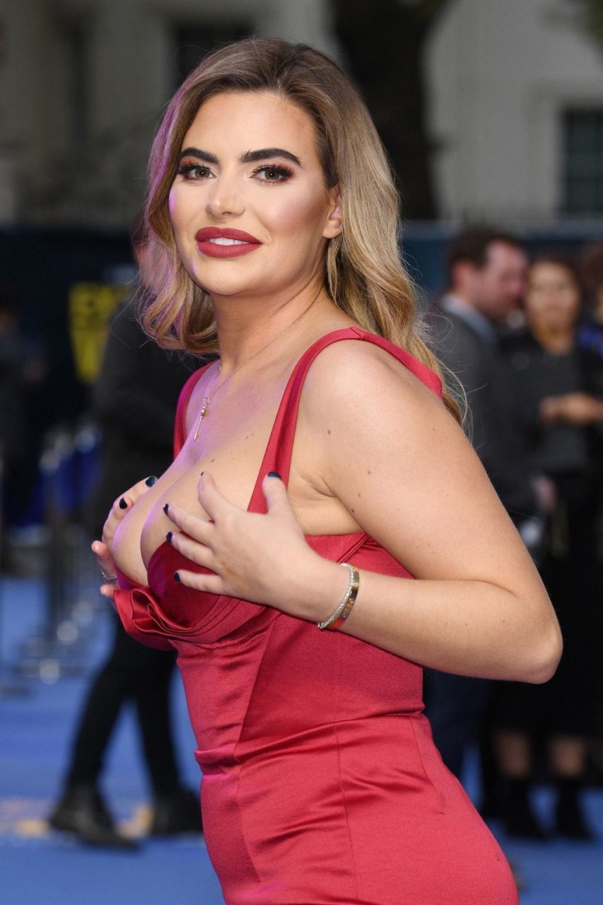 Megan Barton-Hanson asiste al estreno europeo de A Sky Cinema Original – Extremely Wicked, Shockingly Evil and Vile en Curzon Mayfair en Londres, 24/04/2019. La modelo inglesa y estrella de la televisión de realidad eligió para el evento un vestido rojo que destacaba su escote.