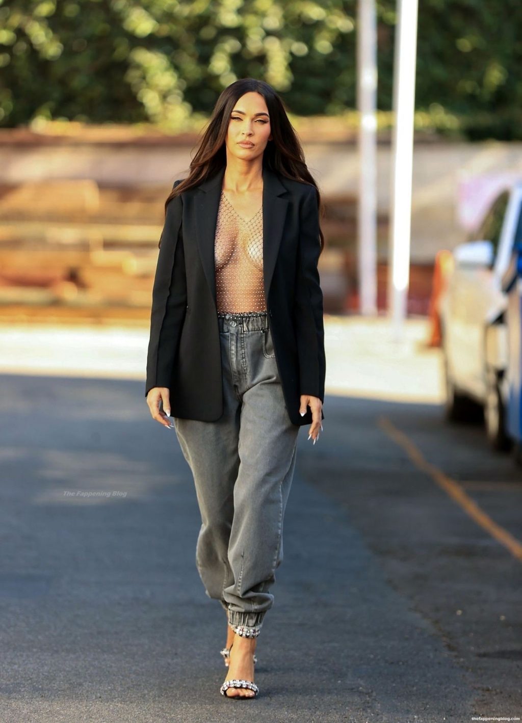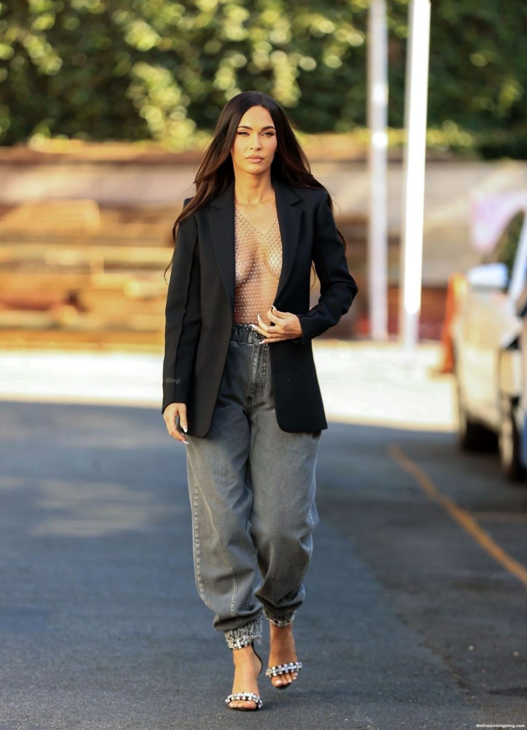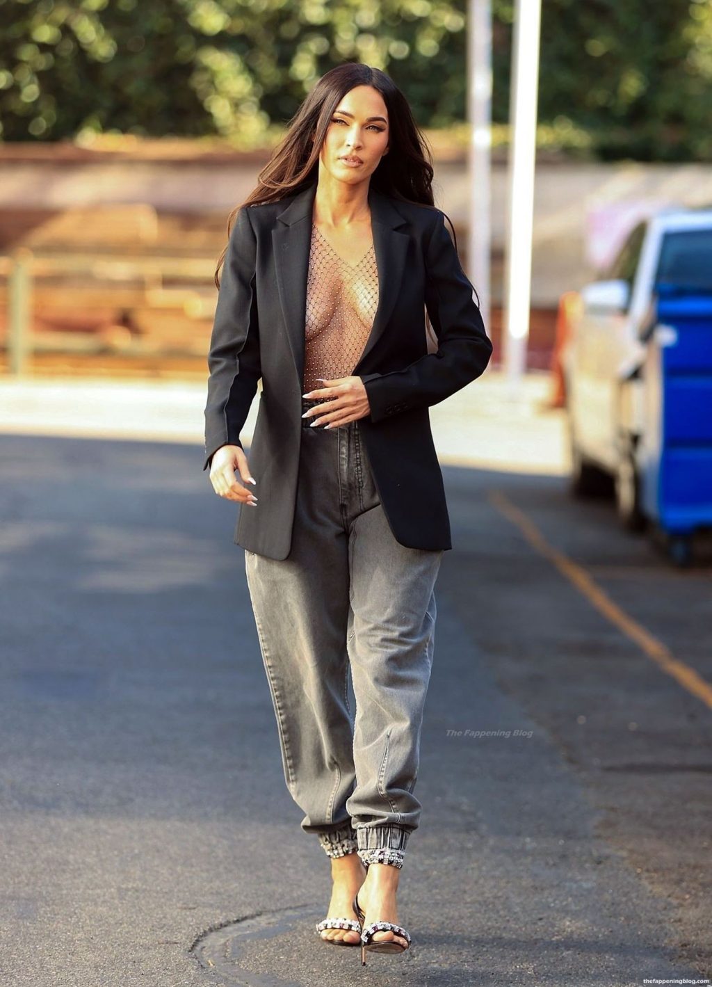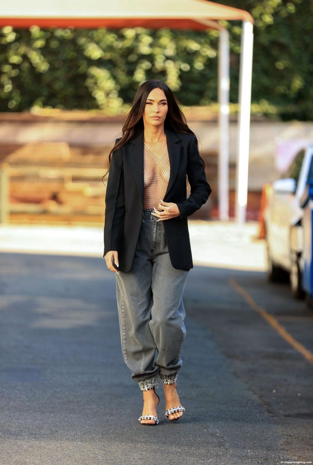 Check this out, fellas! Here are a few photos some sneaky paparazzi took while he caught Megan Fox going for a meeting! Megan Fox’s tits were exposed in a nice cleavage that her coat revealed! Megan chose an all-black outfit that included a cape, leather trousers, and boots. On her way inside, she flashed a snapshot to the cameras, displaying her flawless skin. This was shot in Los Angeles earlier last month!