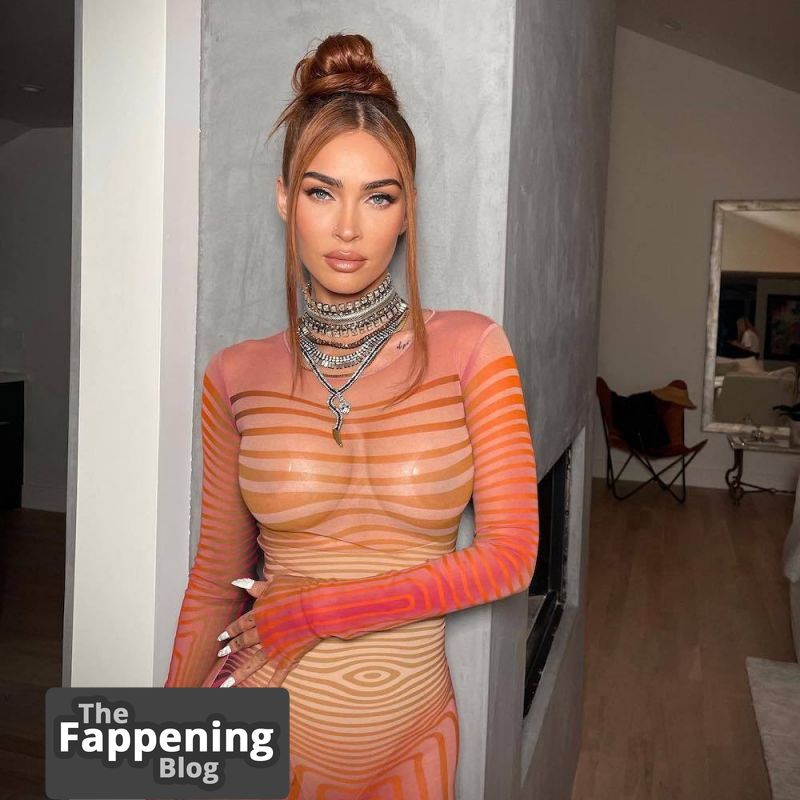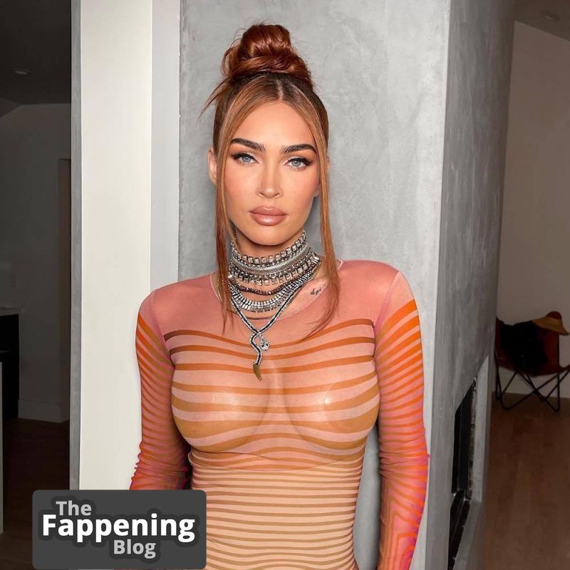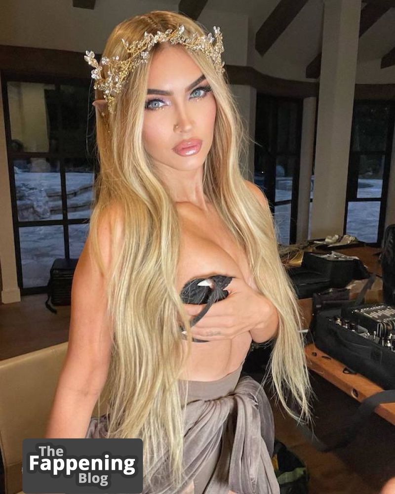 La colección de fotos de Megan Fox está llena de contenido explícito, mostrando a Megan sin camiseta con su amplio busto a la vista, escote profundo sin sostén, pezones expuestos, sideboob y partes íntimas visibles.