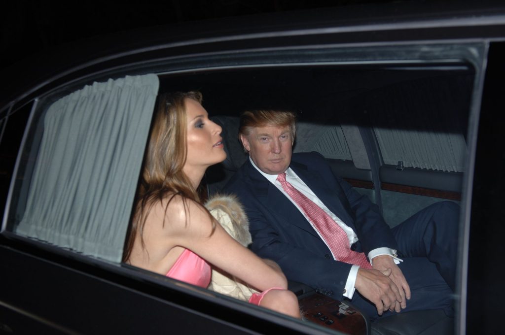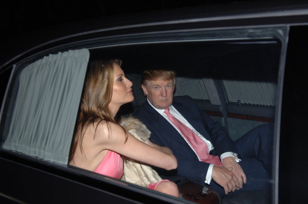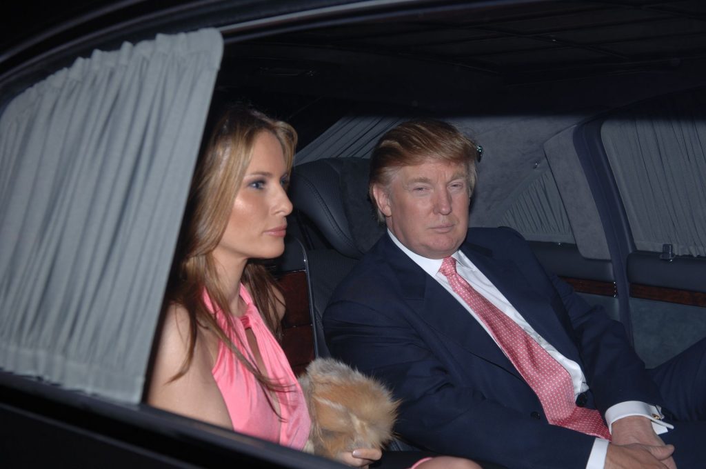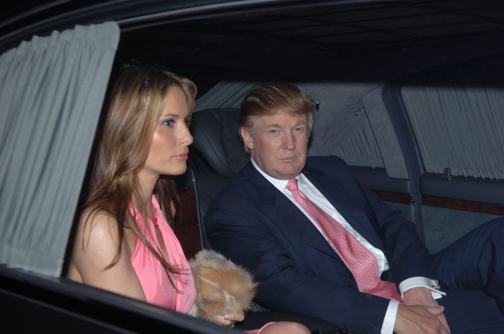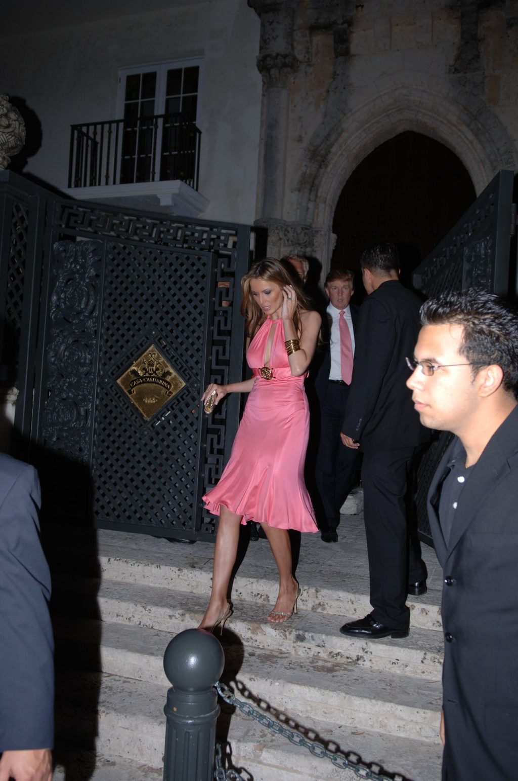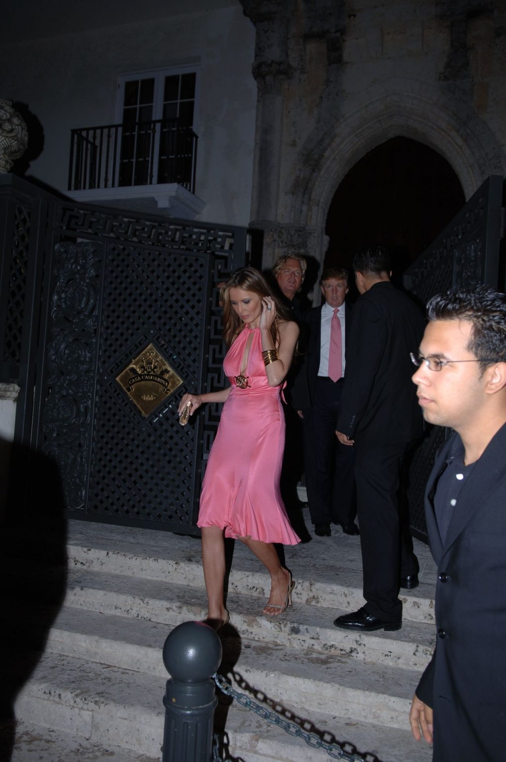 Donald Trump y Melania (primeras fotos de ella embarazada) fueron vistos saliendo de la Mansión Versace el 4 de marzo de 2005 en Miami Beach, Florida.