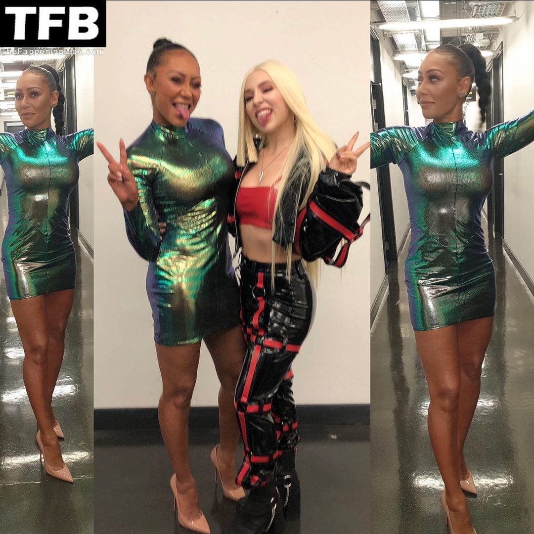 Mira las fotos espontáneas y de redes sociales de Melanie Brown, mostrando las sexys tetas, trasero y piernas de la estrella.