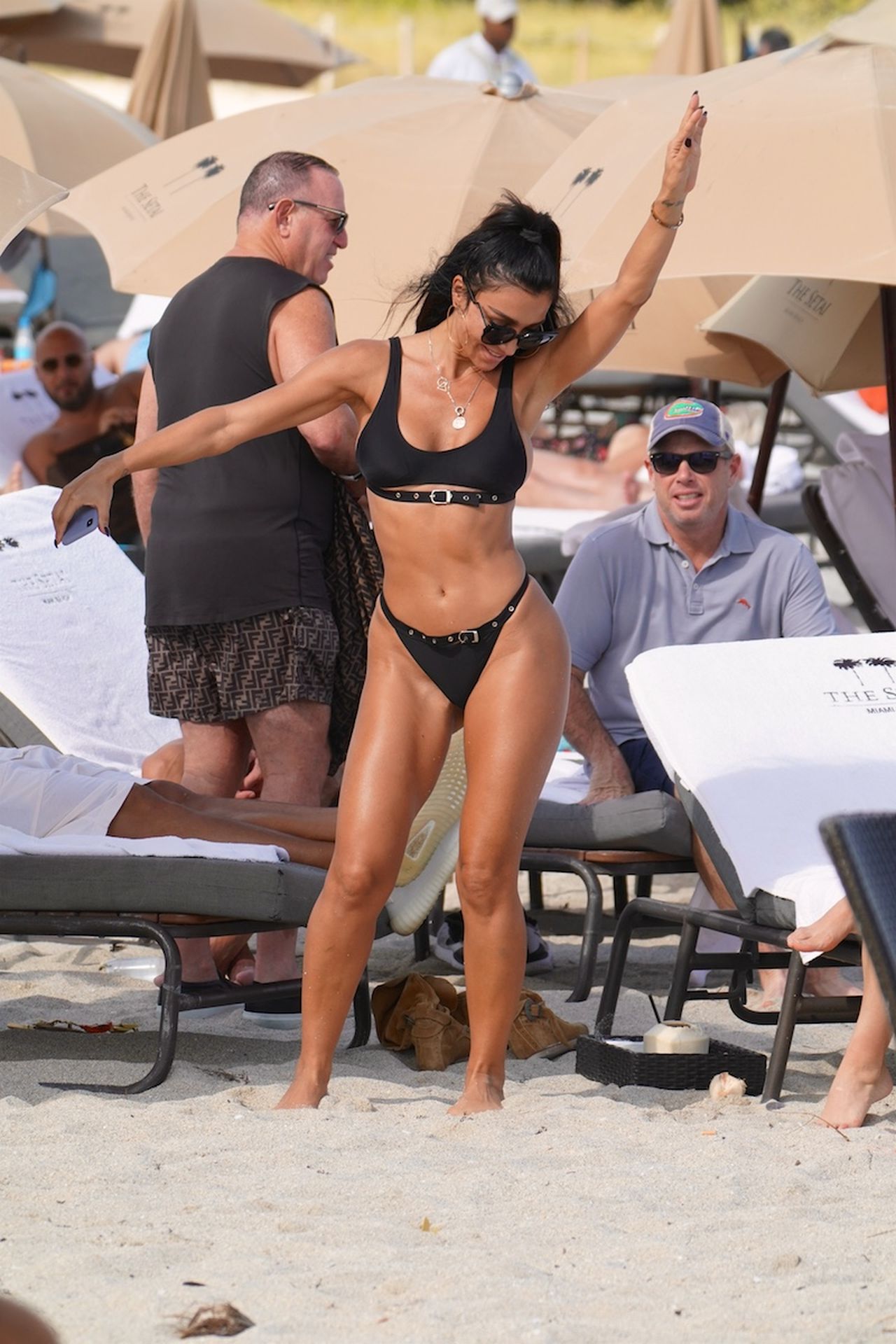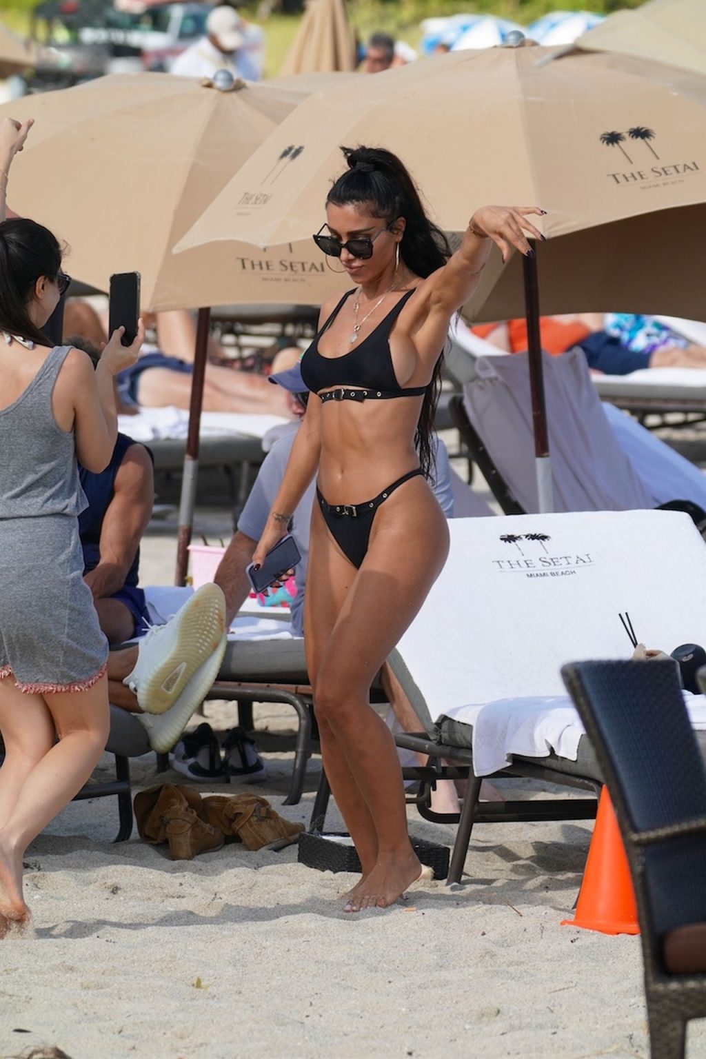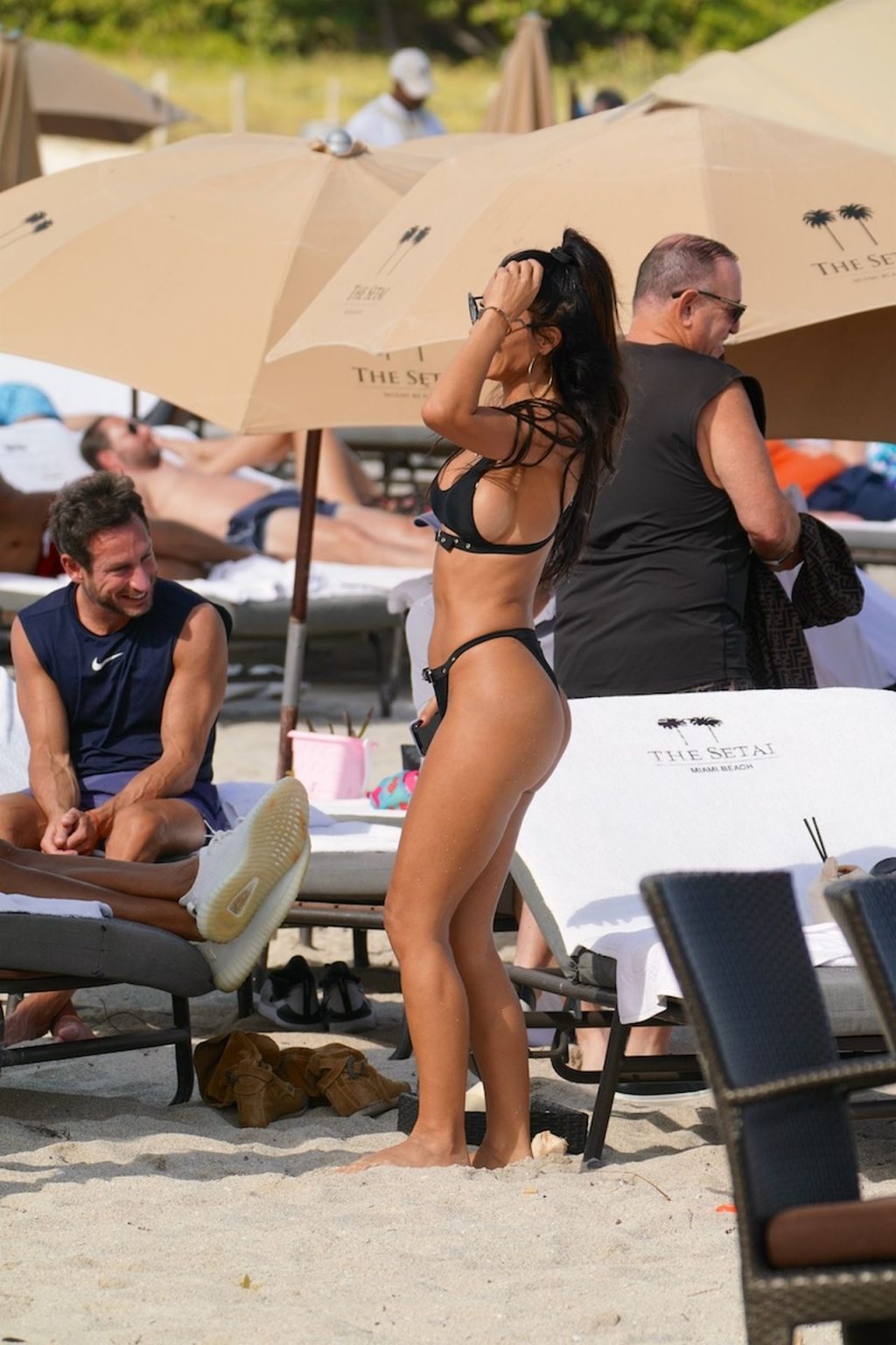La “Kim Kardashian alemana” Metisha Schaefer fue fotografiada en un bikini negro en la playa con amigos en Miami Beach, 23/11/2019. La modelo de 24 años y estrella de ‘WAGS Miami’ fue vista bailando en un día de playa con un gran grupo.