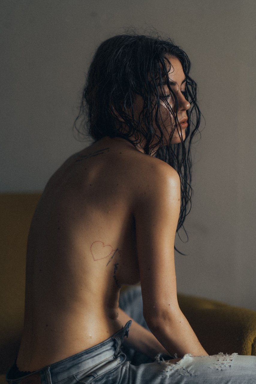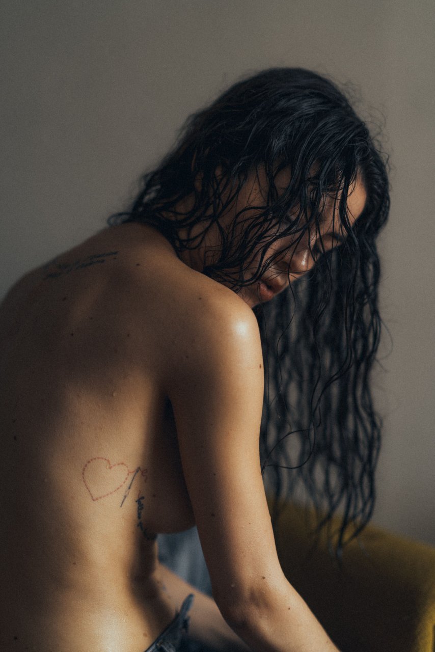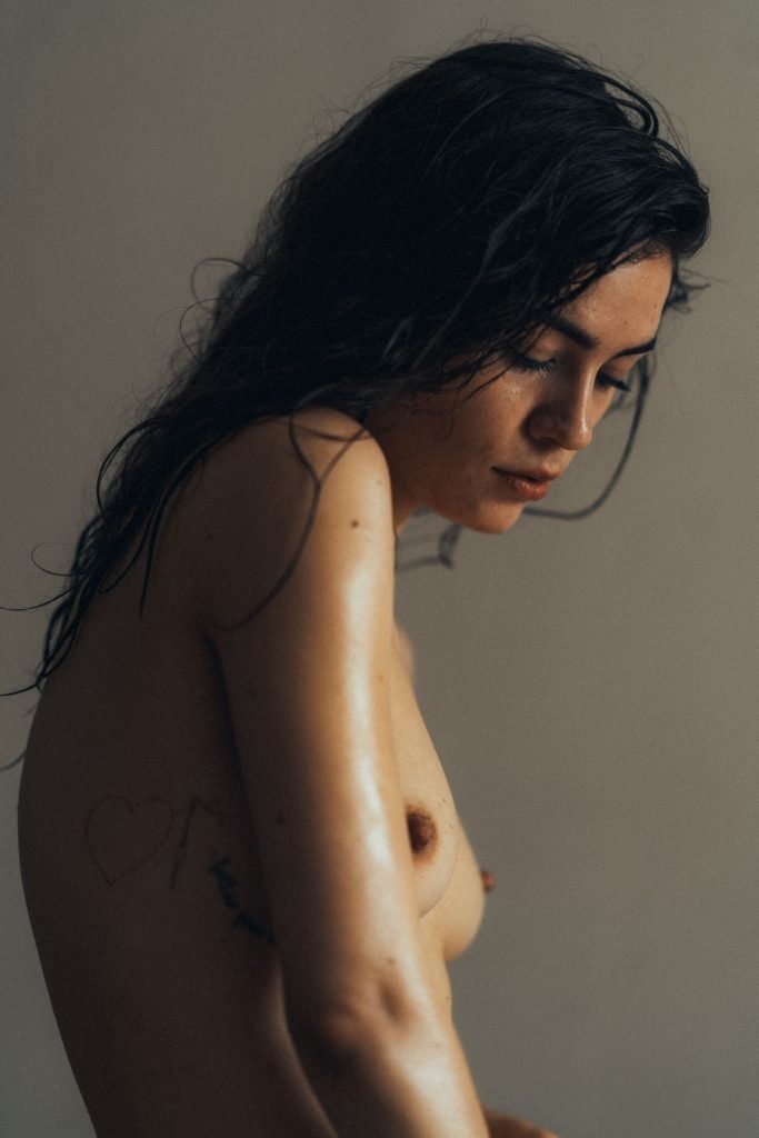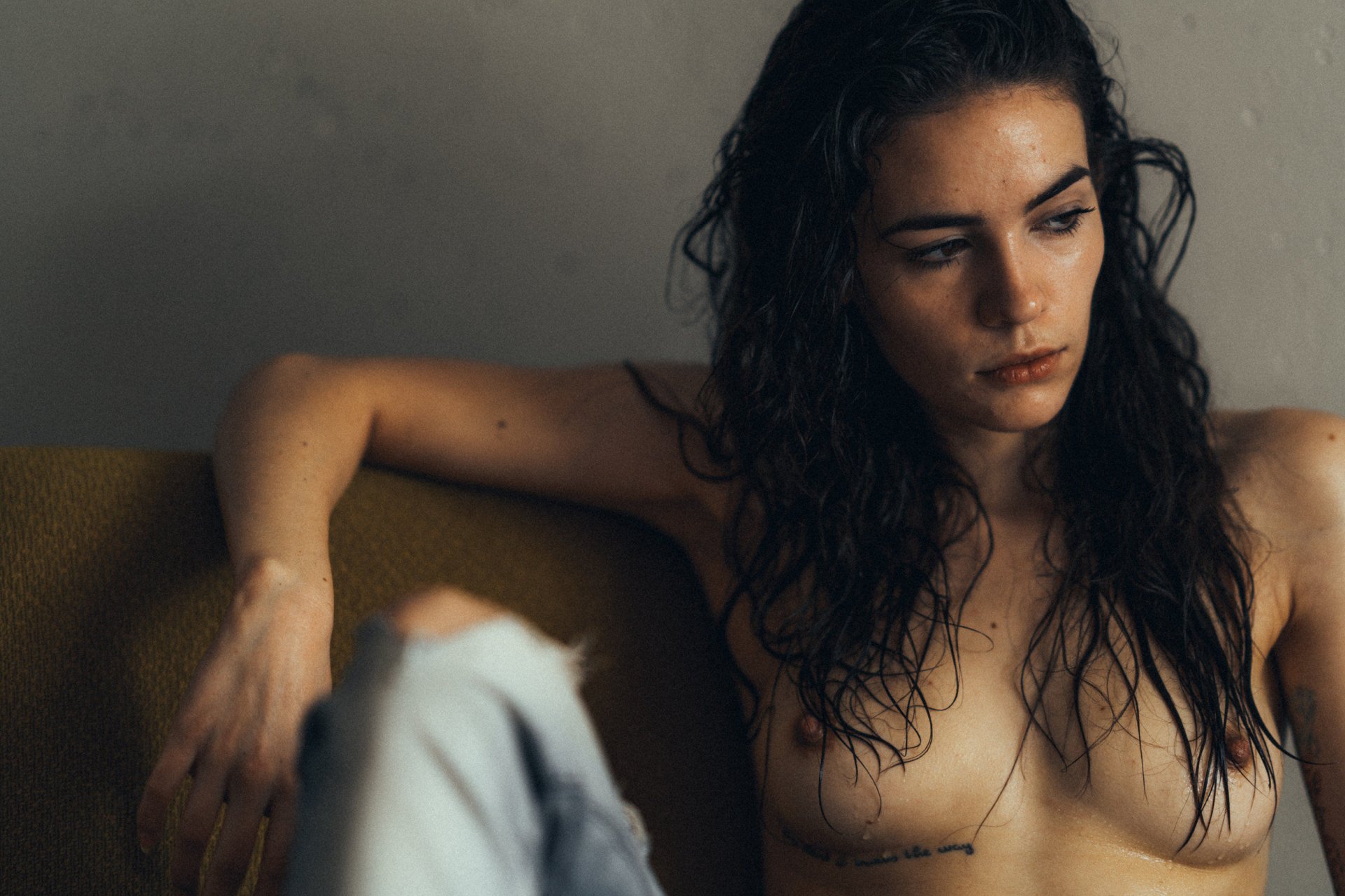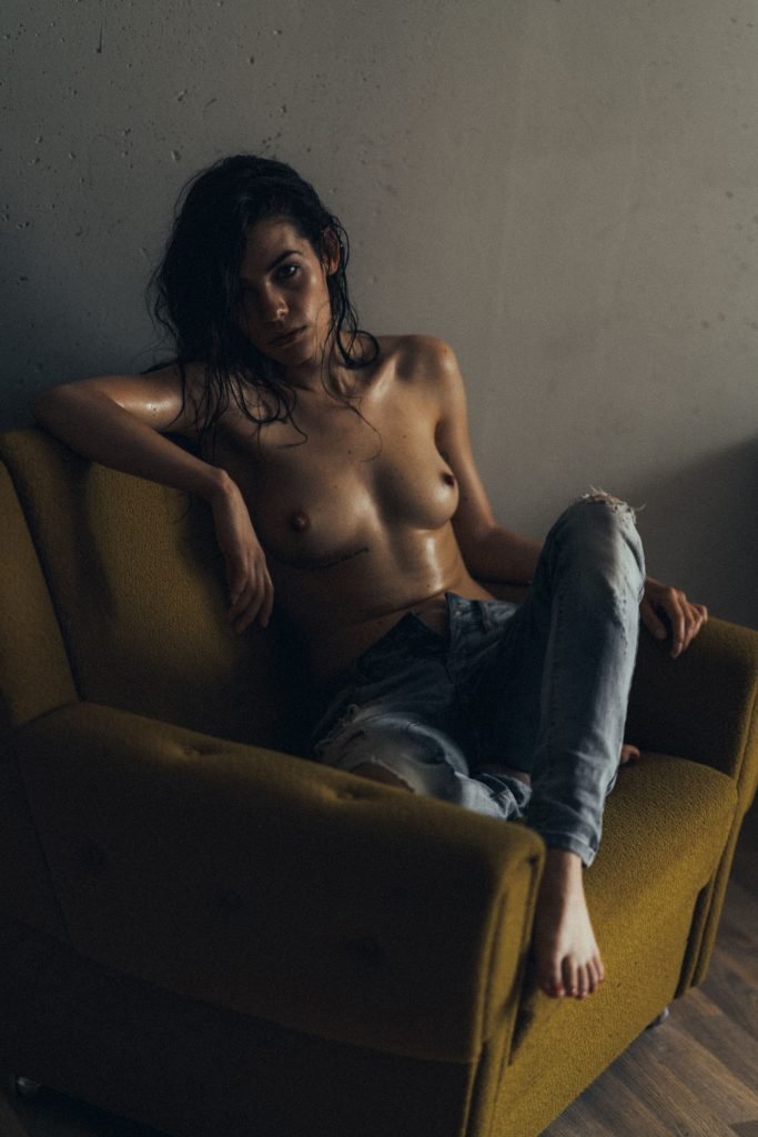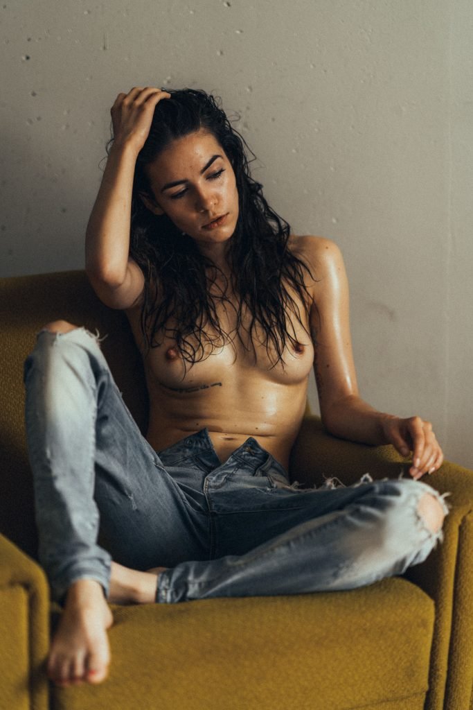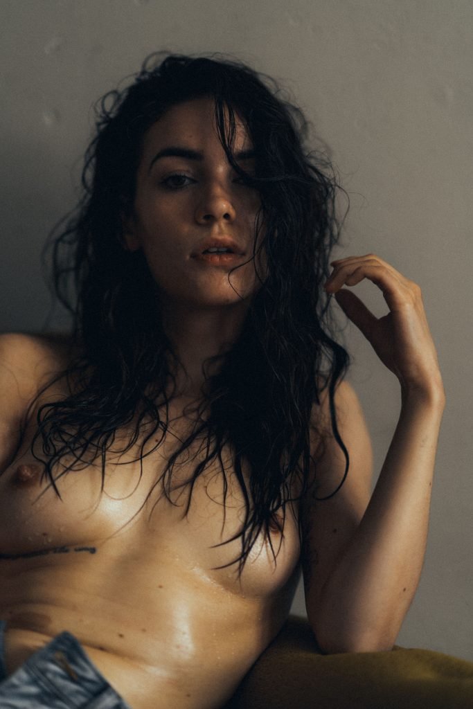 Frankie Miles posa topless para una nueva sesión de fotos húmeda de Hannes Windrath (2018). La morena llevaba jeans rotos y nada más. Frankie Miles es una modelo de Berlín, Alemania. Edad: 27 años.
