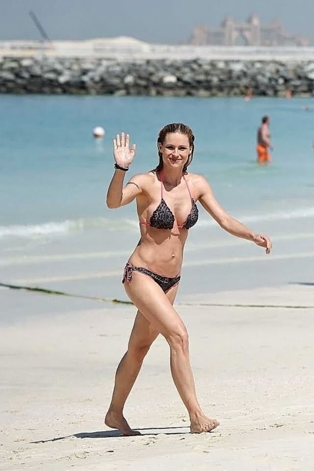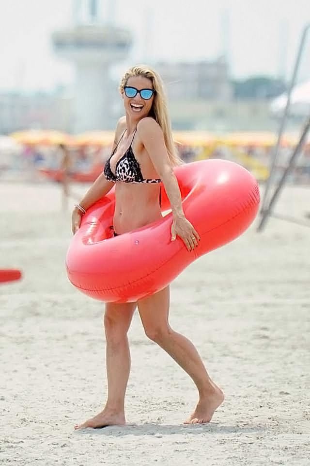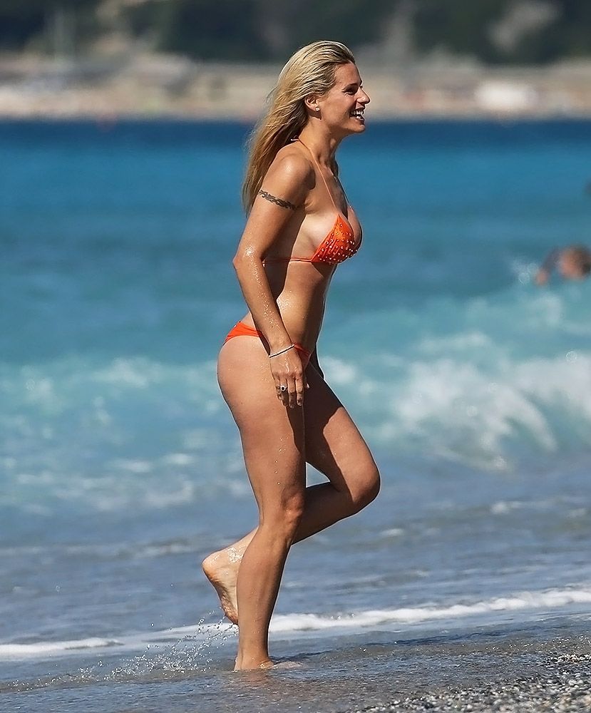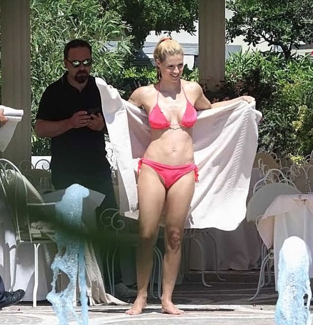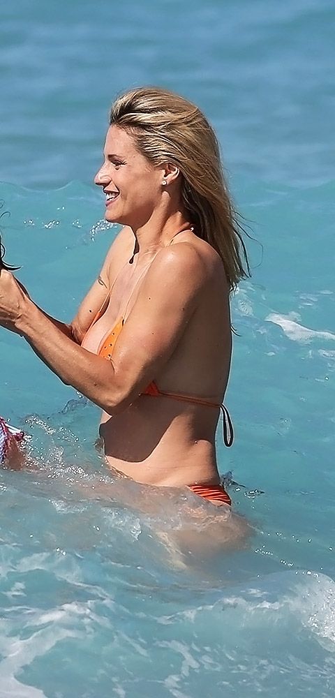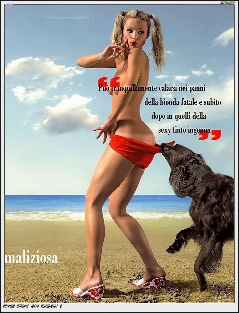 The blonde actress and popular ex-wifey Michelle Hunziker is on our planet again, showing us her feet, bikini figure, and cleavage. Also, her nipples are always hard, and Michelle is not hiding them at all! However, Hunzinger looks hot as hell on every fucking pic!
