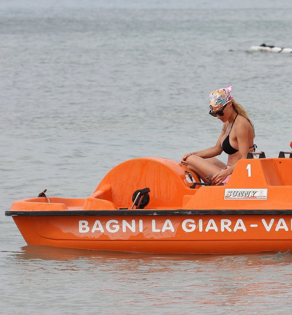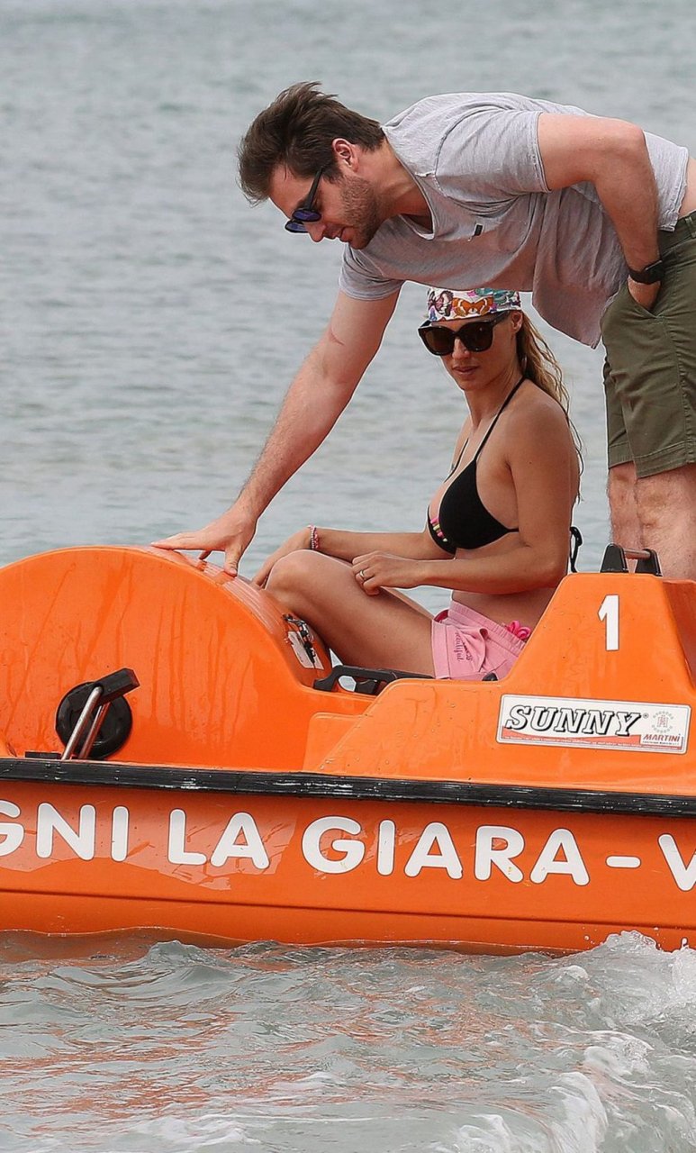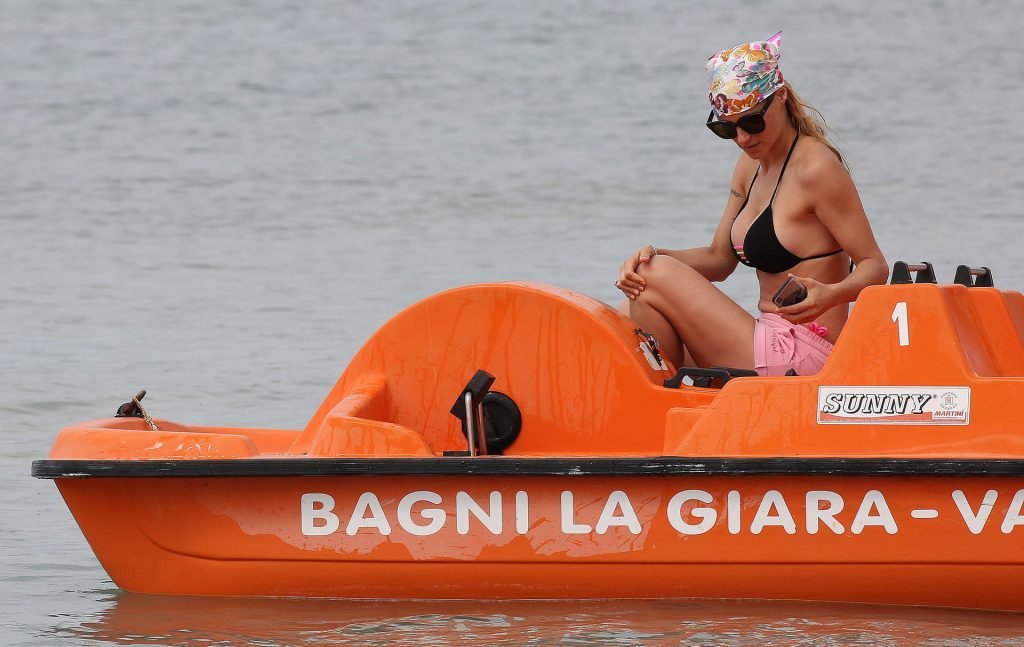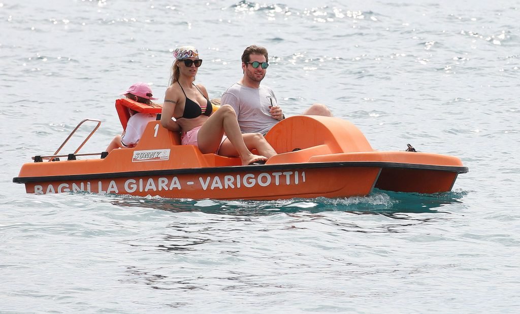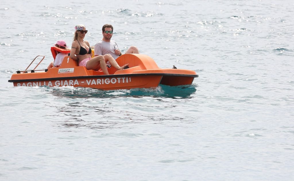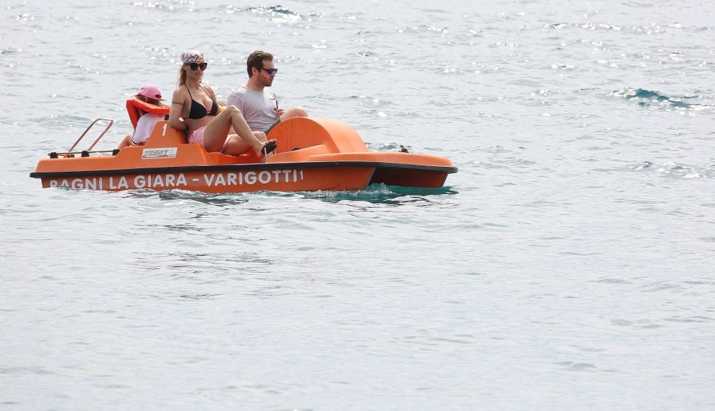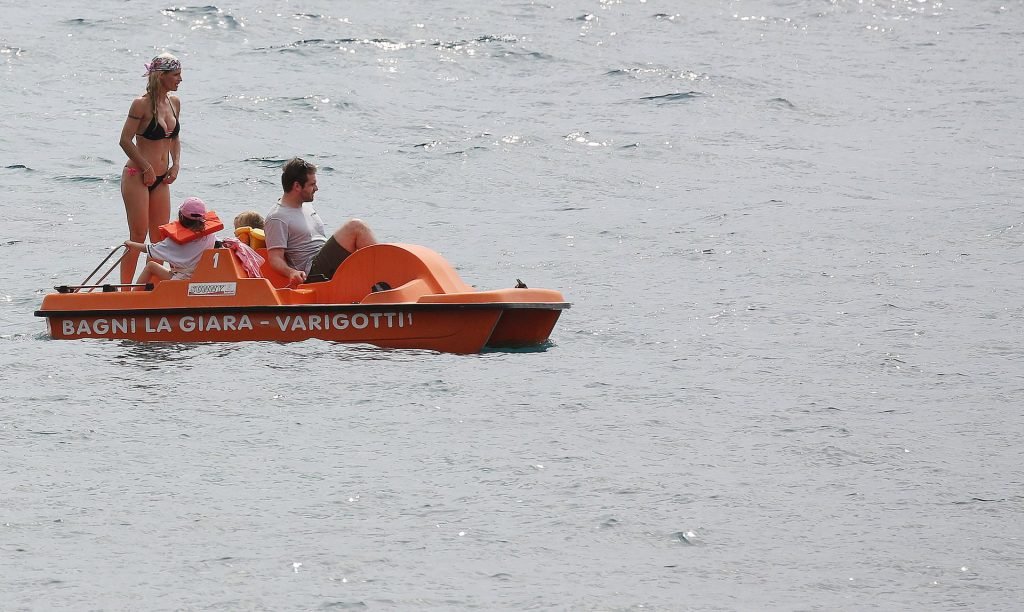 Michelle Hunziker fue vista en bikini con su familia en una playa de Liguria, Italia, 09/06/2019.