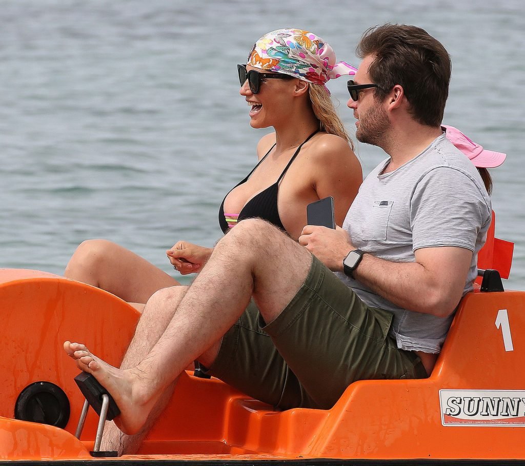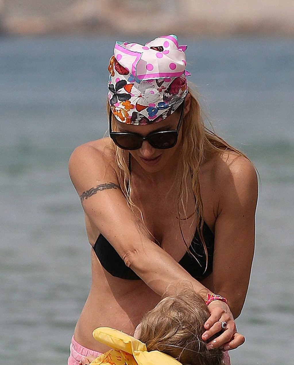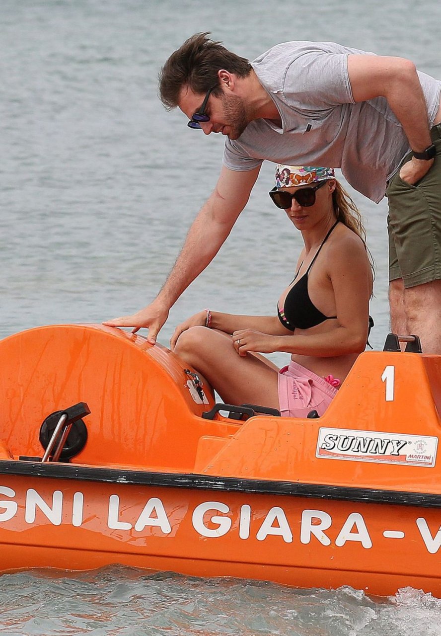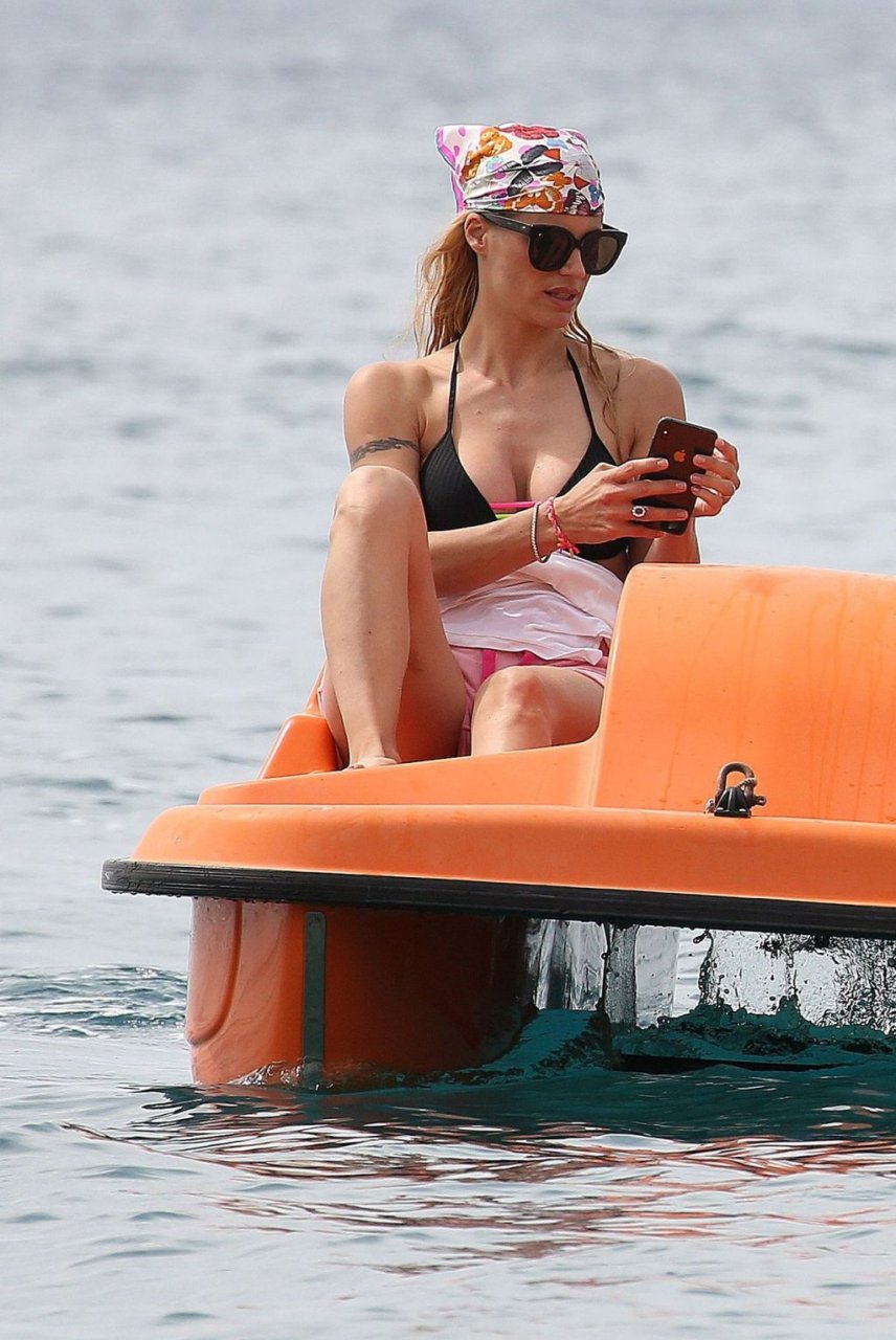 Michelle Hunziker fue vista en bikini con su familia en una playa de Liguria, Italia, 09/06/2019.