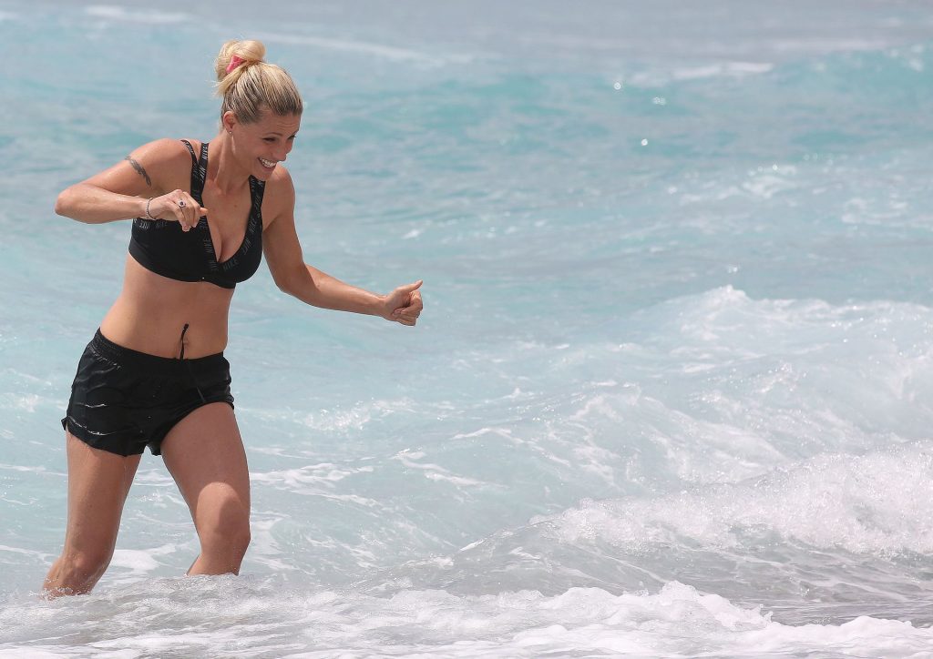 La voluptuosa suizo-italiana Michelle Hunziker (43) está bañándose en el mar con sus hijas en Varigotti, 06/06/2020.