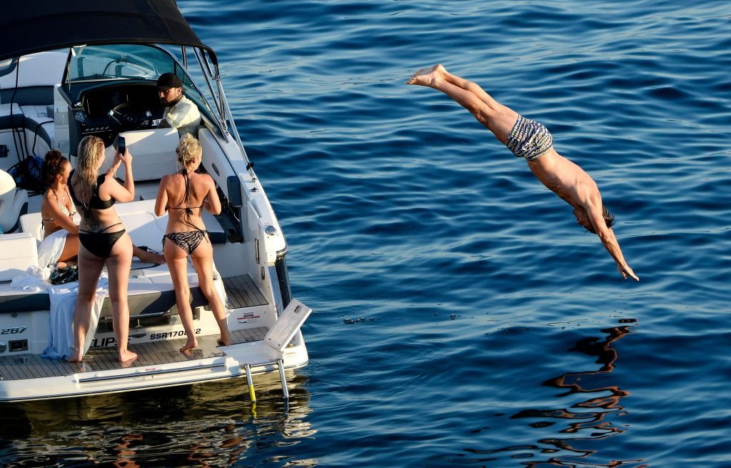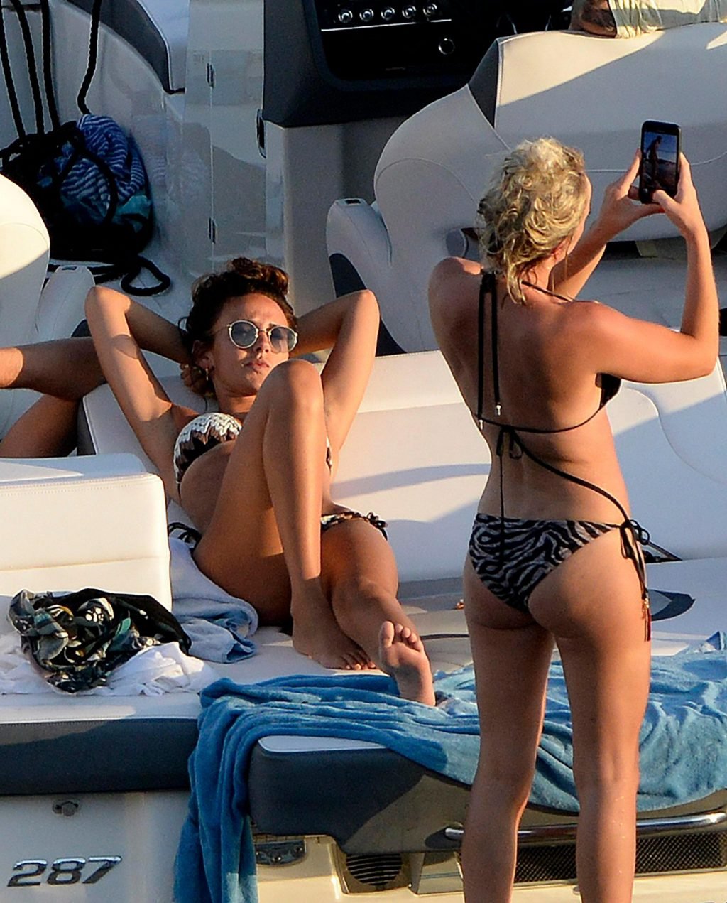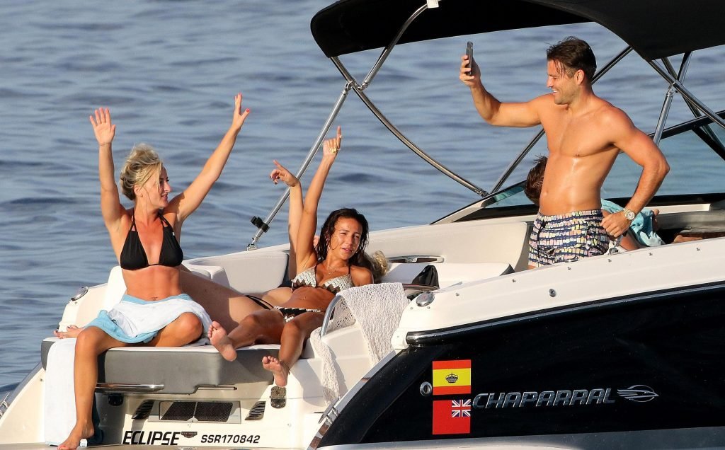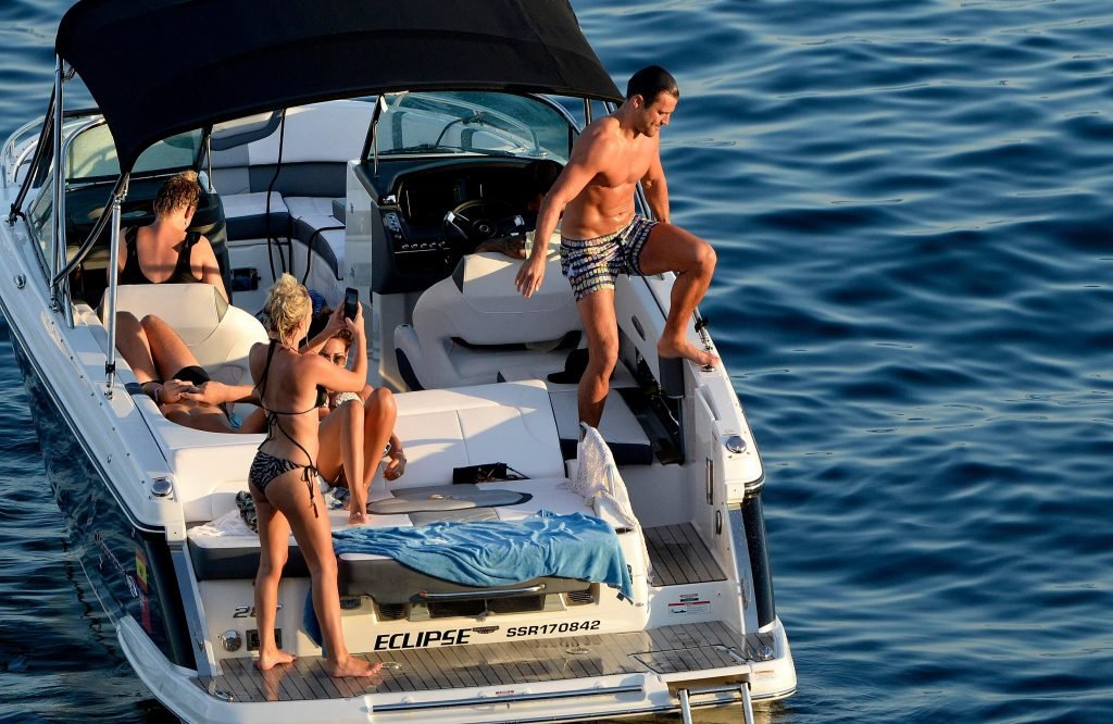 La actriz inglesa Michelle Keegan disfruta de sus vacaciones con amigos en un barco en España, 28/07/2018.