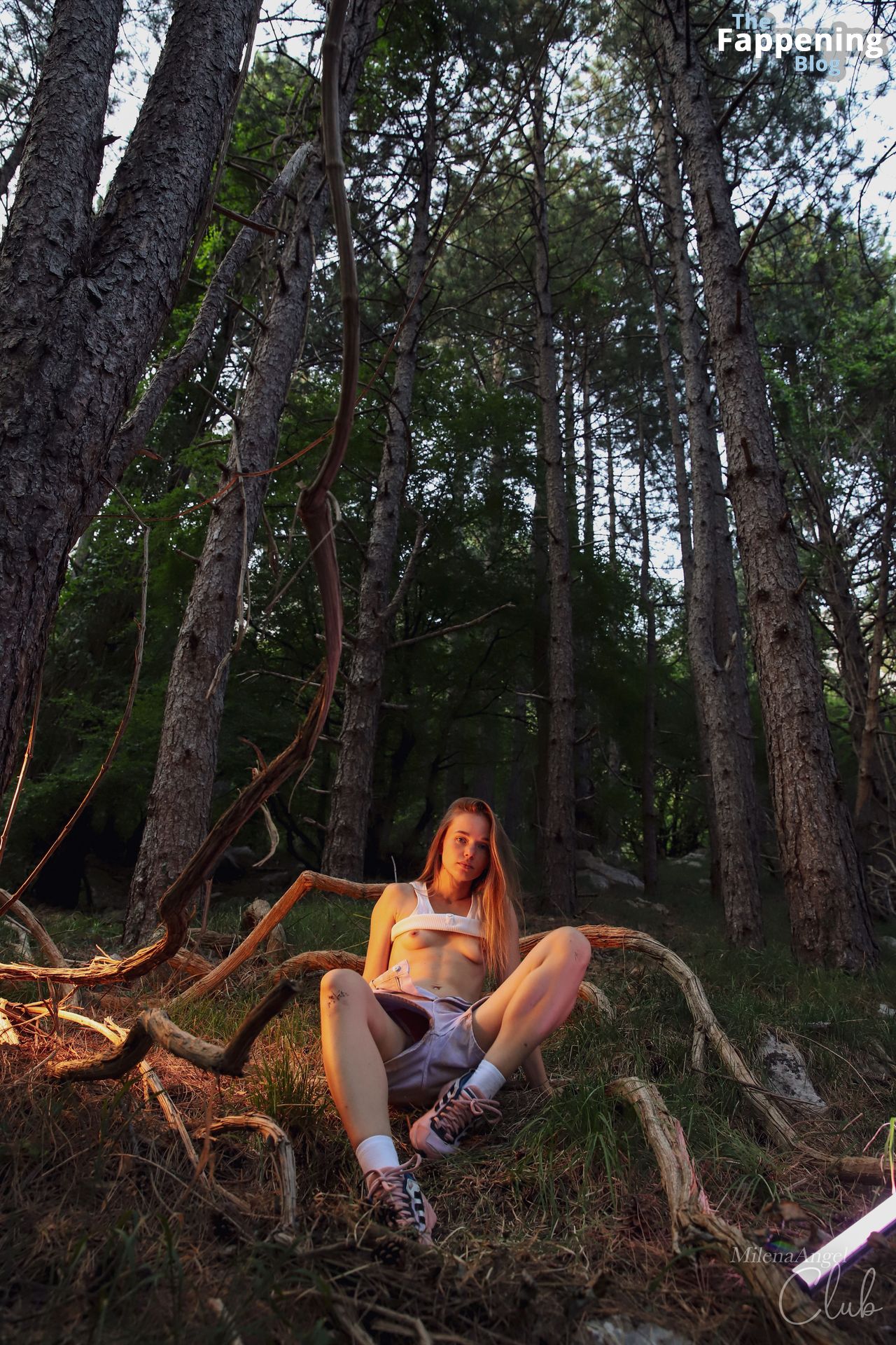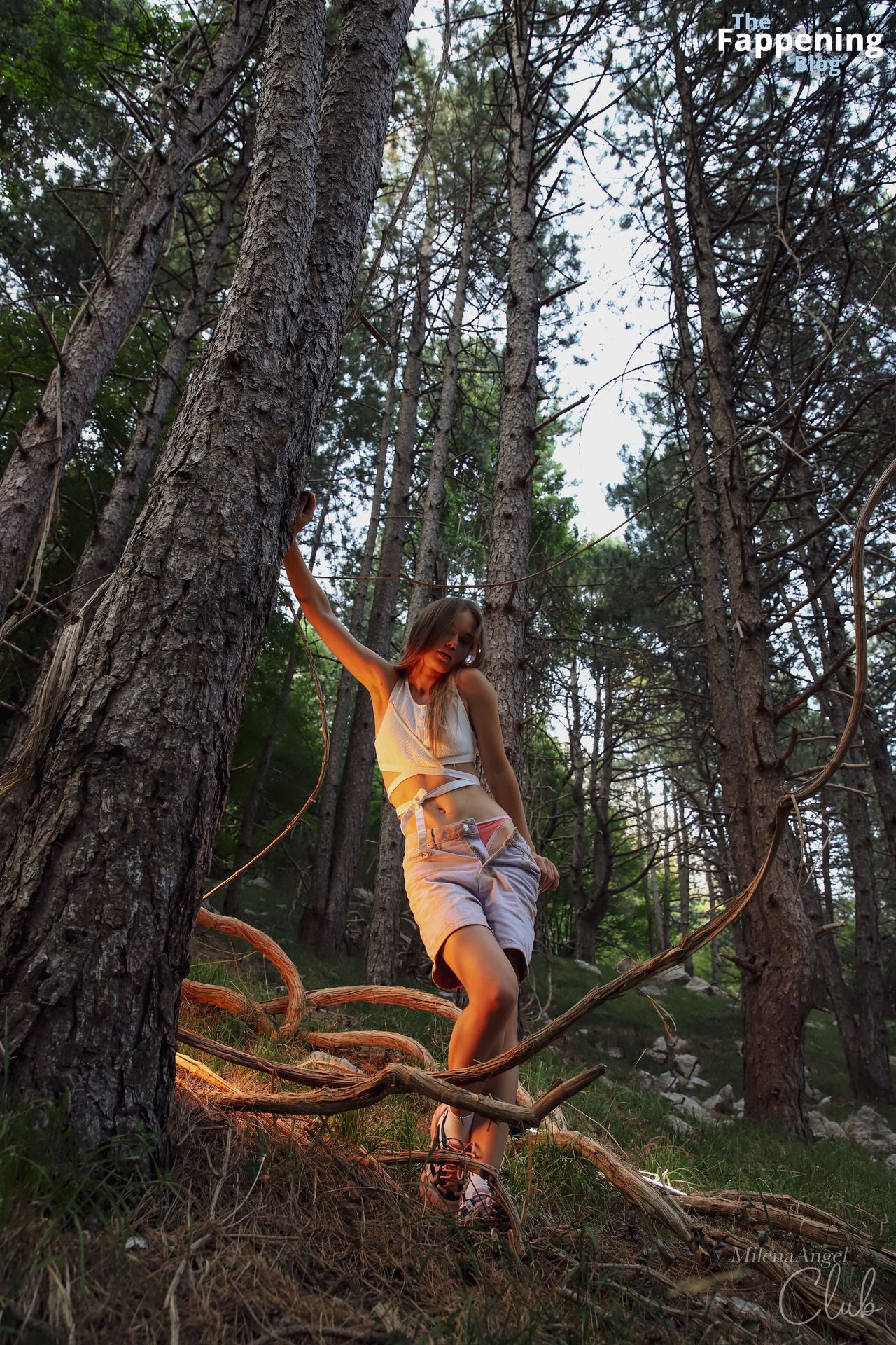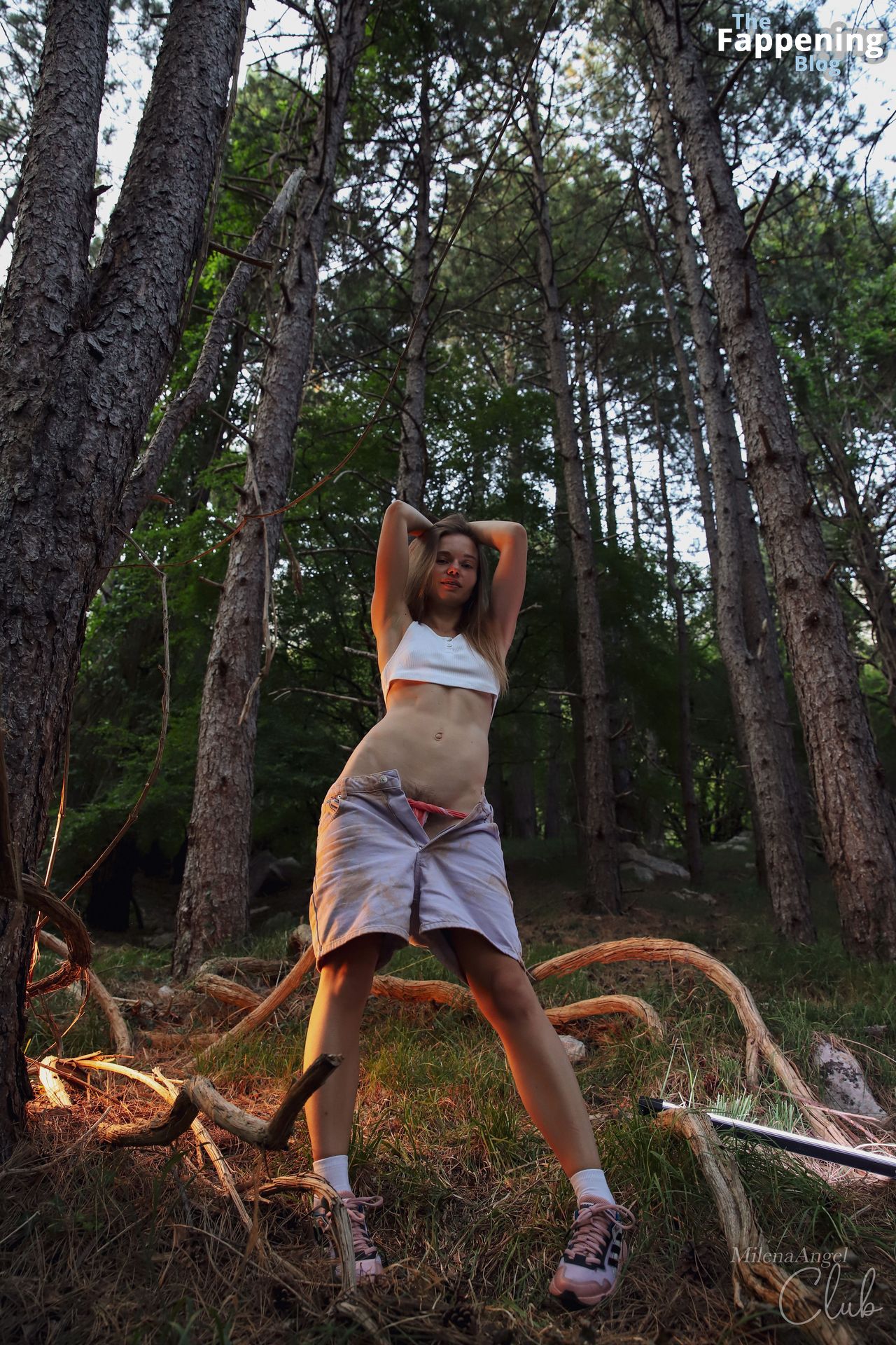 ¡Mira estas increíbles fotos de la famosa modelo adulta, Milena Angel, haciendo una sesión salvaje desnuda en el bosque! Estas imágenes están increíbles, con una iluminación que da una vibra de fogata en el bosque nocturno.