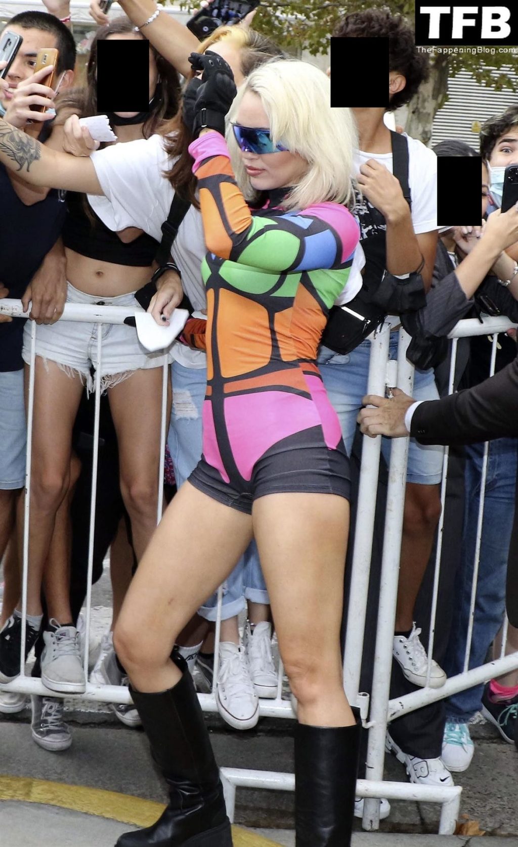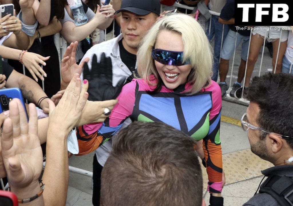 La sexy estrella está en Argentina para participar en el Festival Lollapalooza local y como parte de su gira por Sudamérica, y no decepcionó a la multitud con un atuendo colorido y gafas de sol llamativas mientras posaba para las cámaras, mostrando su sexy físico con botas hasta la rodilla.