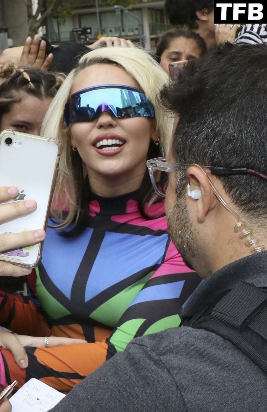 Lo más interesante de esto es por qué demonios alguien en la multitud necesita que le censuren la cara, y cómo hicieron para que la gente de Miley hiciera eso...
