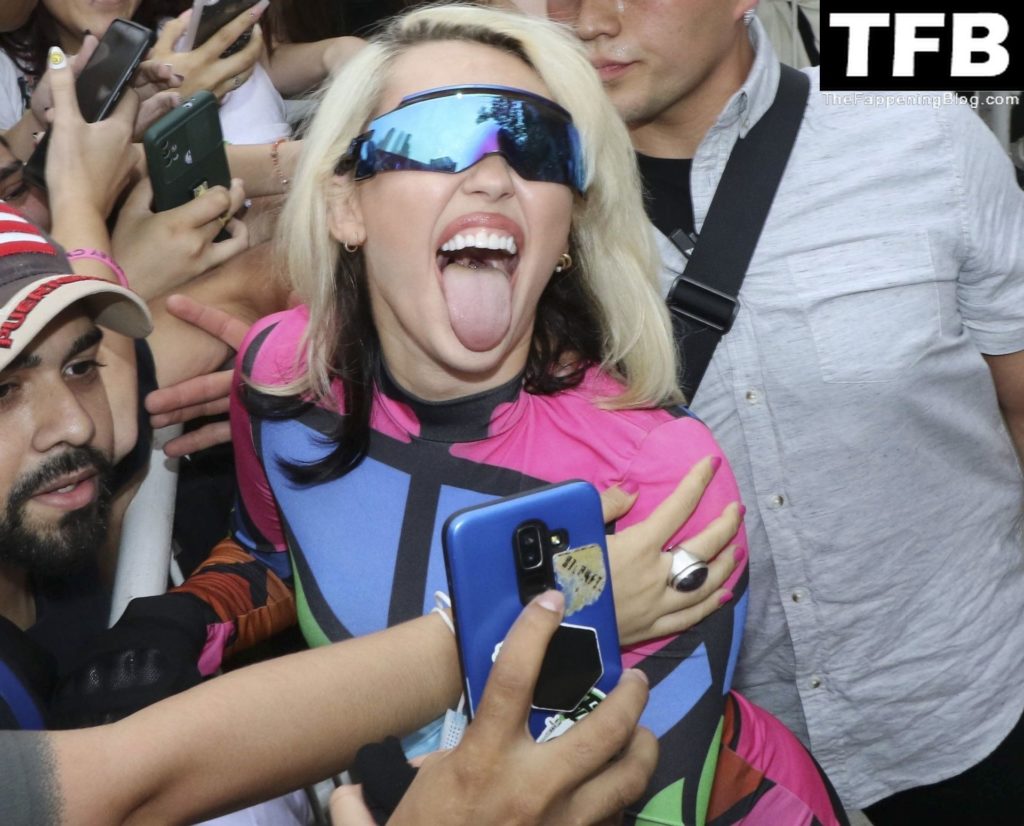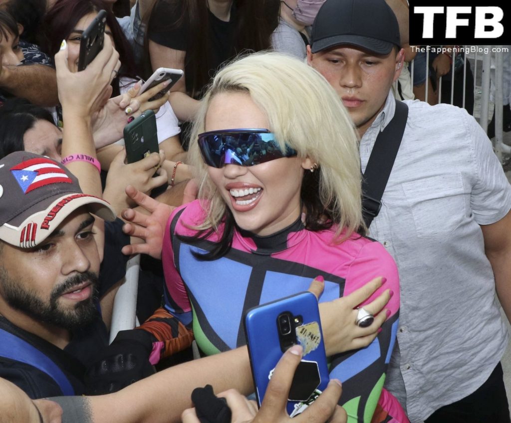 La cantante y compositora estadounidense y estrella de The Fappening Miley Cyrus llega a su hotel en Buenos Aires con docenas de fans esperándola, 17/03/2022.