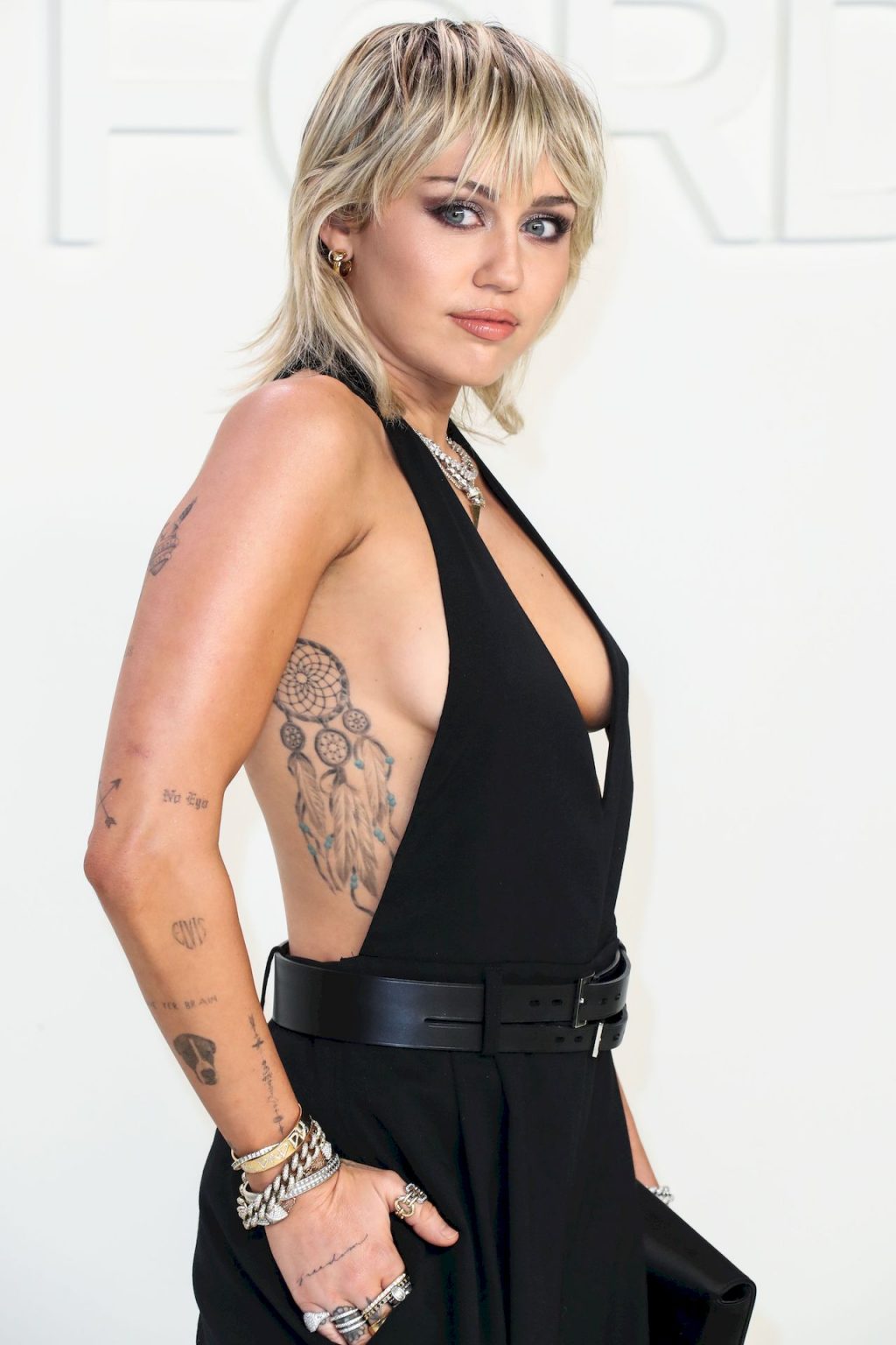 Cantante Miley Cyrus fue fotografiada sin sostén en el desfile de moda Tom Ford Otoño/Invierno 2020 celebrado en Milk Studios el 7 de febrero de 2020 en Hollywood.