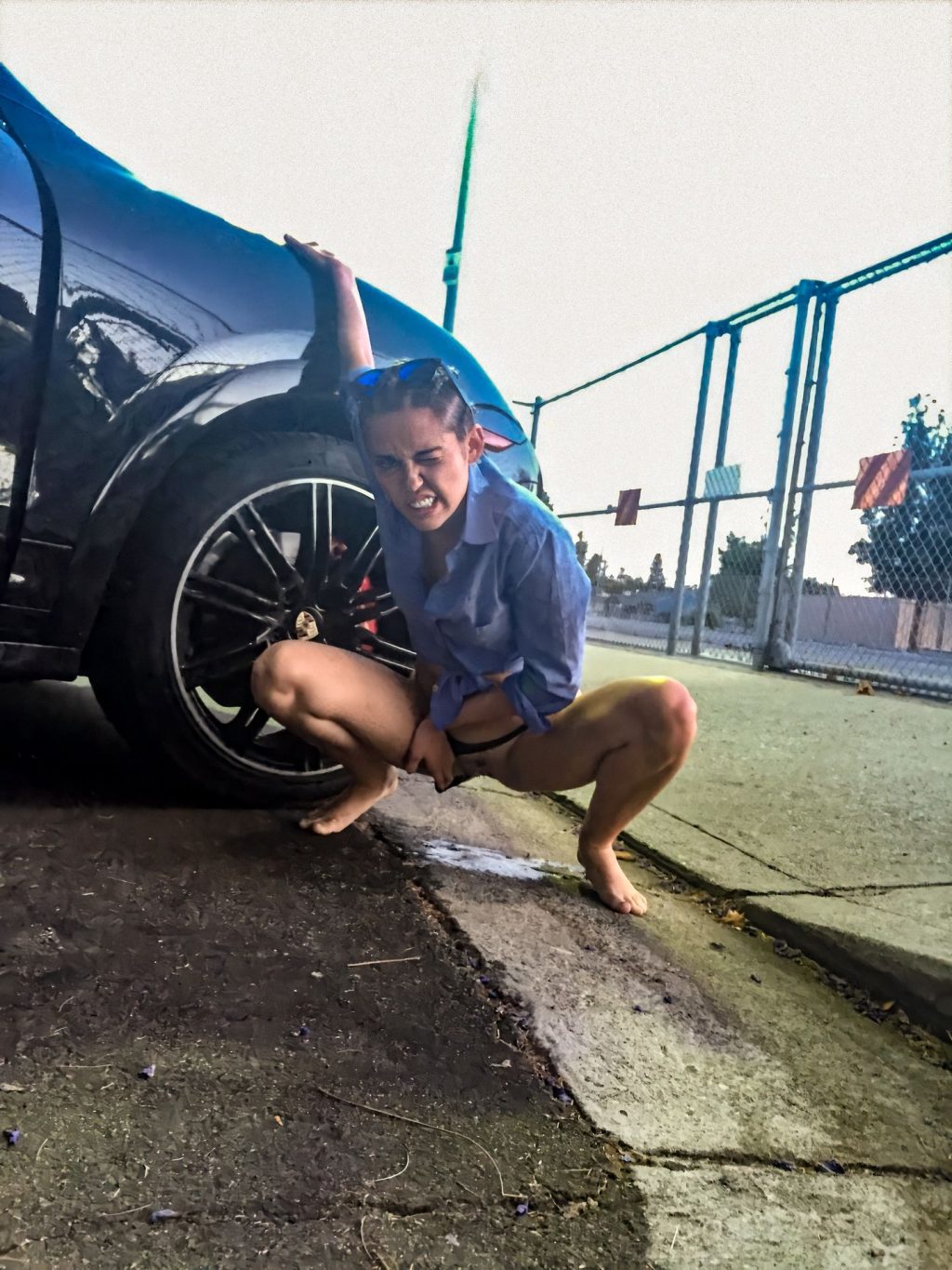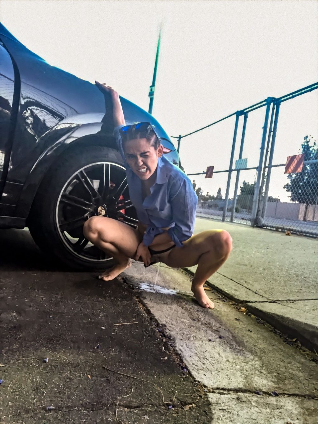 Una bolsa de goon de más y tuvo que detenerse al lado del camino para liberar sus fluidos. A juzgar por la expresión en su rostro, parece estar muy aliviada, aunque me atrevo a decir que el ayuntamiento la multará tremendamente por el enorme agujero que su orina ácida ha destrozado en el asfalto. Písala ahora, que estoy seguro de que tiene covid-19...