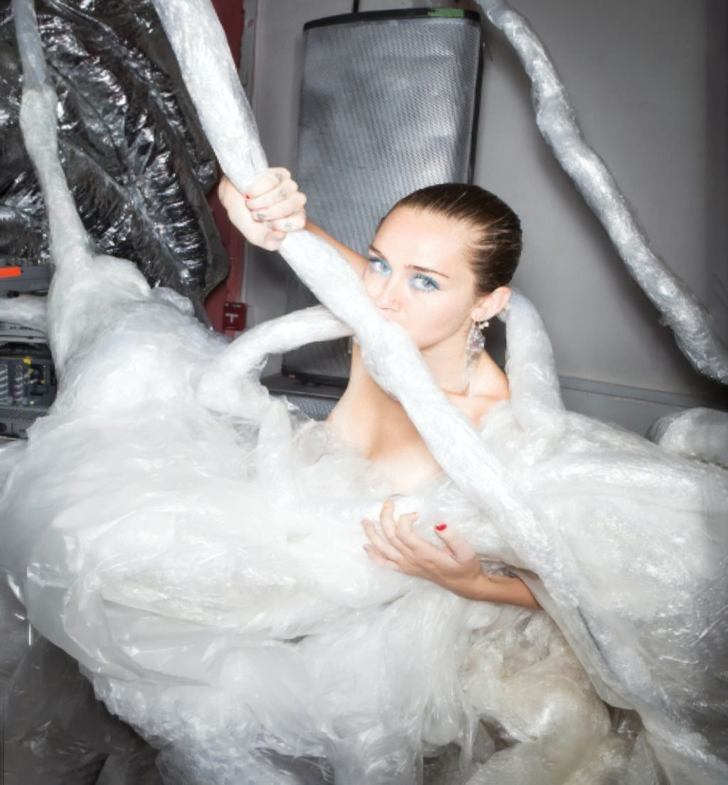 Mira las fotos UHQ de Miley Cyrus para la revista Plastik (2015). La famosa cantante participó en una sesión de fotos extraña y sincera. Apareció desnuda, cubriendo sus pechos con pasteles con cerezas de cóctel y plástico.
