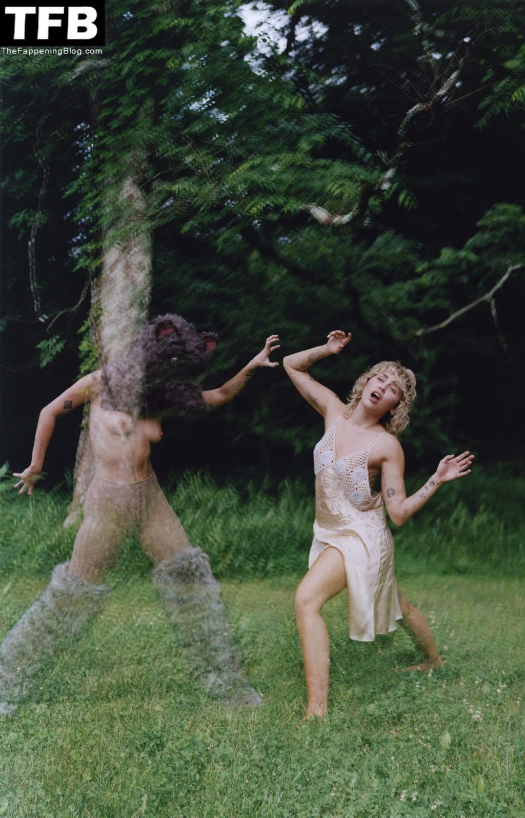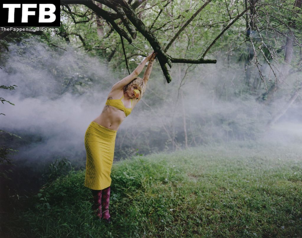La estrella de The Fappening Miley Cyrus muestra sus pechos desnudos, piernas sexys y un bonito trasero en ropa interior, posando en una nueva sesión de fotos de Brianna Capozzi para Interview Magazine (2021).
