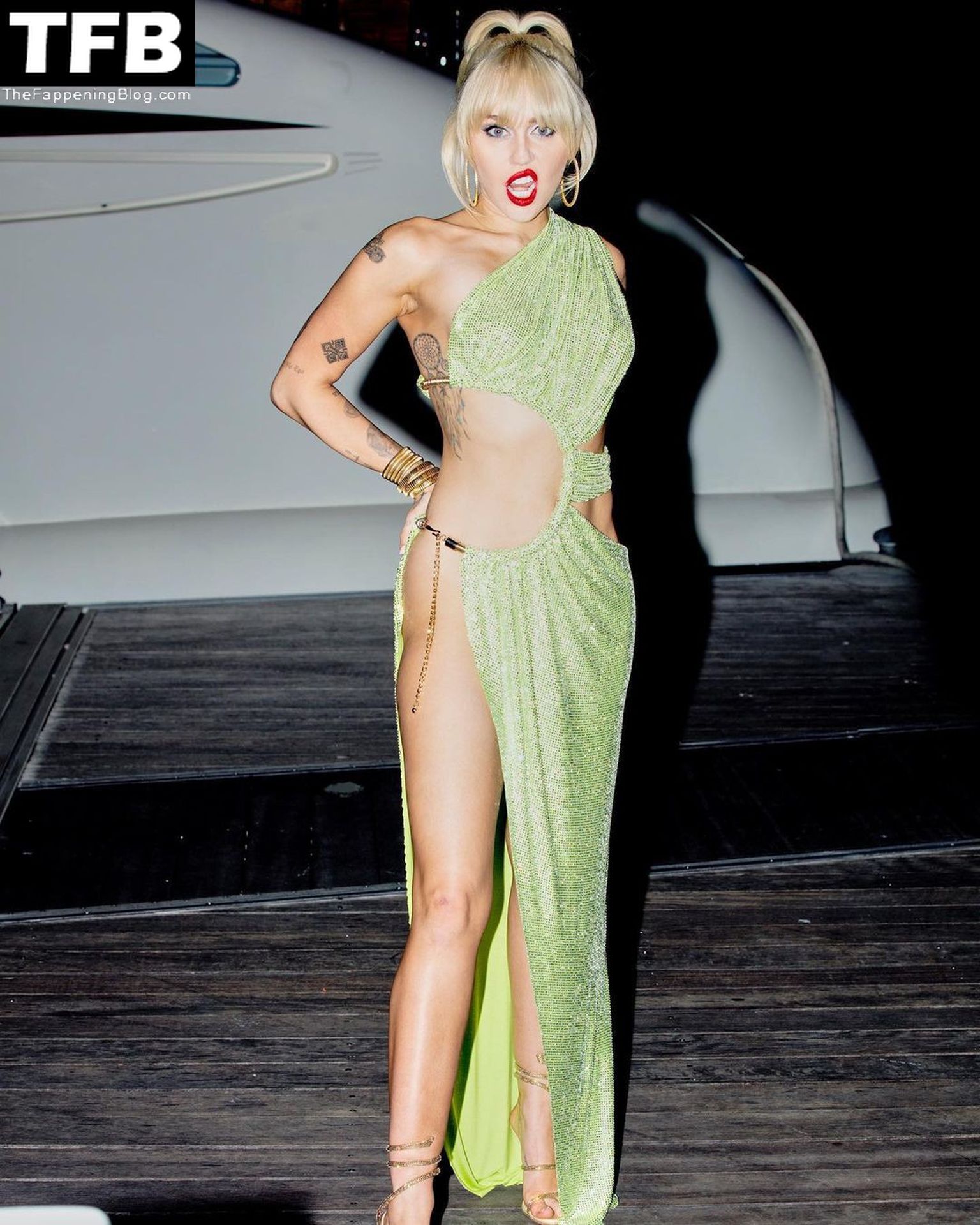 Miley Cyrus posa sin ropa interior con un vestido sexy y revelador (10 fotos + video)