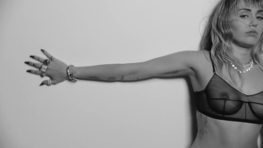 La cantante Miley Cyrus presenta su nuevo video musical ligeramente desnudo para promocionar su nuevo álbum “She Is Coming”, donde puedes ver sus pechos, mientras posa con un sostén transparente.