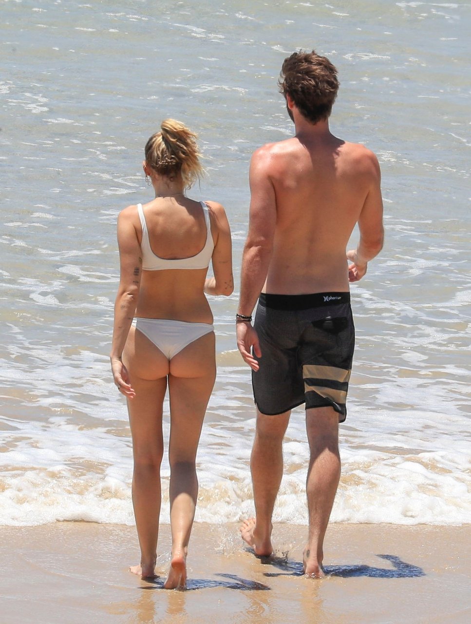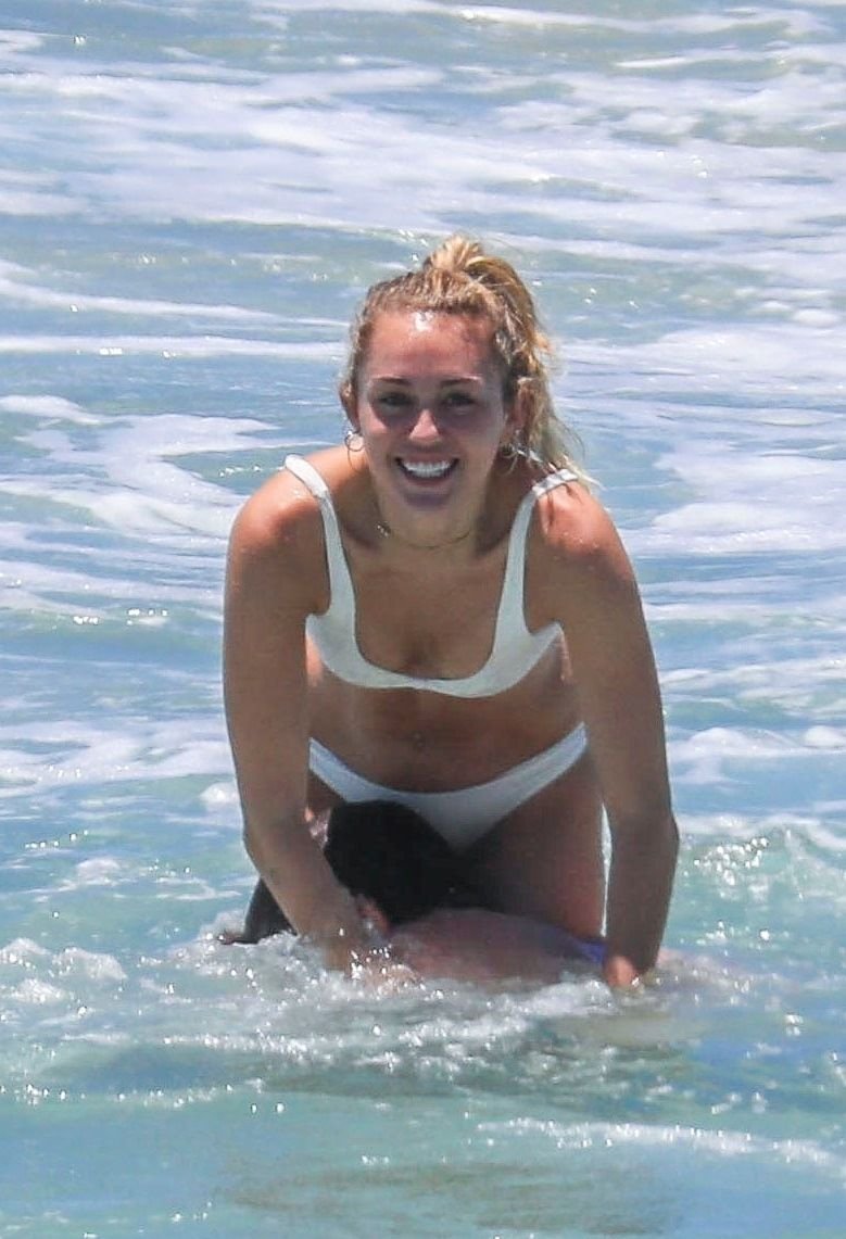 La cantante y actriz Miley Cyrus, de 25 años, lleva un bikini blanco en la playa de Byron Bay, Australia, 01/07/2018.