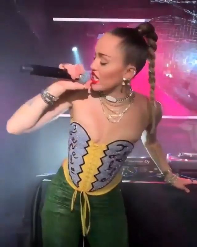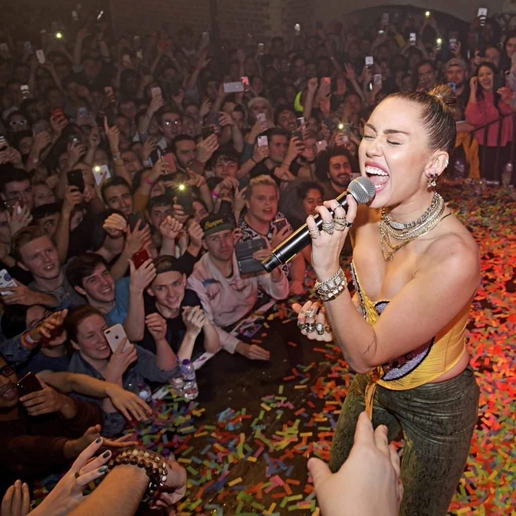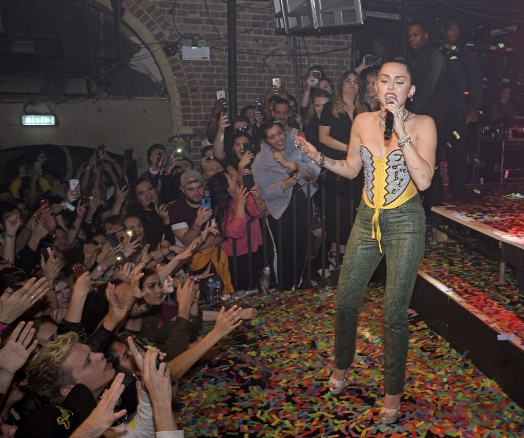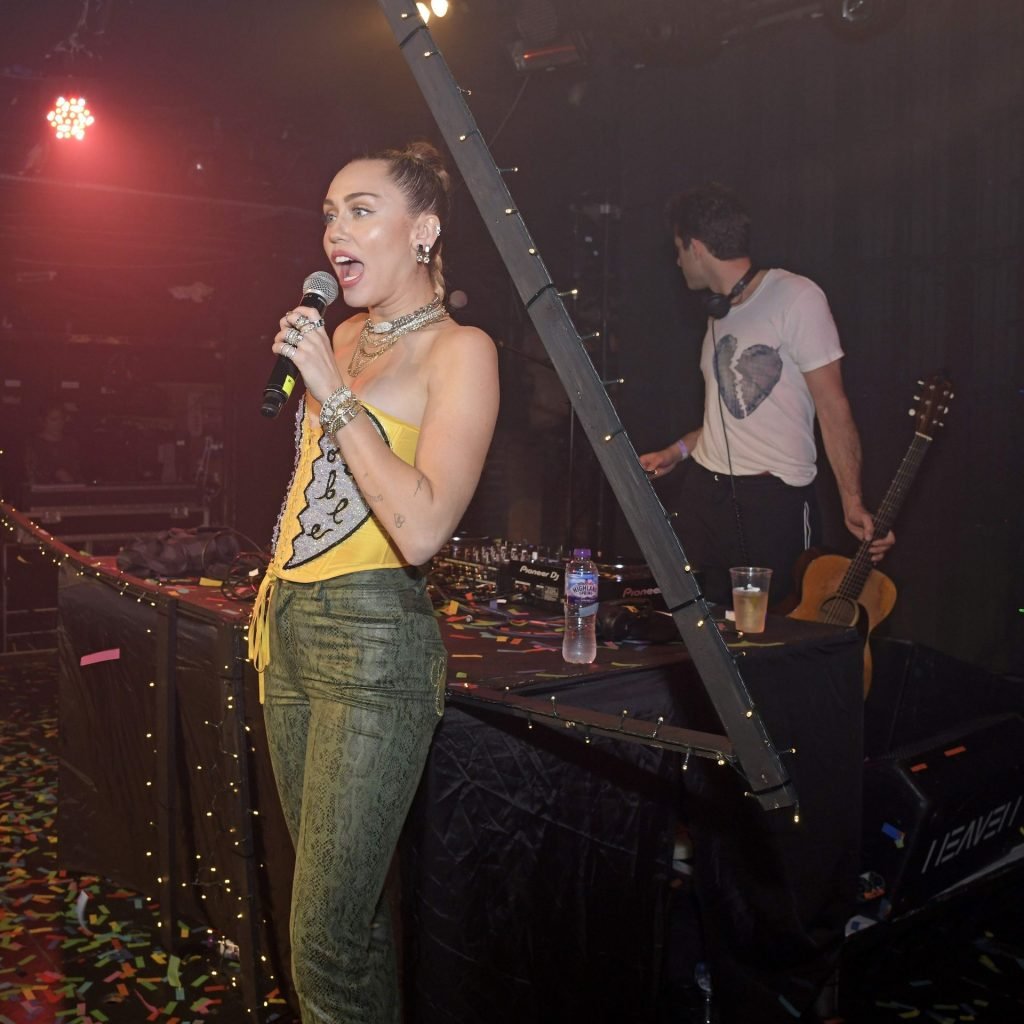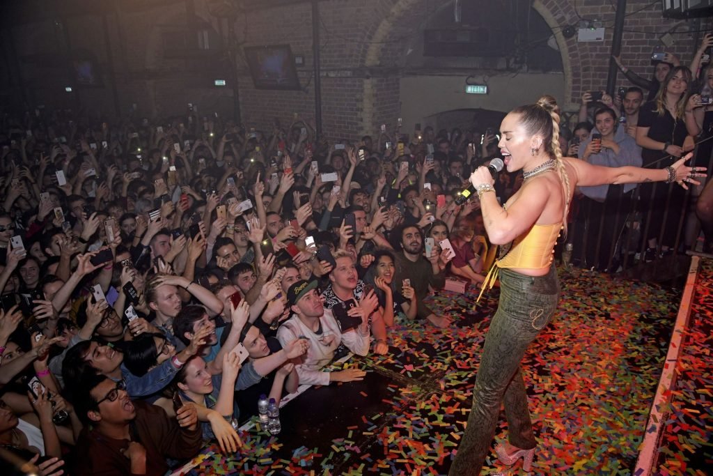 La cantante Miley Cyrus (26) actúa en vivo con su nuevo sencillo “Nothing Breaks Like a Heart” en el club nocturno G-A-Y en Londres, 12/07/2018.