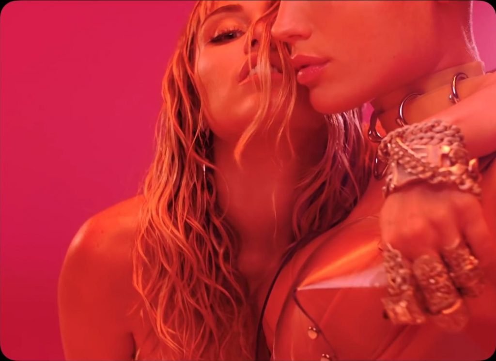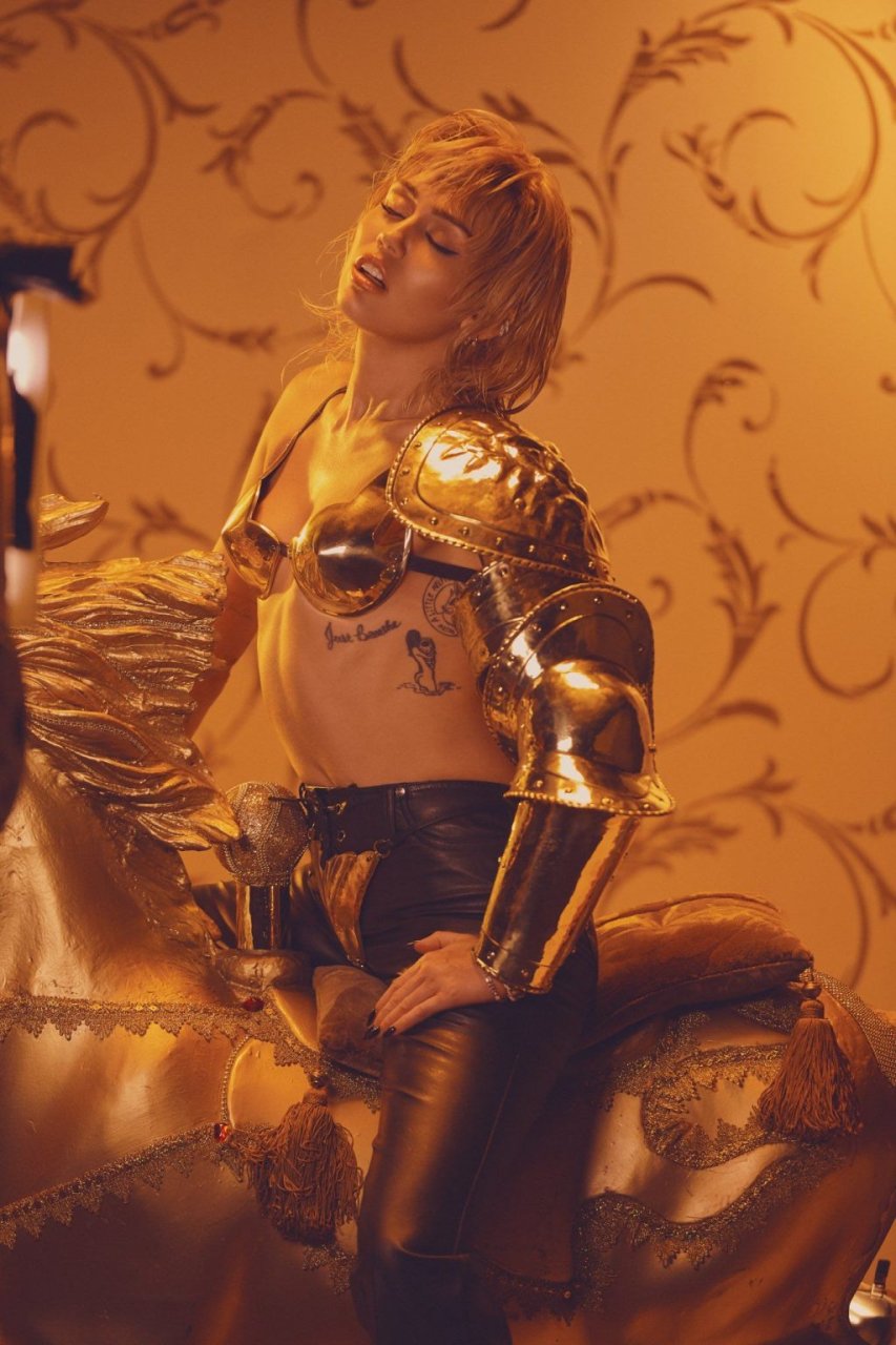 Las palabras ‘TOUGH TITTIES’ parpadean en la pantalla mientras Miley se acerca a la hermosa modelo calva Vendela, que lleva un conjunto de kinkwear de plástico transparente y color nude con un collar de perro a juego. La modelo trans y con discapacidad Aaron Phillips aparece en su silla de ruedas eléctrica, luciendo un look feroz con piel blanca y un bob rubio. El modelo trans Casil McArthur muestra su físico tonificado, vistiendo solo algunas cadenas plateadas y un par de pantalones a rayas verdes, antes de untarse lápiz labial en la cara. La bailarina y coreógrafa Paige Fralix aparece luego sin camiseta con jeans, una corona floral y las palabras ‘I AM FREE’ pintadas en el torso. Miley se acurruca con su madre Tish en un sofá mientras ambas lucen conjuntos Chanel a juego.