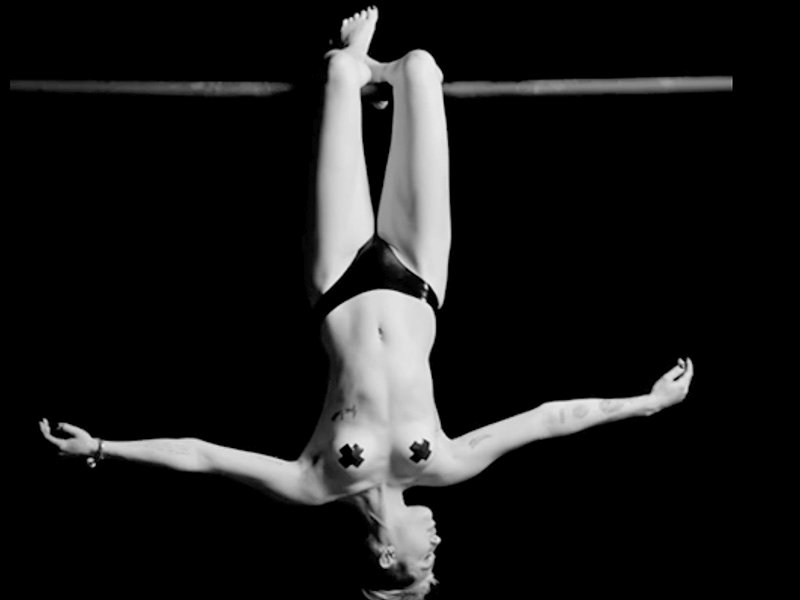 Intentando demasiado ser impactante y controvertido... Solo quítate la ropa y haz un video casero con tus bailarines para realmente impactar al mundo...