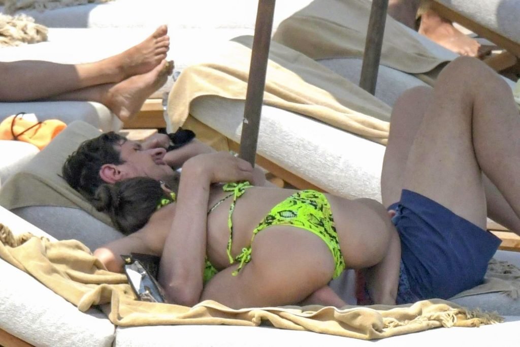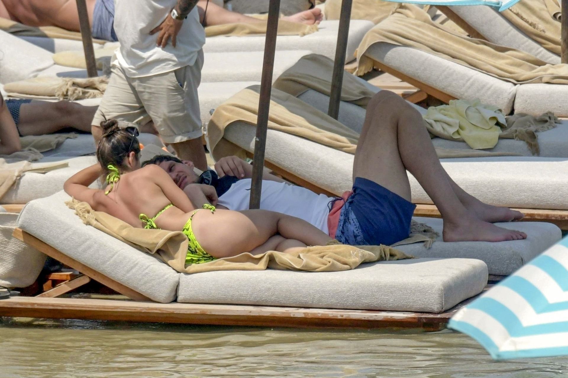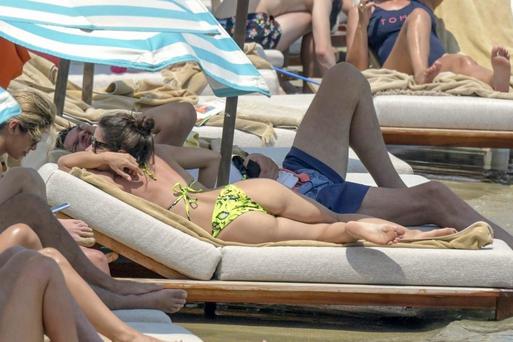 El jugador más alto de la NBA, Boban Marjanovic (7 pies, 3 pulgadas), fue visto en la playa de la hermosa isla de Mykonos junto con su esposa Milica Krstic, 26/06/2019. La adorable pareja se relaja junto a la playa y disfruta de algunas bebidas antes de meterse en las aguas griegas.
