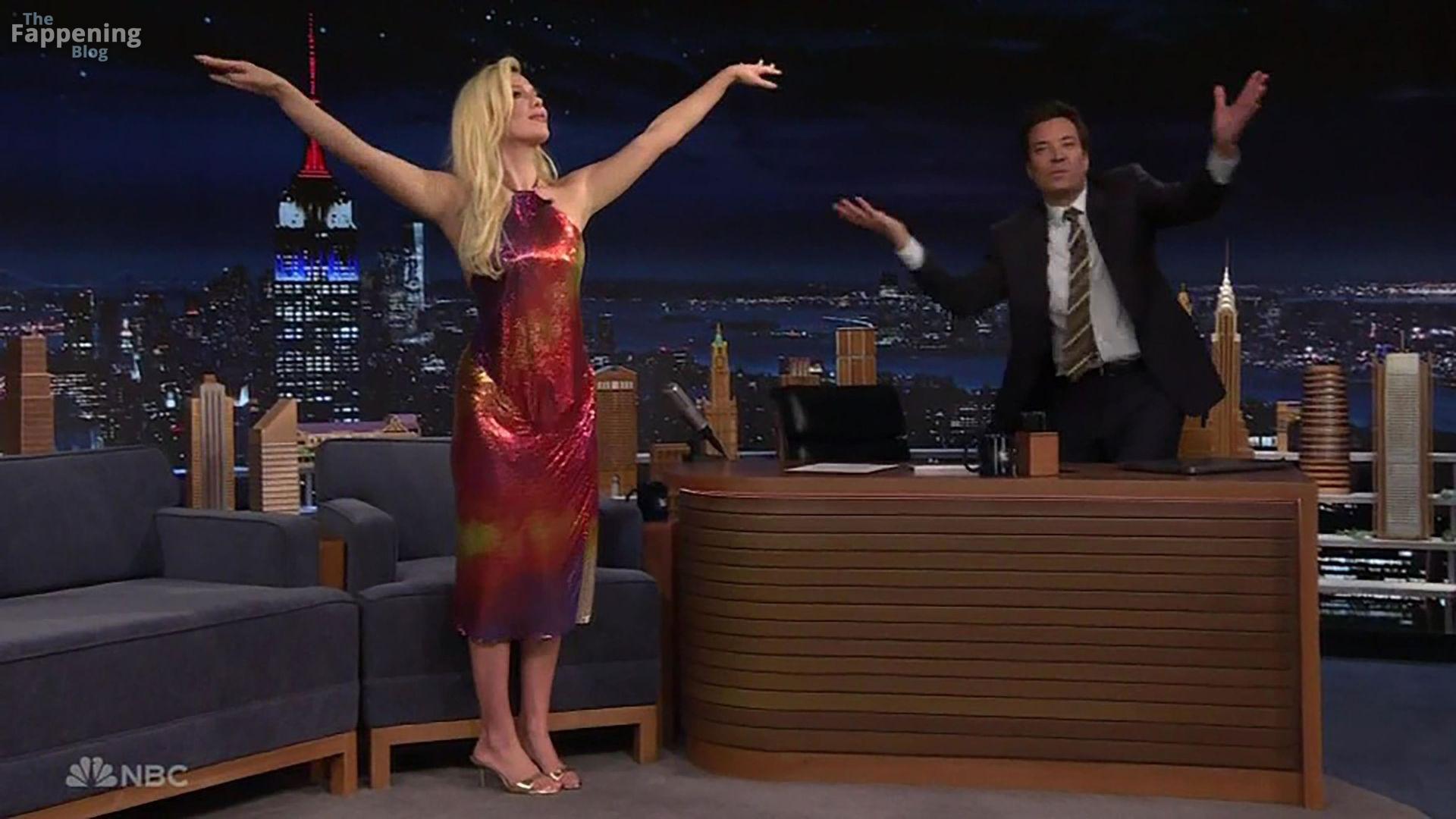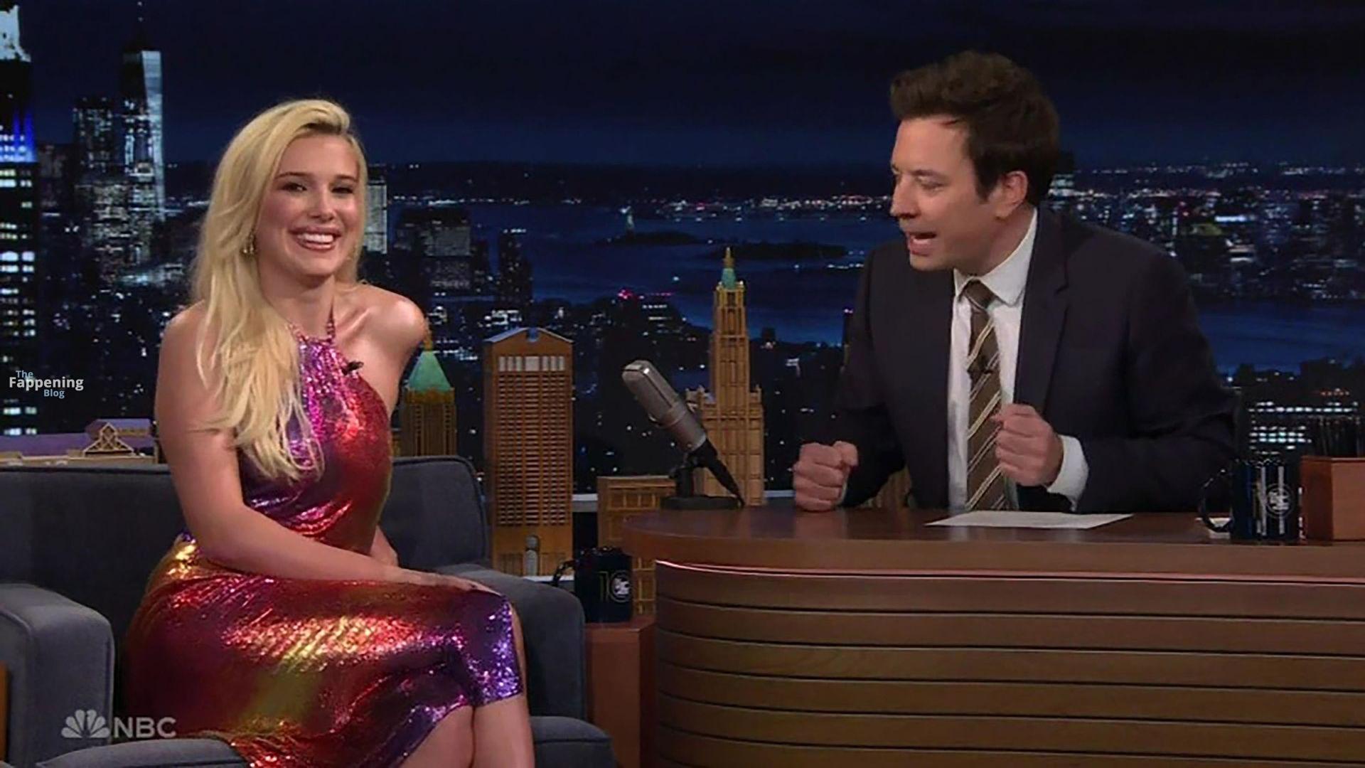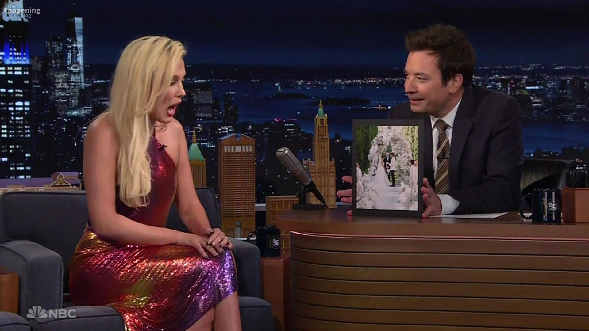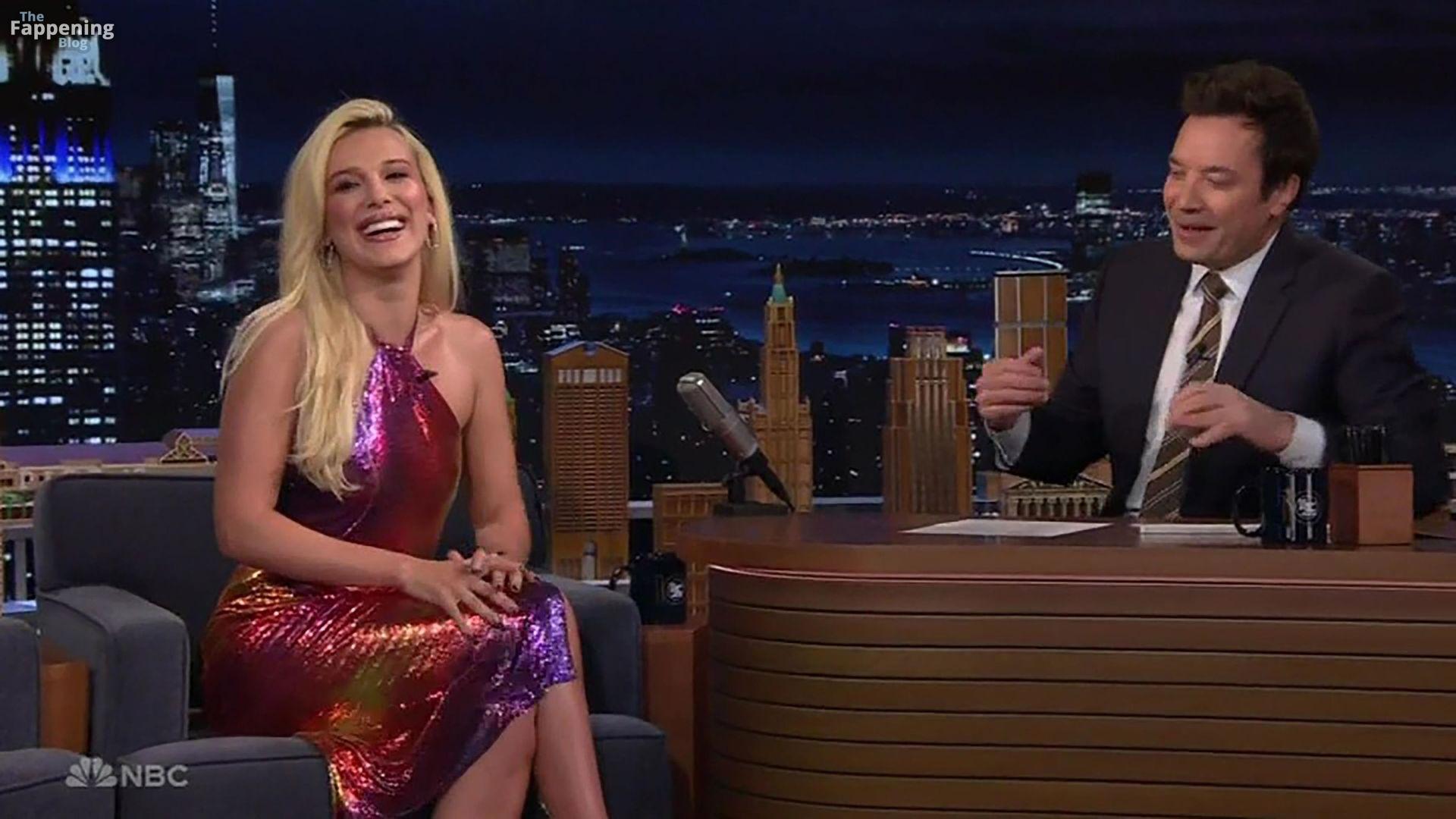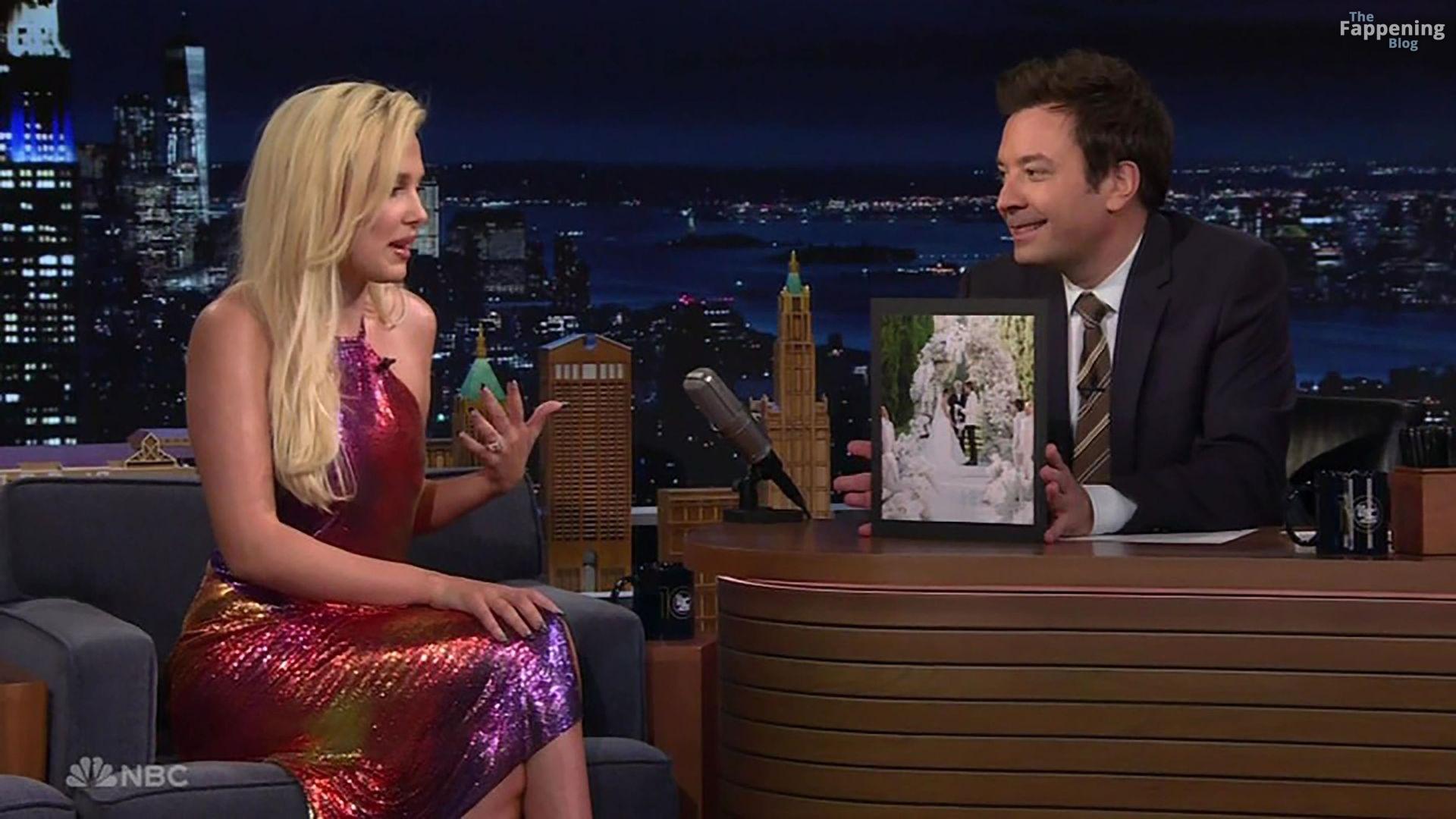 Millie Bobby Brown aparece luciendo sexy y sin sujetador, mostrando sus pezones a través de un vestido metálico en “The Tonight Show Starring Jimmy Fallon”. La actriz estuvo en el programa nocturno estadounidense para promocionar su nueva película “Electric State”, donde compartió recuerdos de su boda con Jake Bongiovi el año pasado.