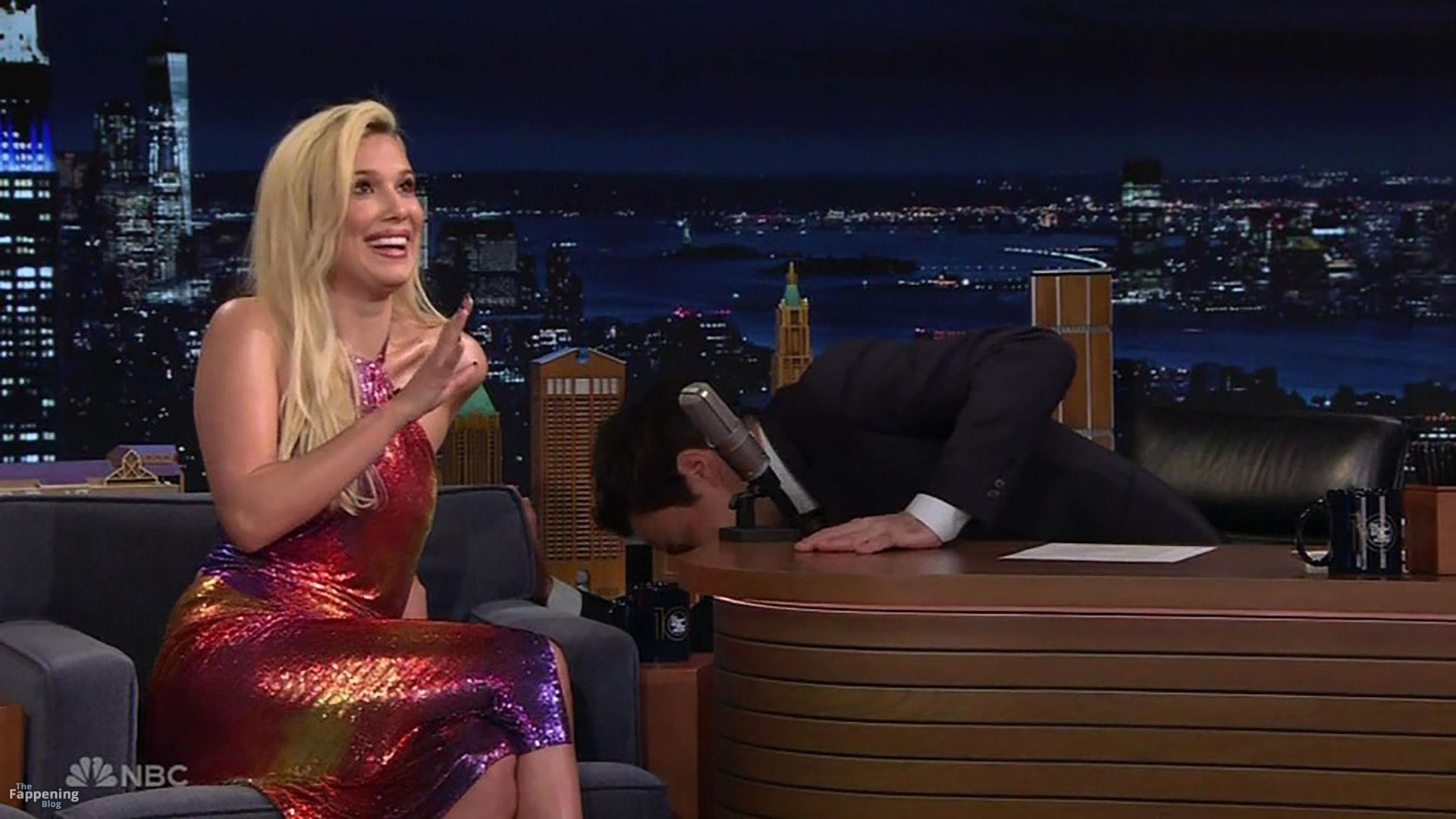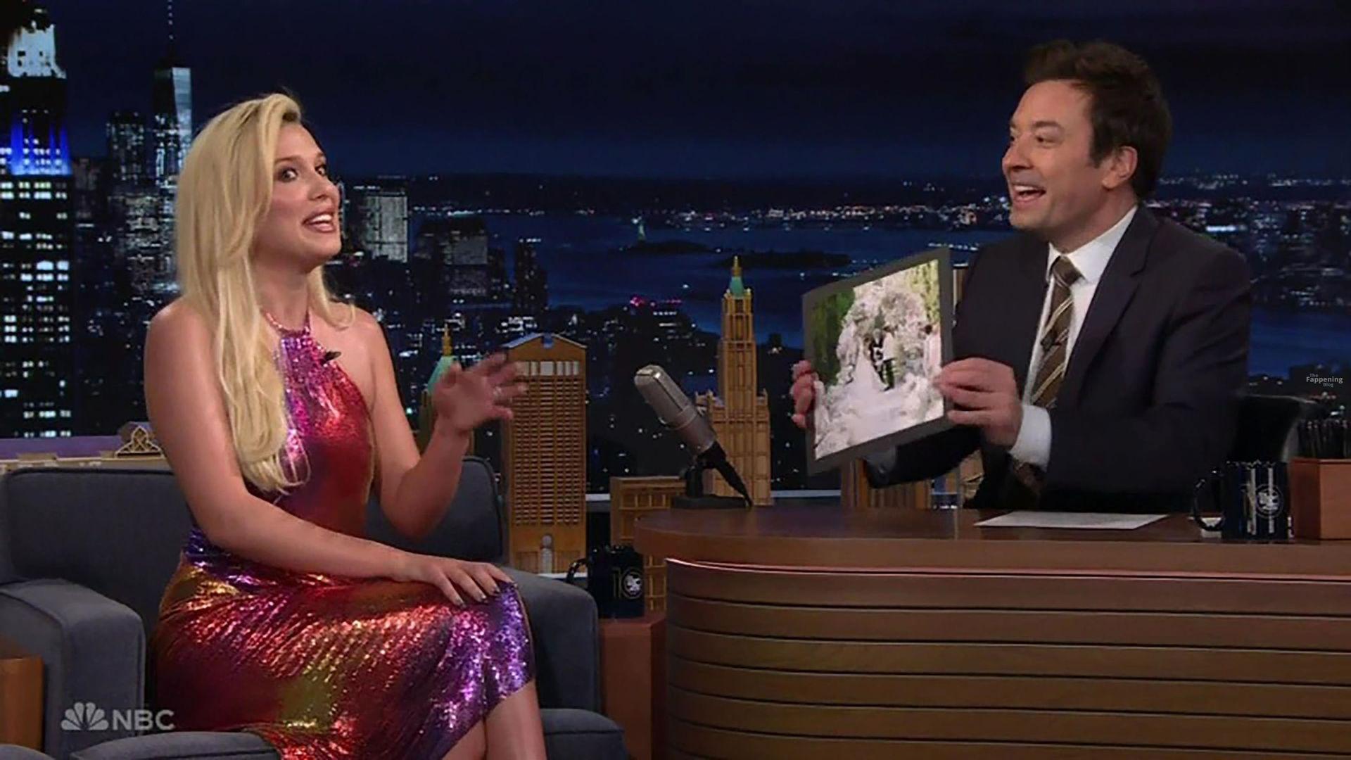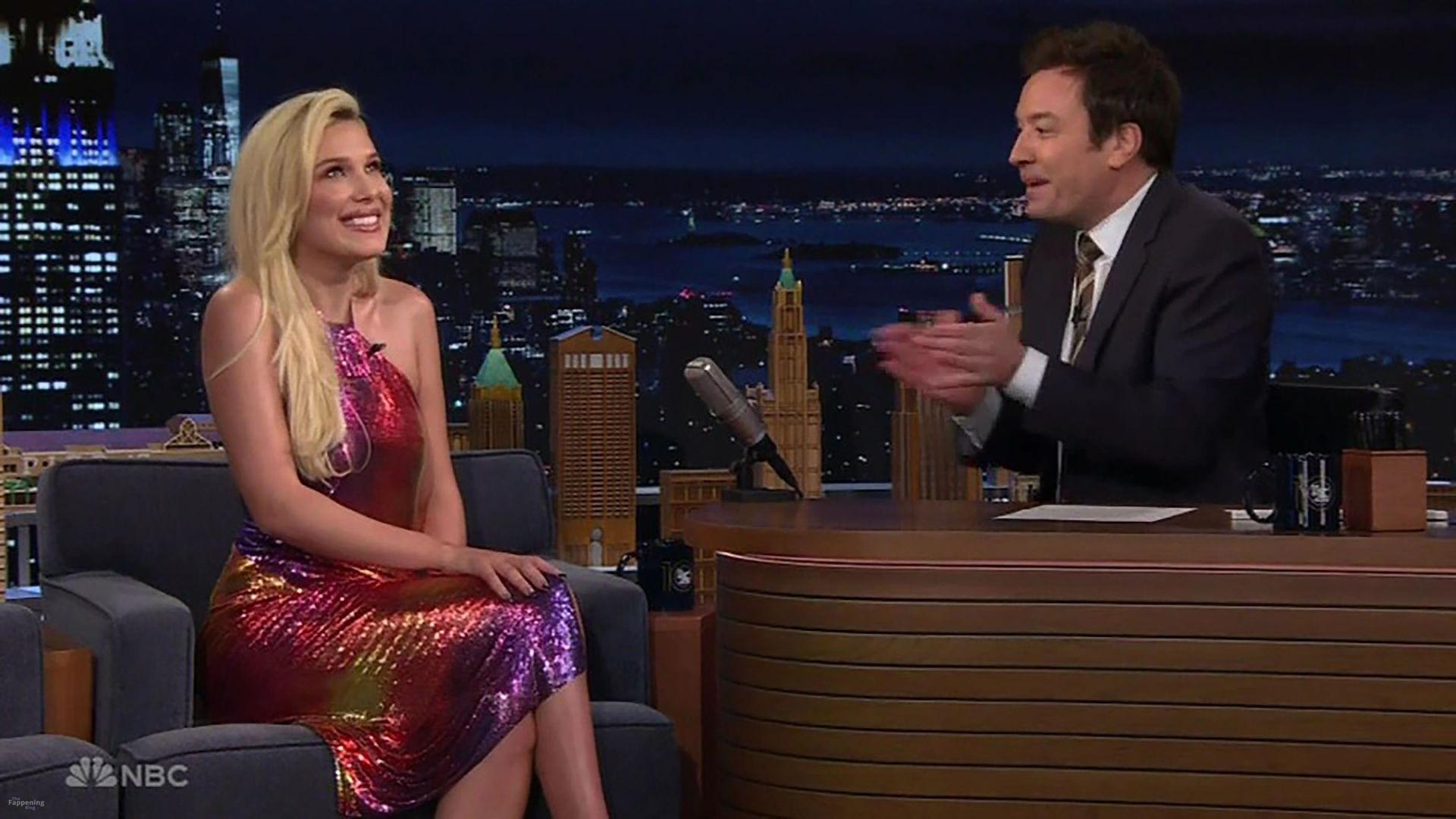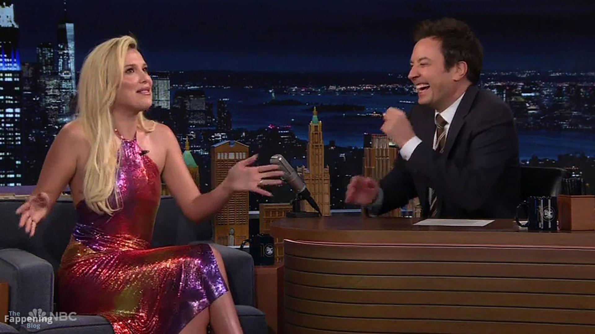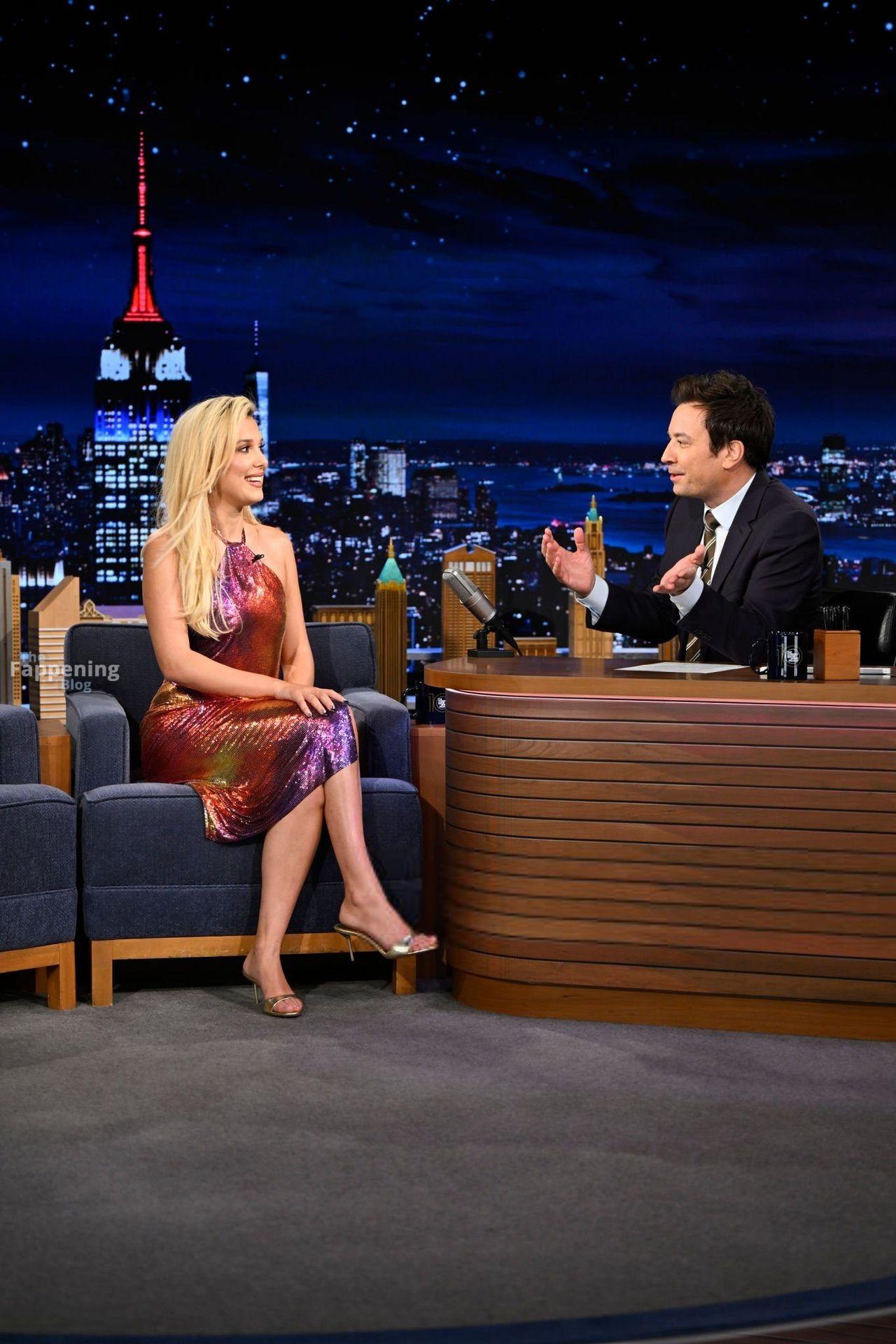 Millie Bobby Brown aparece luciendo sexy y sin sujetador, mostrando sus pezones a través de un vestido metálico en “The Tonight Show Starring Jimmy Fallon”. La actriz estuvo en el programa nocturno estadounidense para promocionar su nueva película “Electric State”, donde compartió recuerdos de su boda con Jake Bongiovi el año pasado.