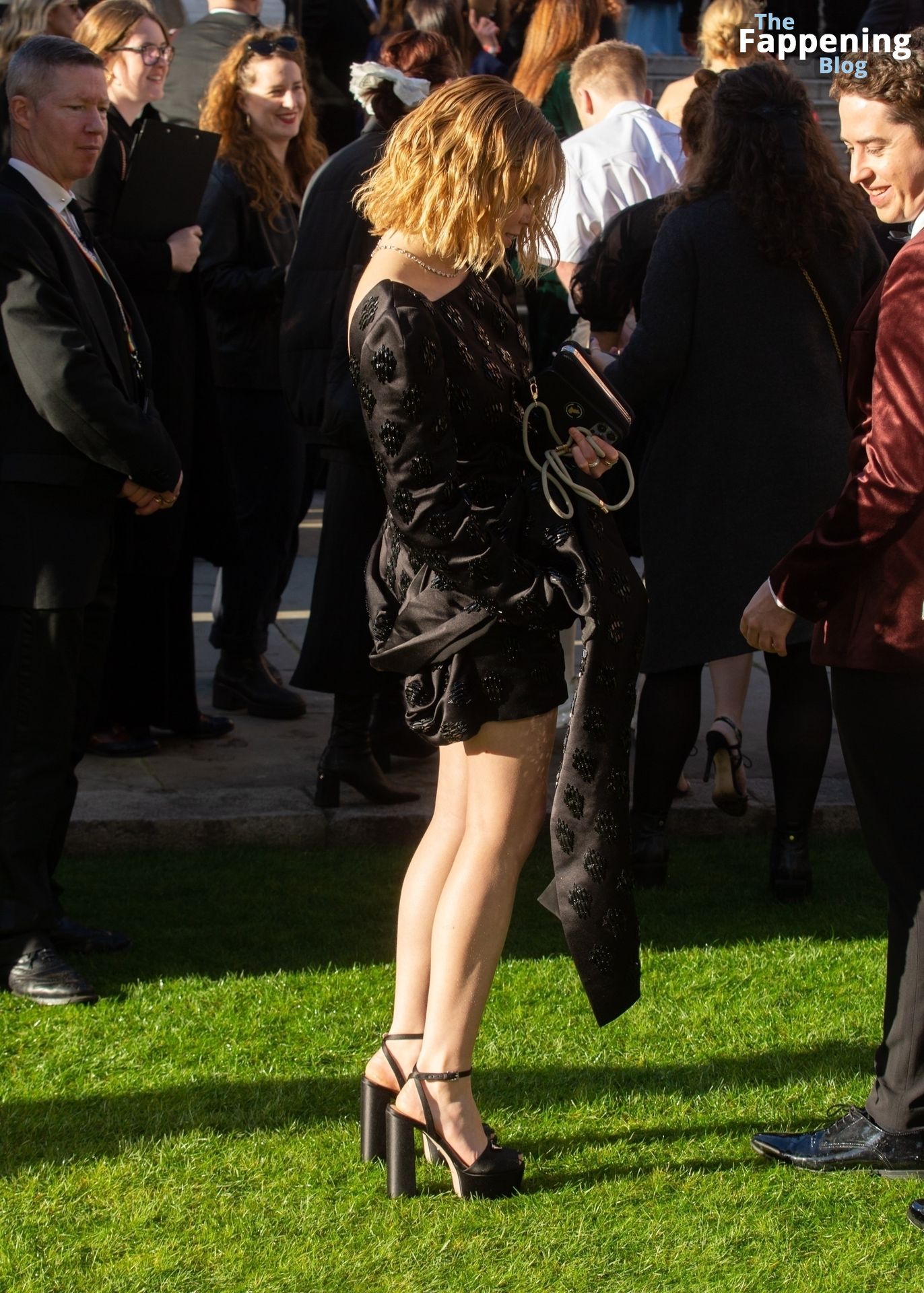 Sé testigo de la cautivadora aparición de Milly Alcock en el evento, mientras presume sus impresionantes piernas con un vestido corto y tacones altos, robando toda la atención. ¡No te pierdas este look impresionante!