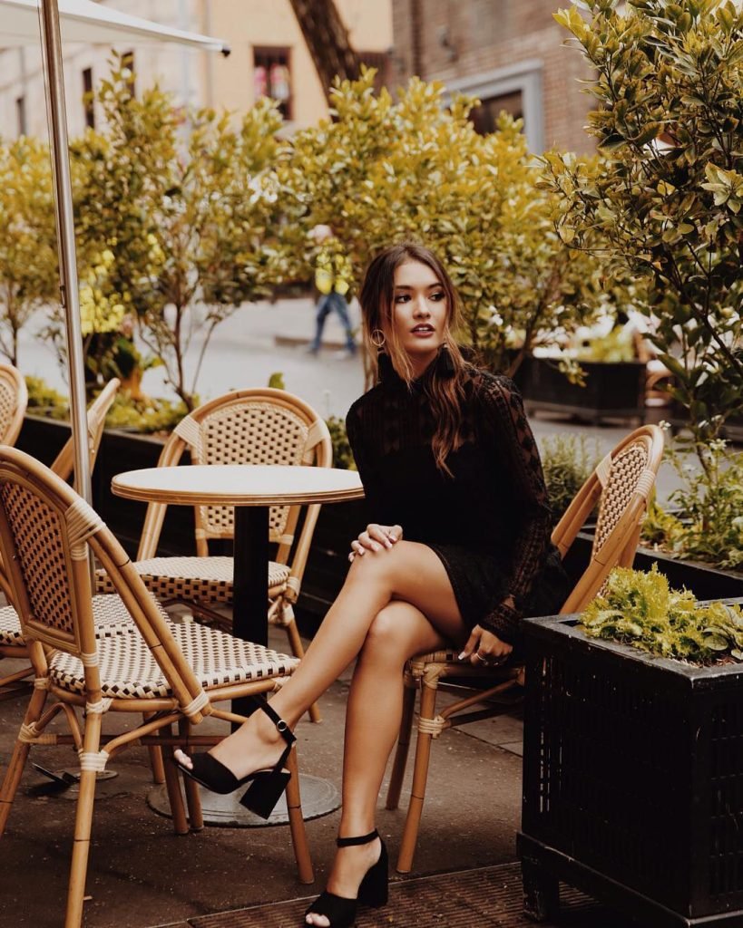 A la modelo le gusta un grupo divertido de amigos, asiste frecuentemente a eventos de moda y disfruta descubrir nuevos países.