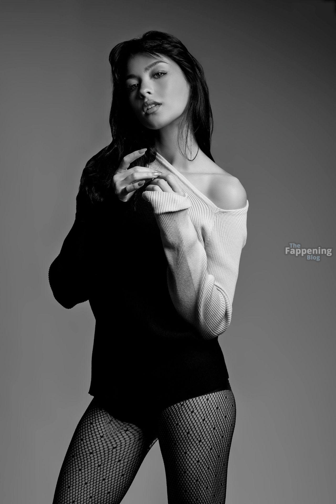 La estrella estadounidense de TikTok Mishka Silva seduce con suéteres, blazers y medias de red para la edición de septiembre de 2025 de la revista Chicle. Ella muestra sus piernas calientes y su rostro bonito.