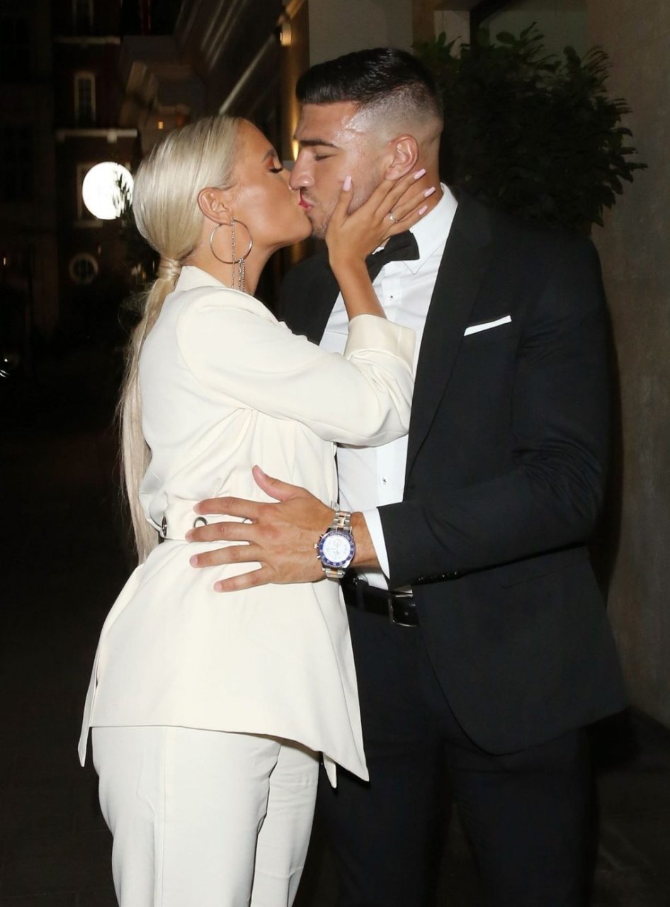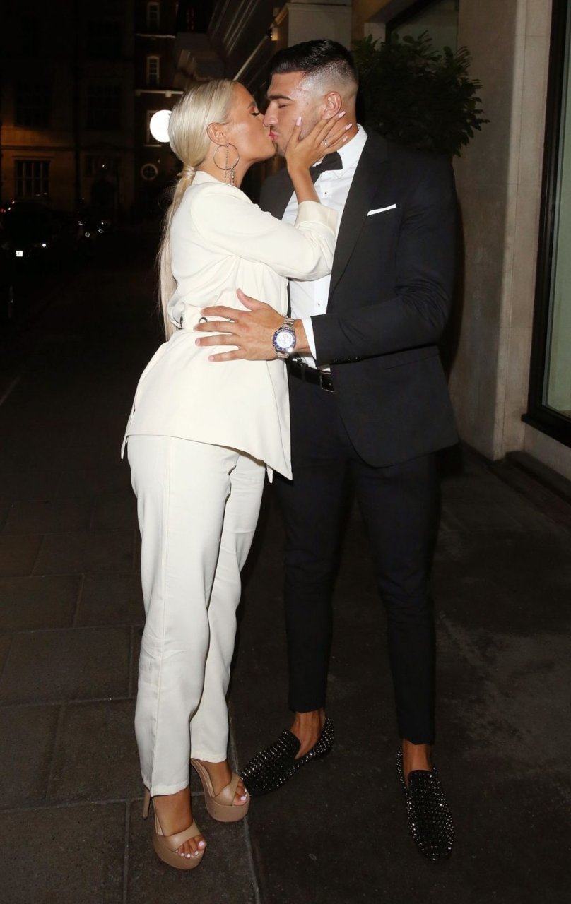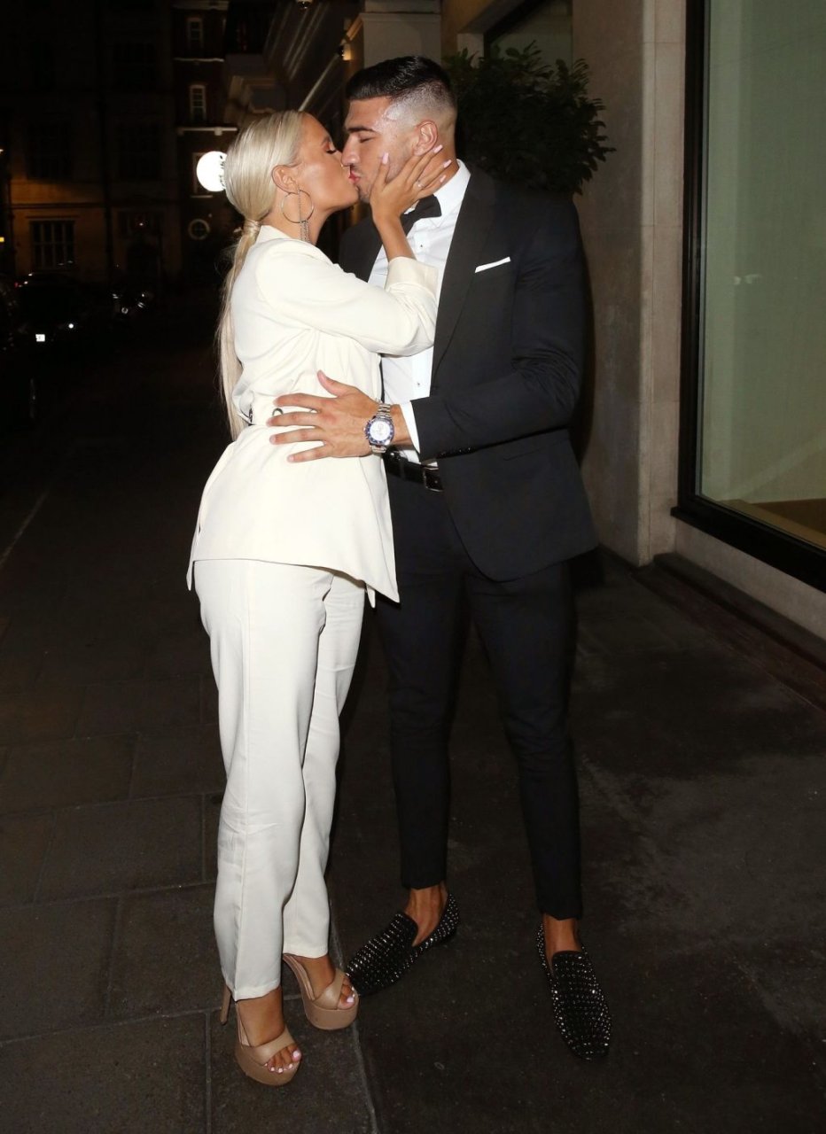 Molly-Mae Hague y Tommy Fury se muestran aquí en una demostración muy cariñosa después de la fiesta Love Island aftersun mientras regresaban a su hotel en Londres besándose y tomados de la mano con amor, 08/04/2019.