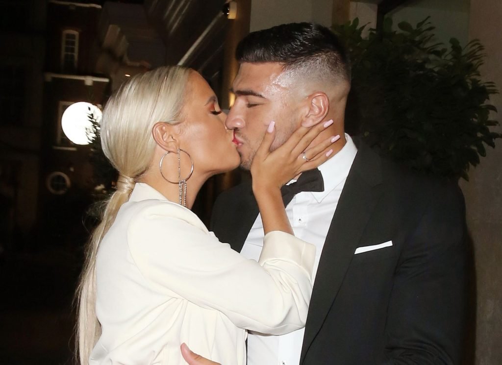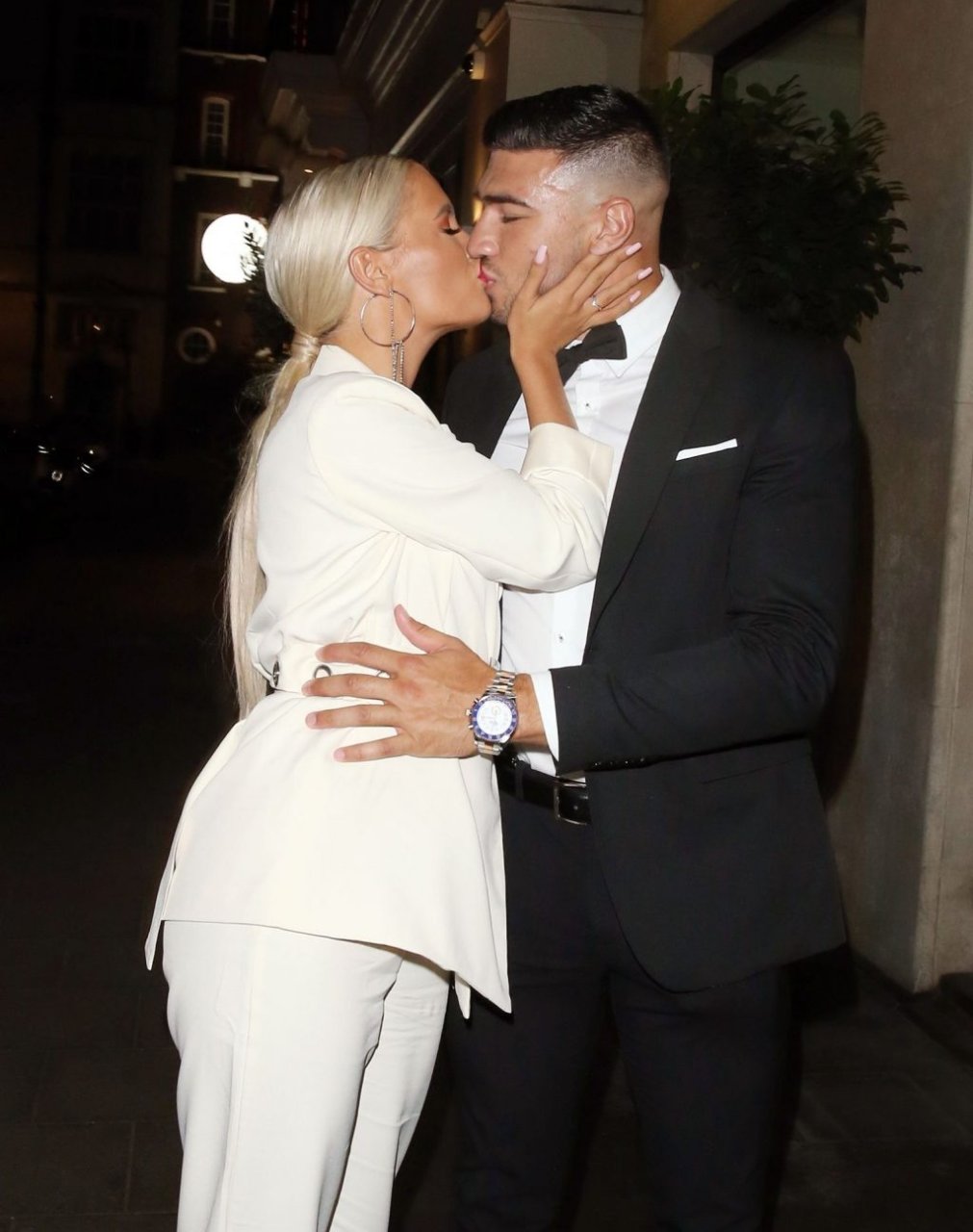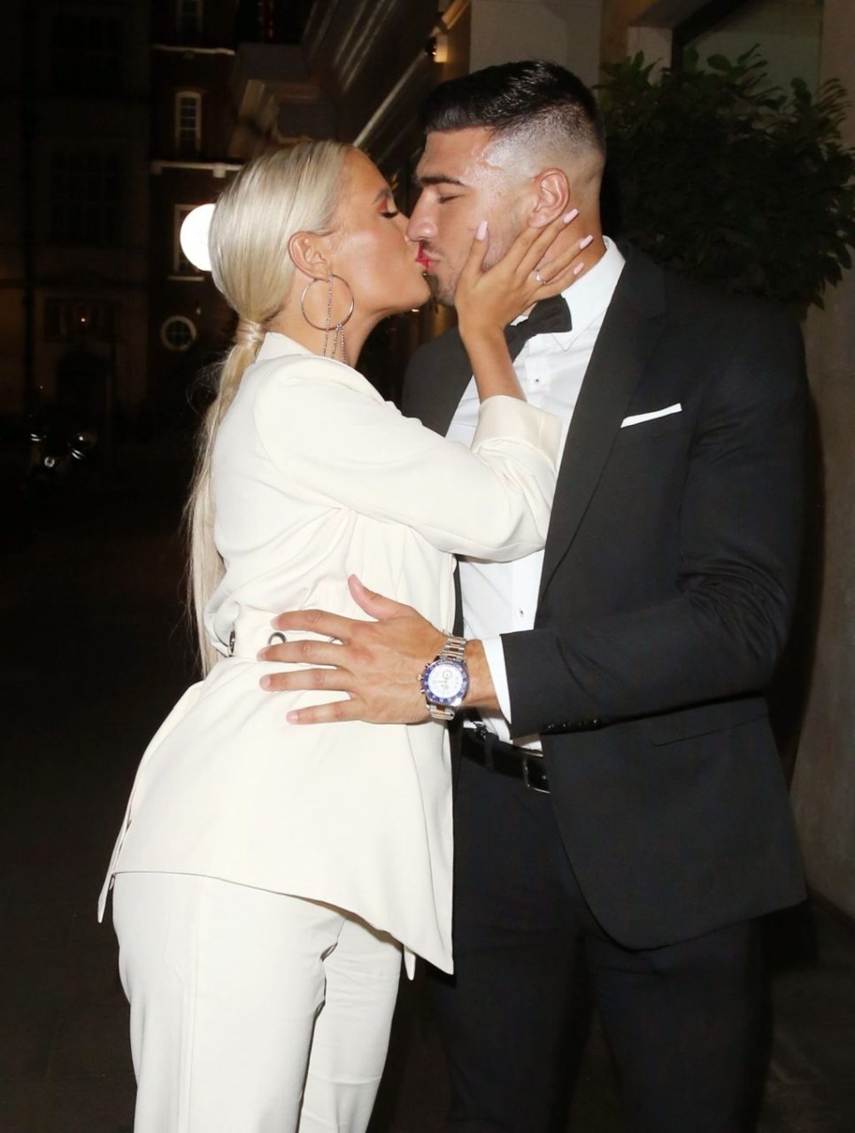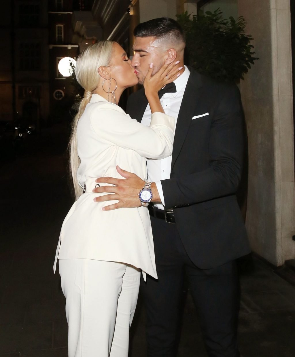 Molly-Mae Hague y Tommy Fury se muestran aquí en una demostración muy cariñosa después de la fiesta Love Island aftersun mientras regresaban a su hotel en Londres besándose y tomados de la mano con amor, 08/04/2019.