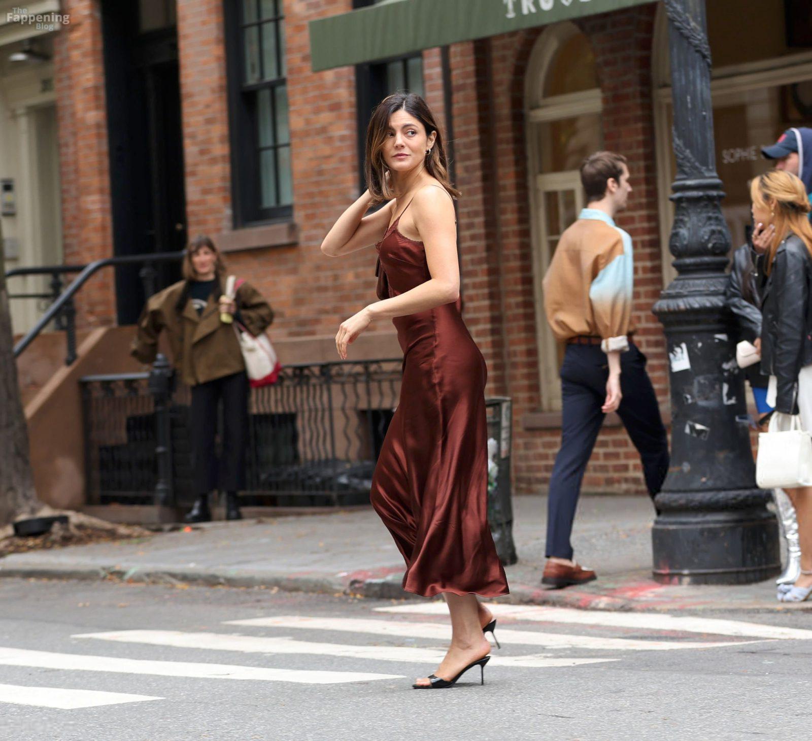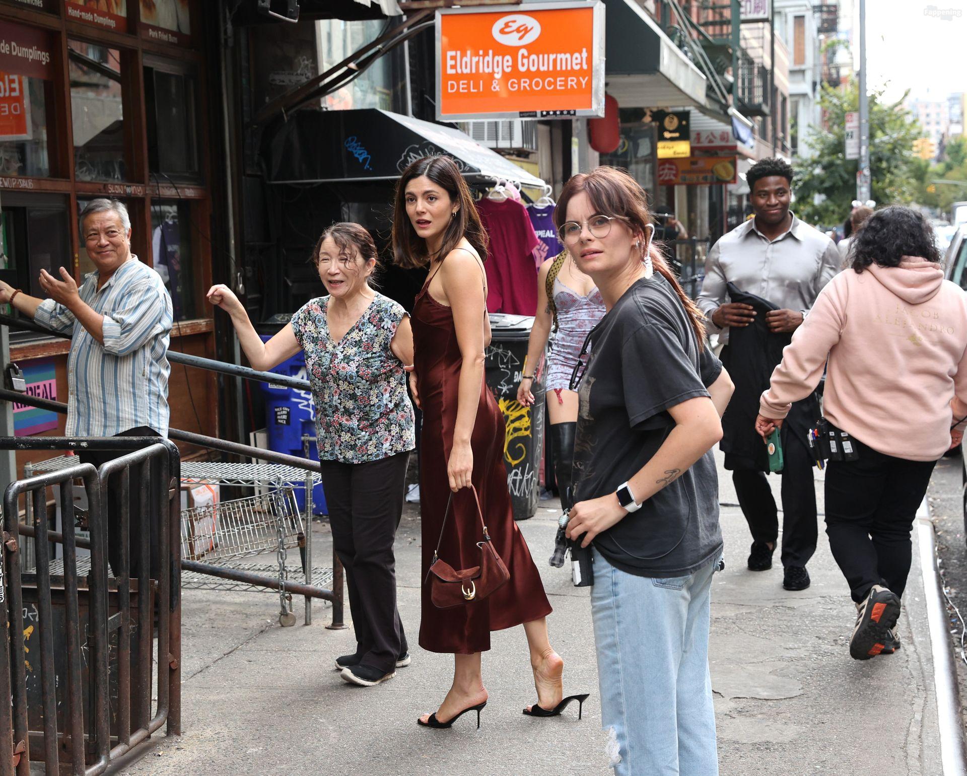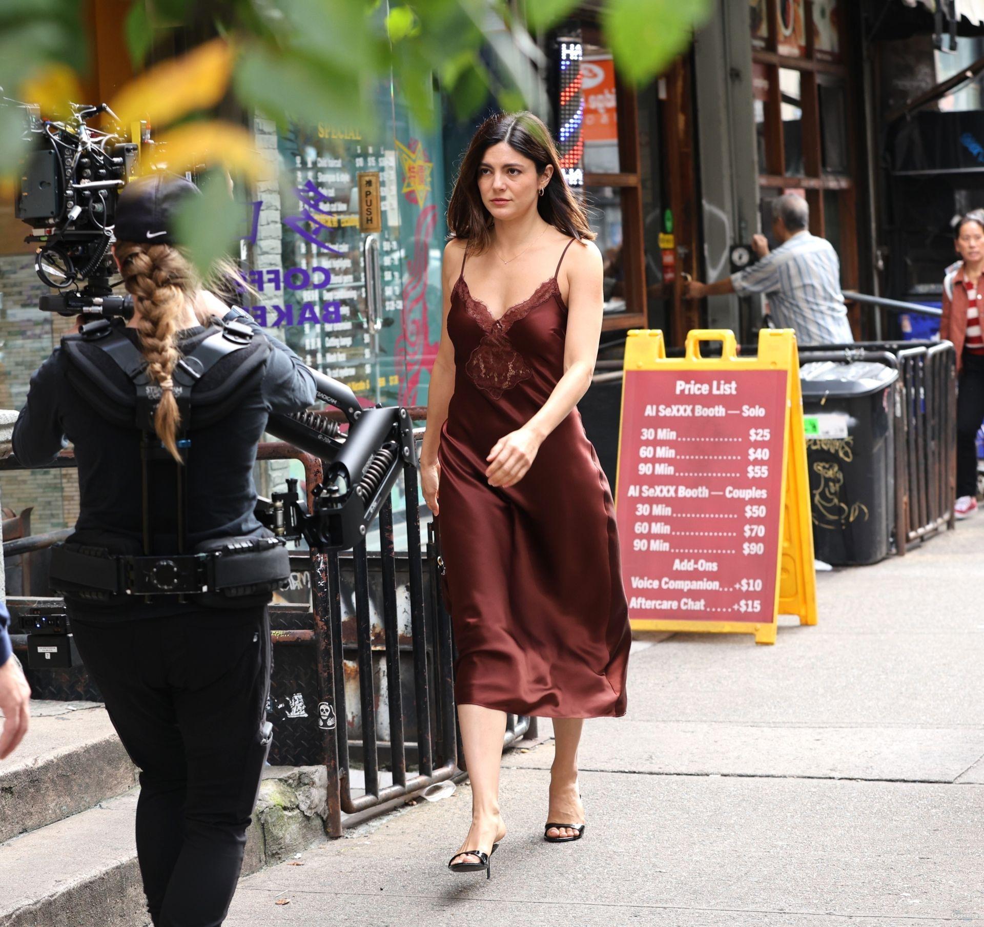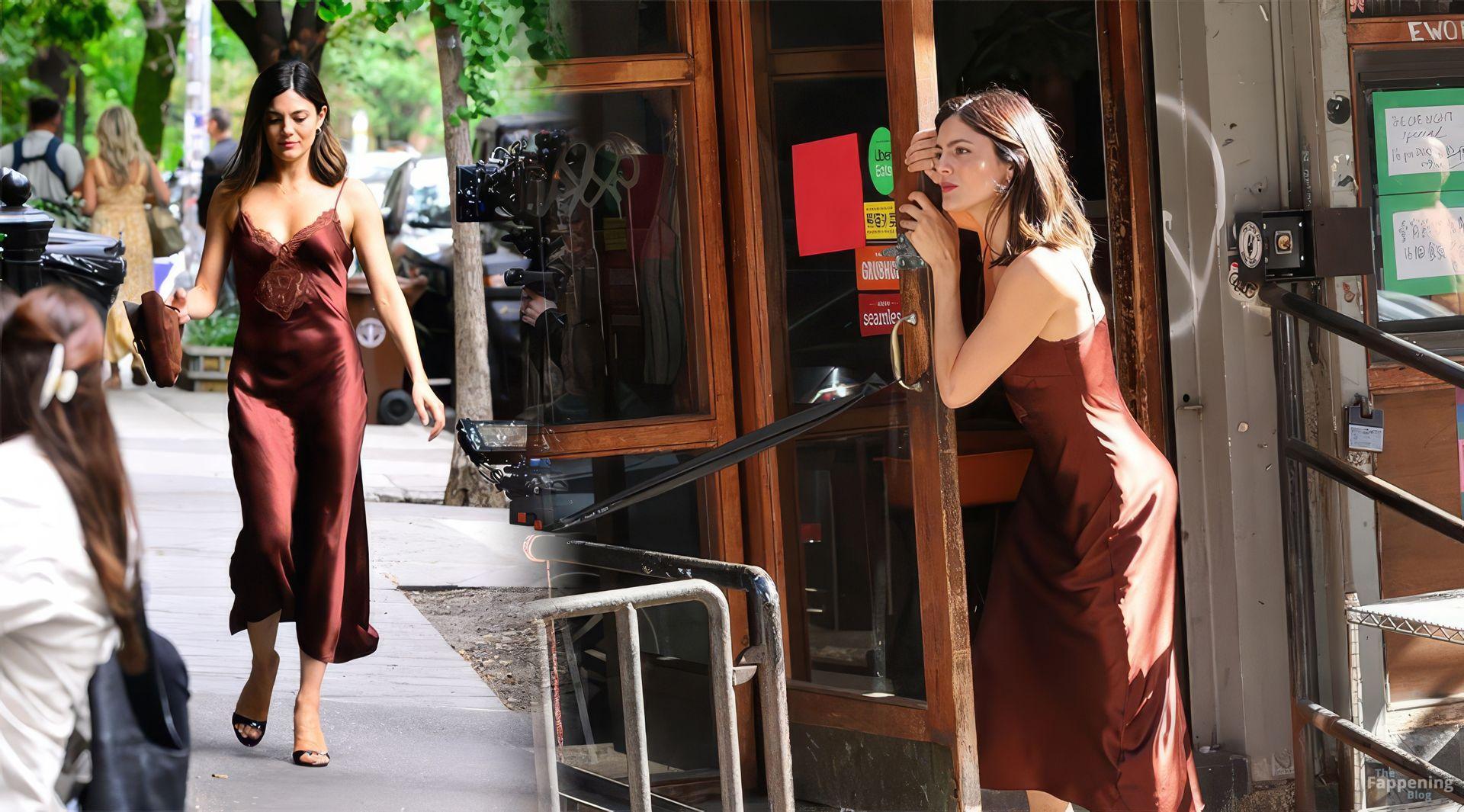 Monica Barbaro estaba en las calles de NYC, luciendo un vestido rojo ajustado que abrazaba su figura y mostraba su escote para One Night Only.