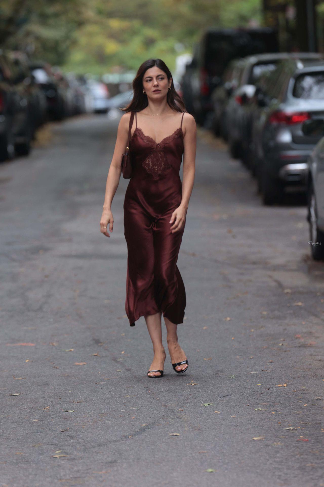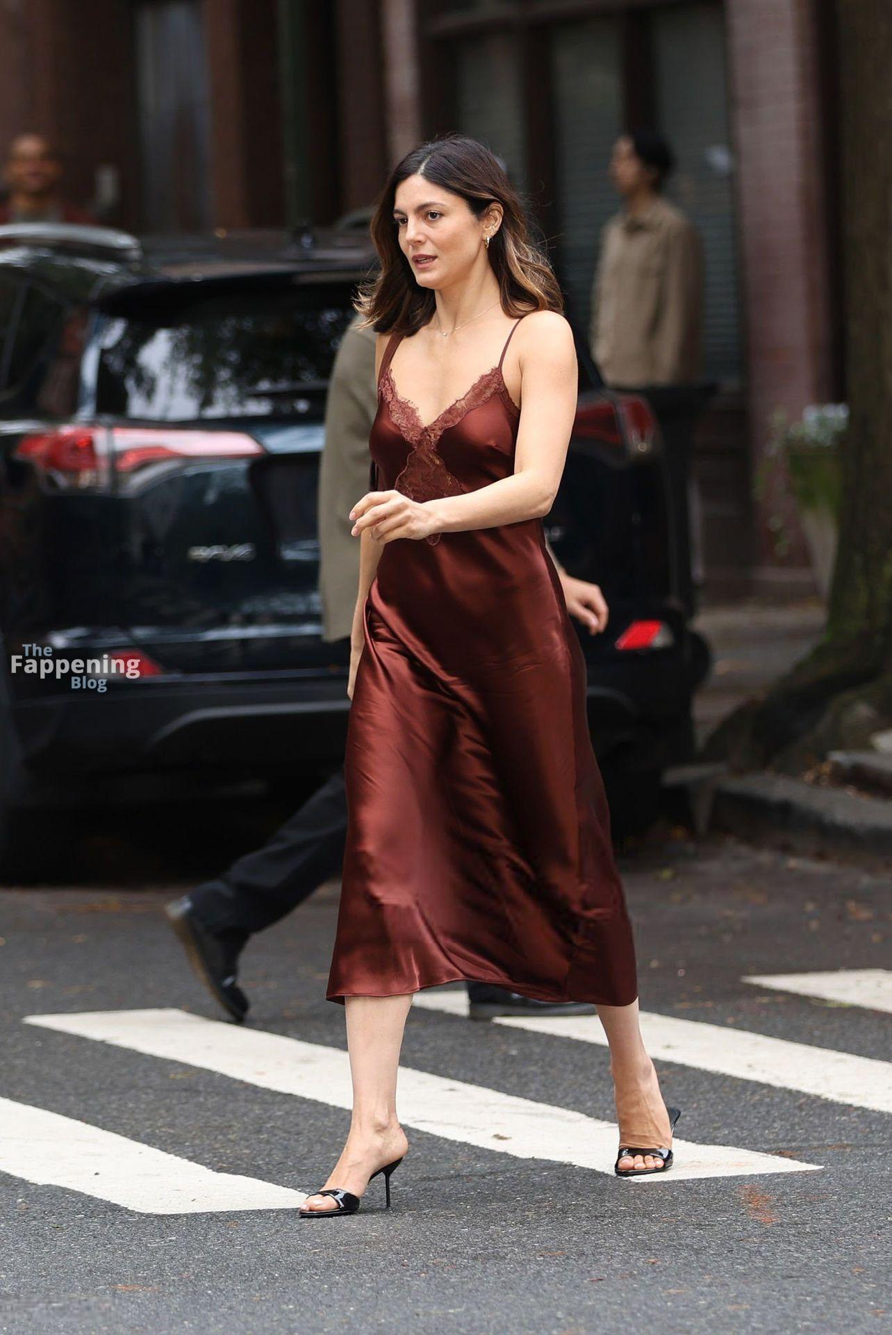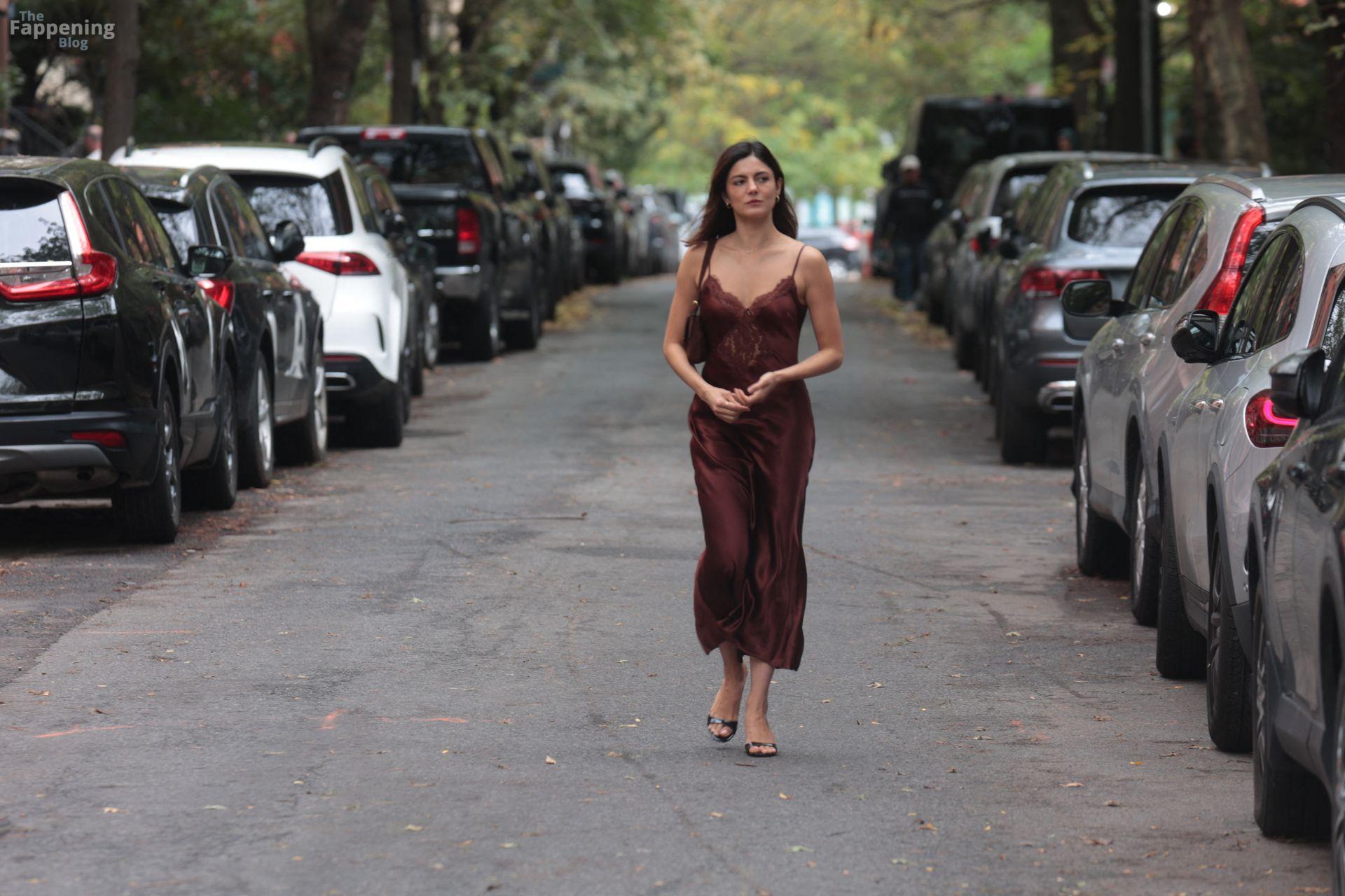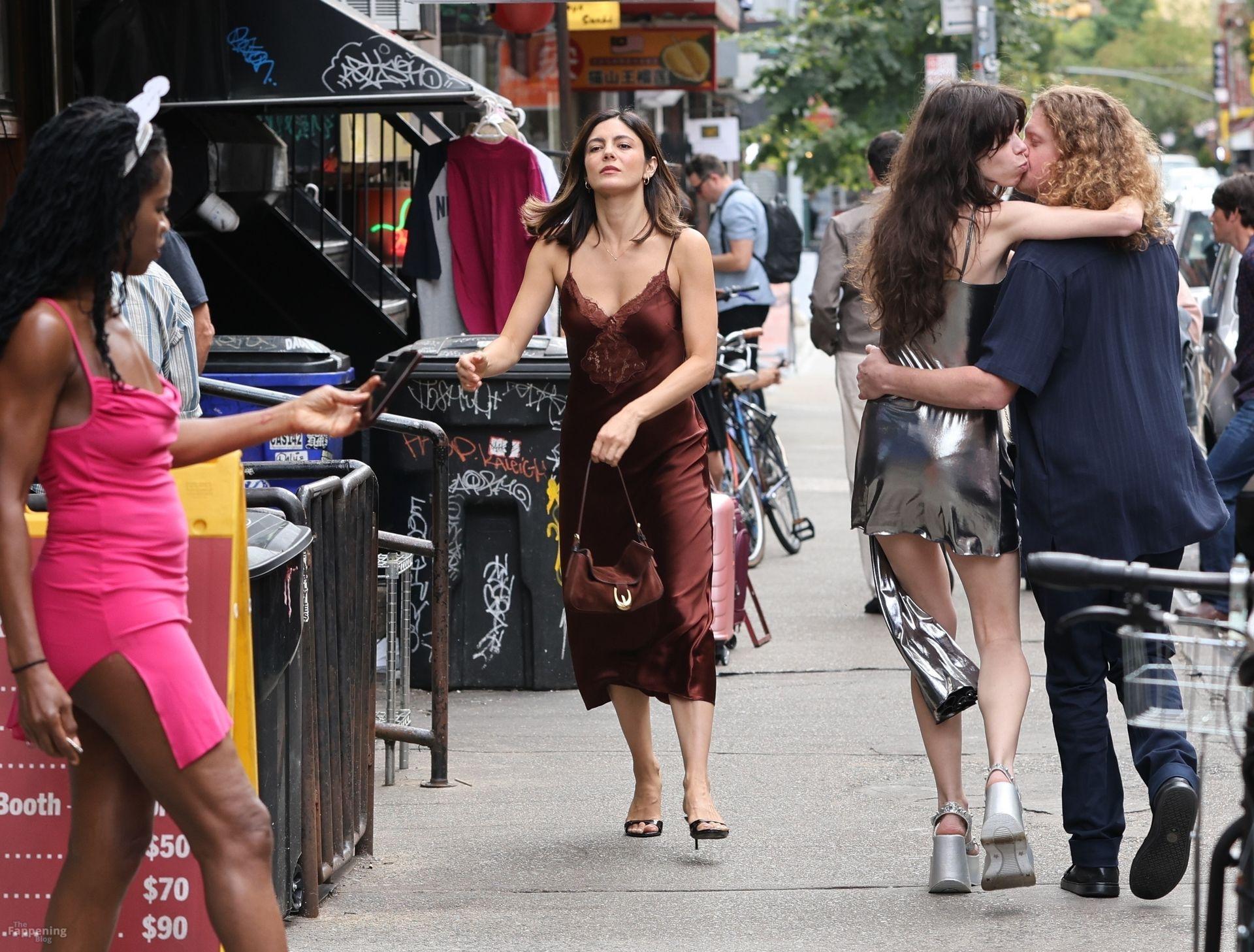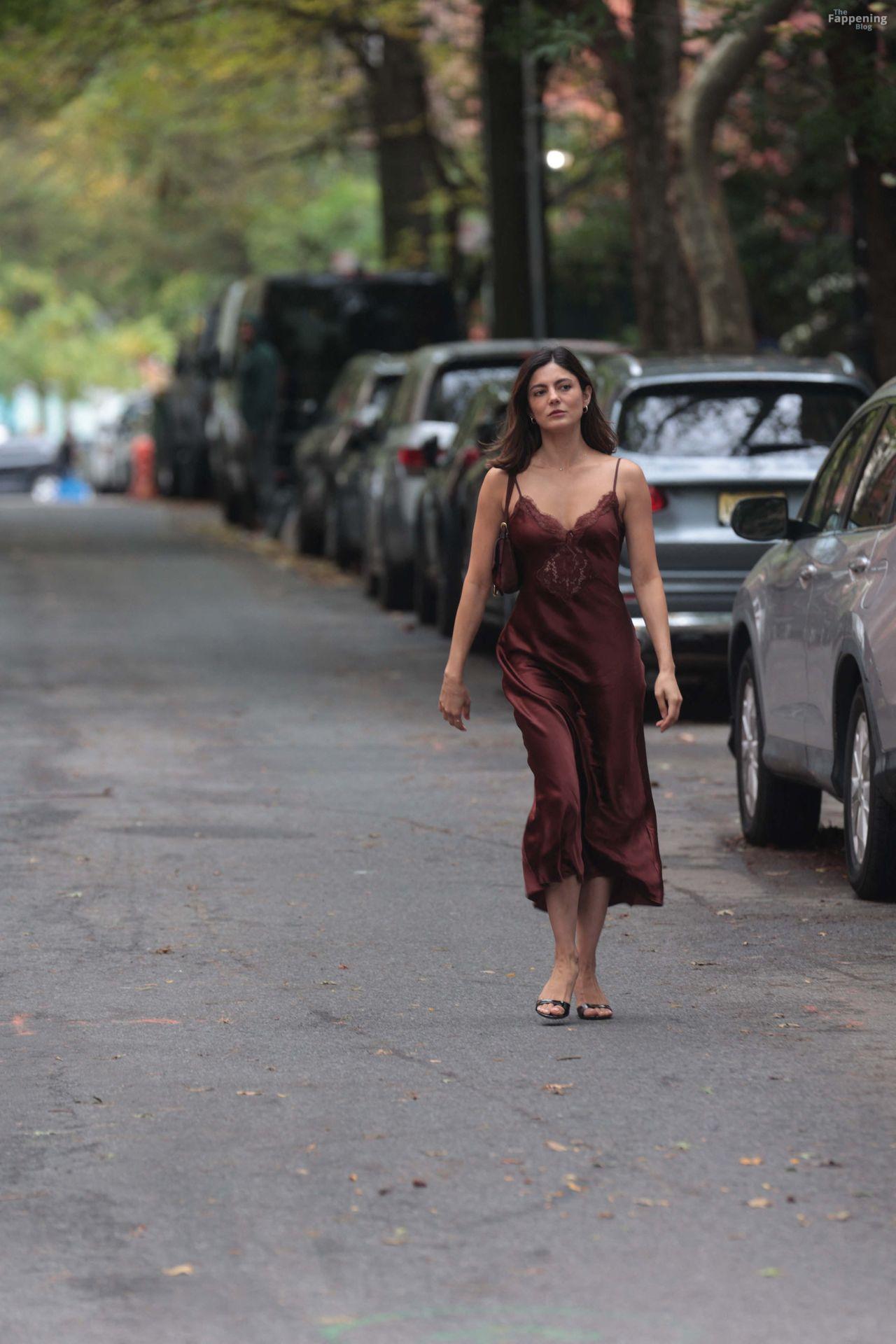 Monica Barbaro estaba en las calles de NYC, luciendo un vestido rojo ajustado que abrazaba su figura y mostraba su escote para One Night Only.