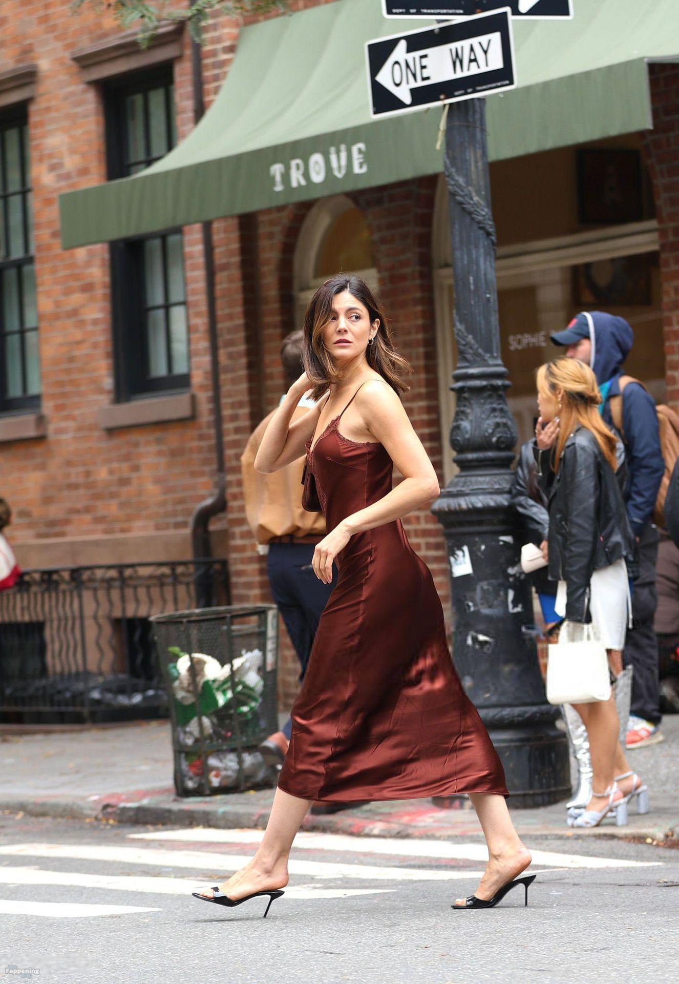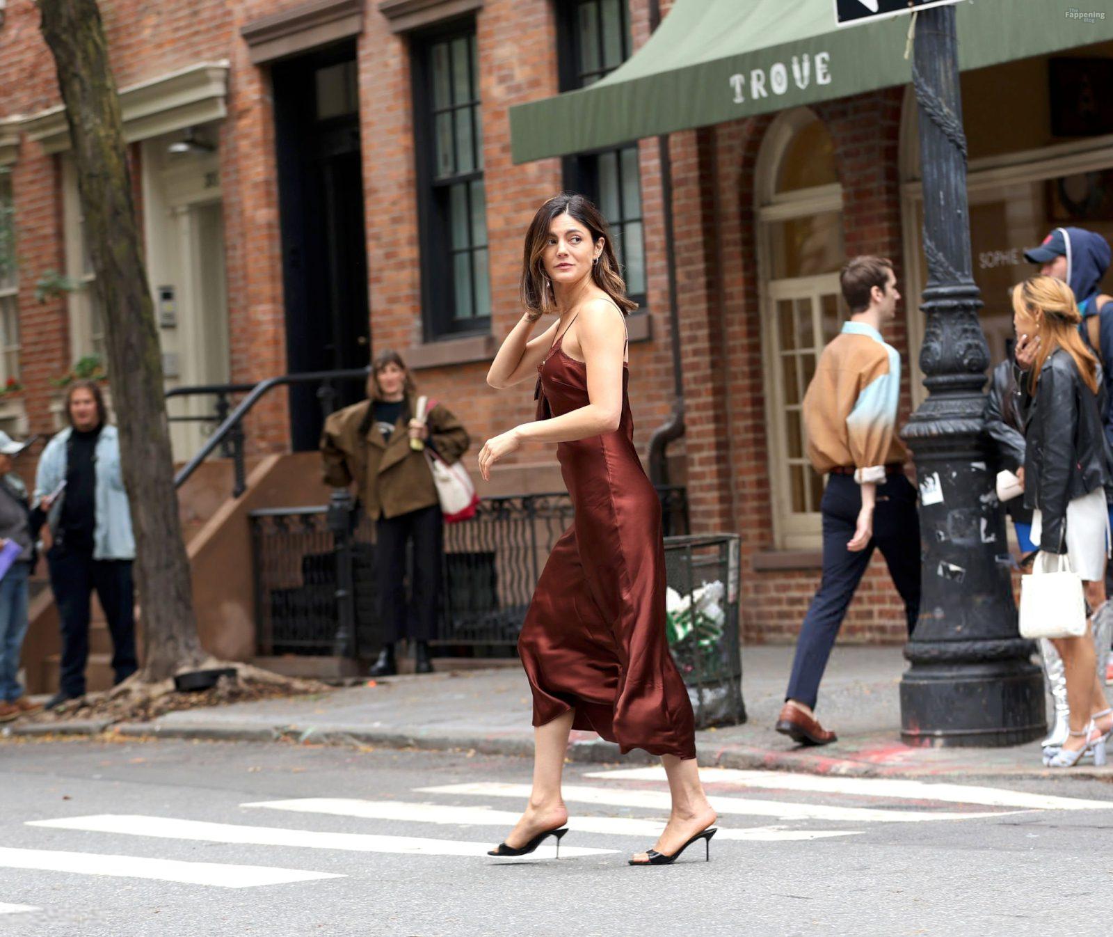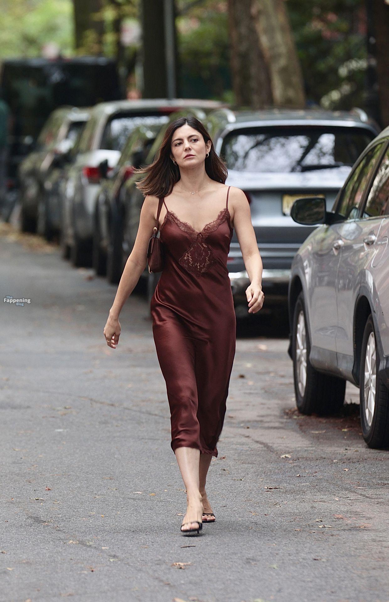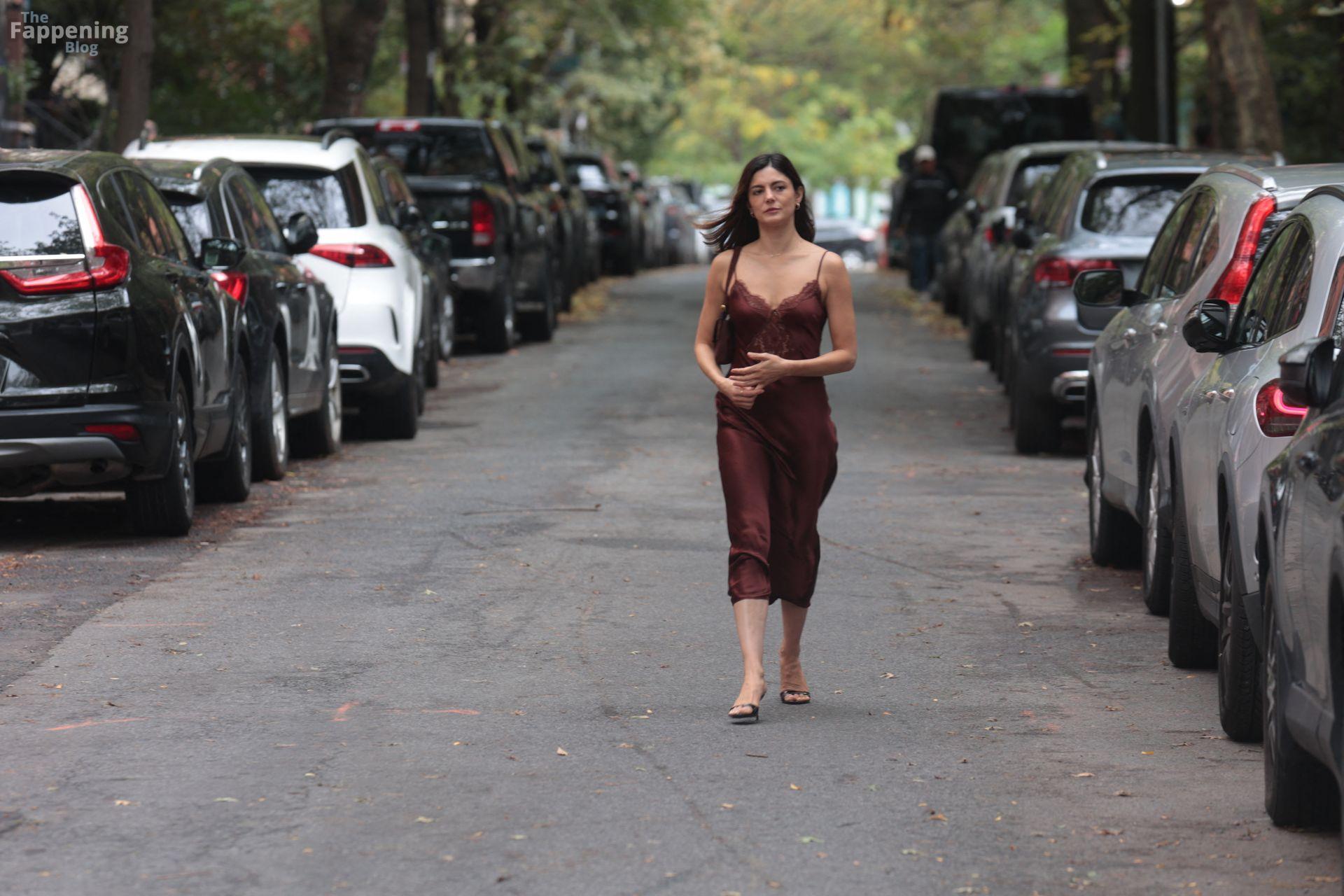 Monica Barbaro estaba en las calles de NYC, luciendo un vestido rojo ajustado que abrazaba su figura y mostraba su escote para One Night Only.
