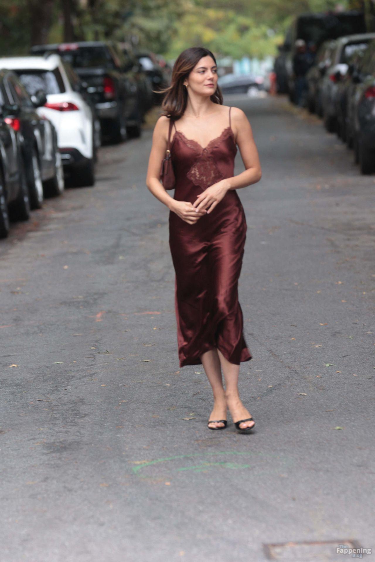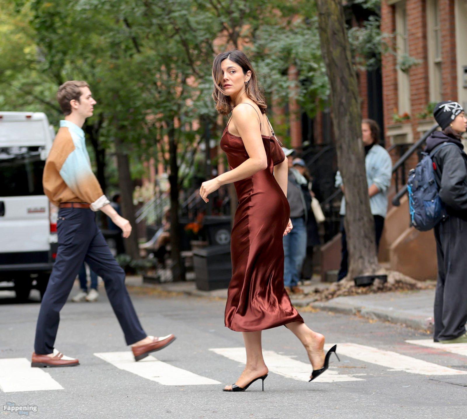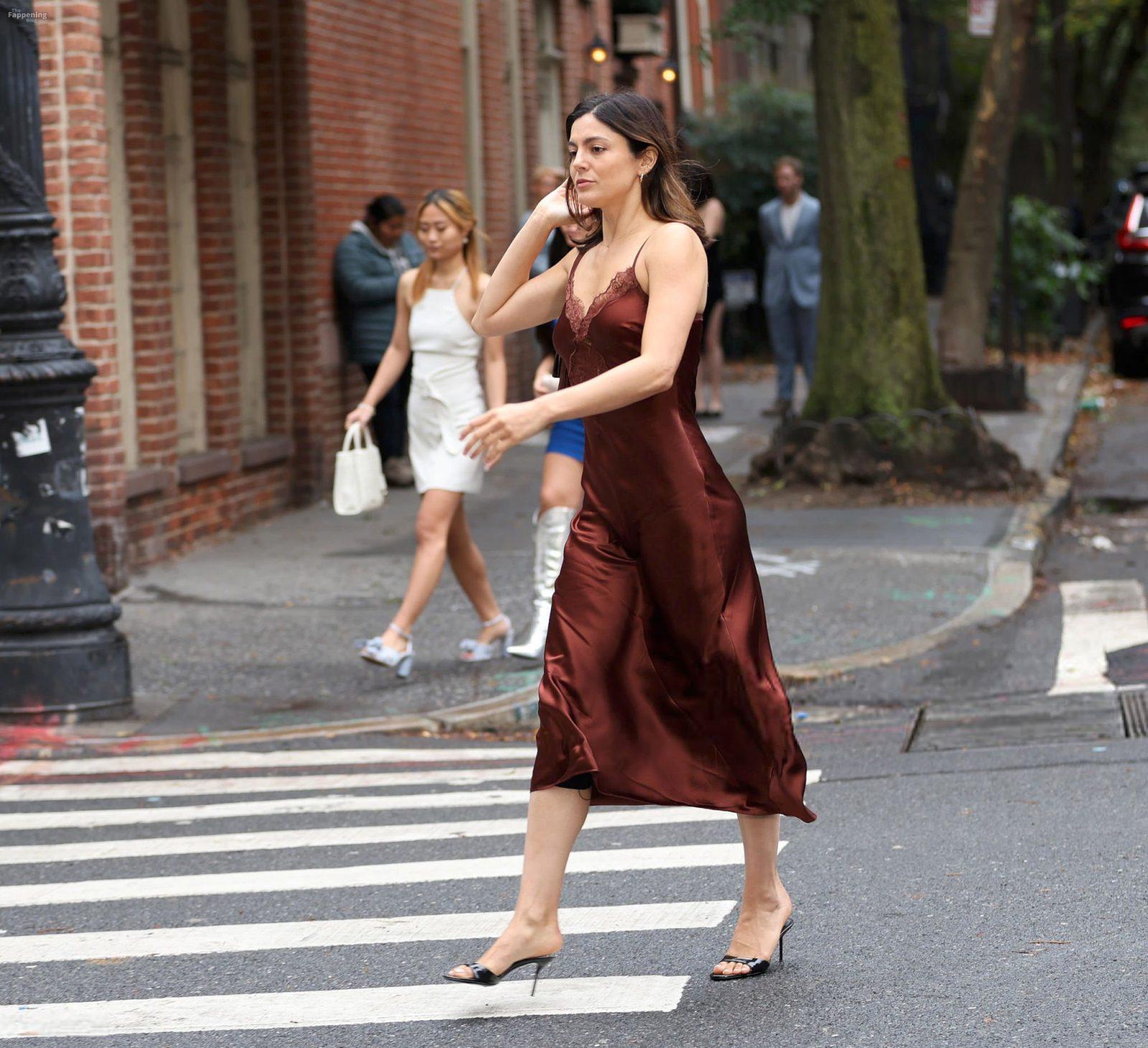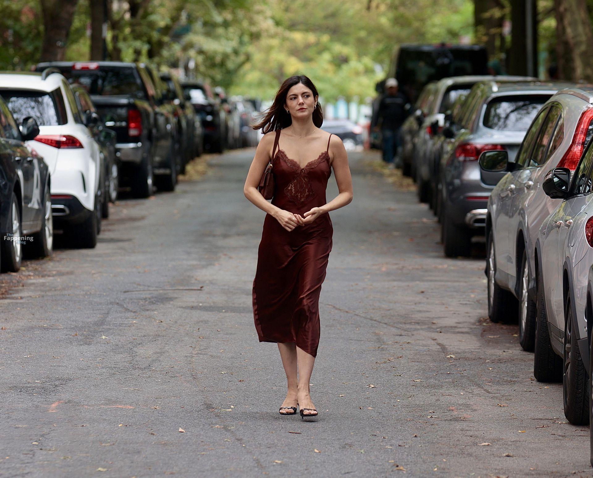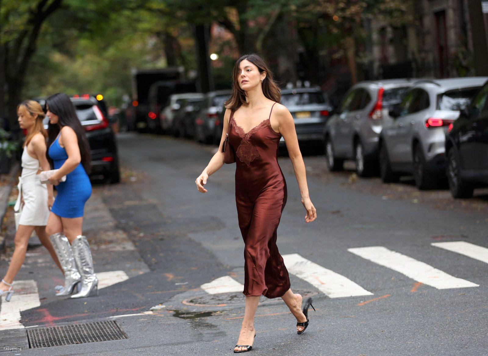 Monica Barbaro estaba en las calles de NYC, luciendo un vestido rojo ajustado que abrazaba su figura y mostraba su escote para One Night Only.