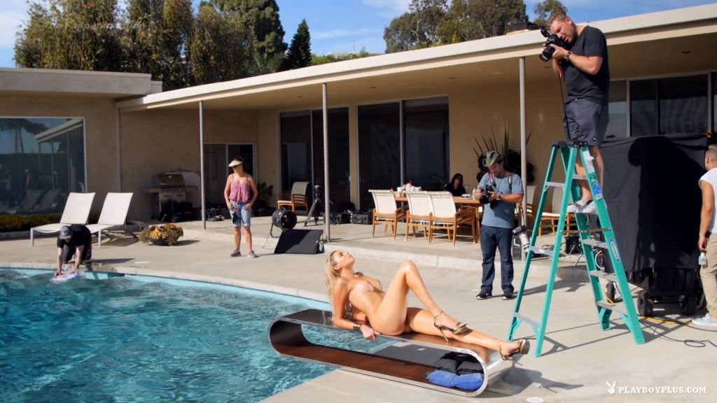 Mira el detrás de cámaras de Monica Sims para Playboy Plus (2015). La rubia muestra sus tetas, trasero y coño, posando en trajes de baño, lencería y completamente desnuda en la piscina.