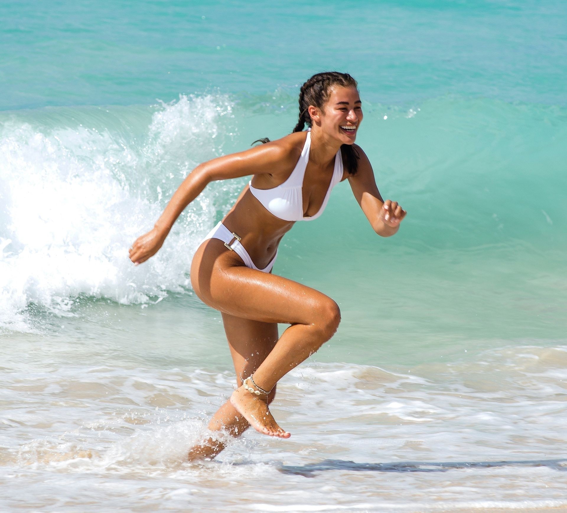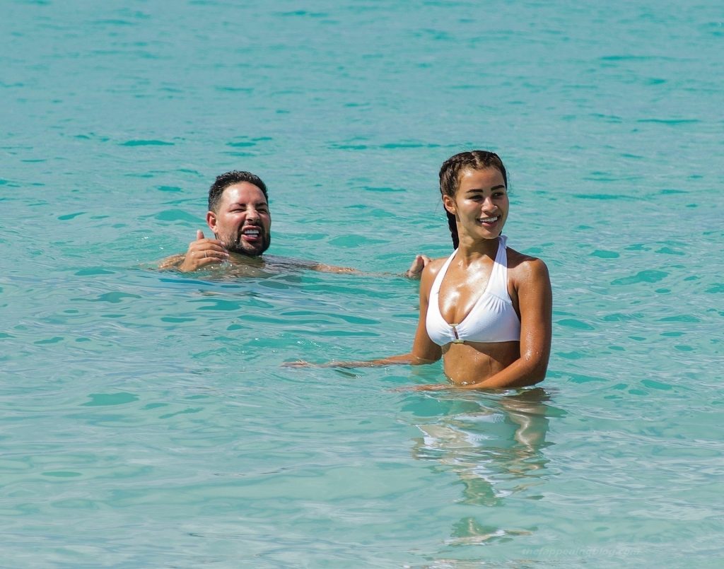 Montana lució su bikini blanco de dos piezas mostrando todas sus curvas sensuales mientras disfrutaba del cálido sol del Caribe Occidental durante sus vacaciones de invierno en la parroquia de St. James.