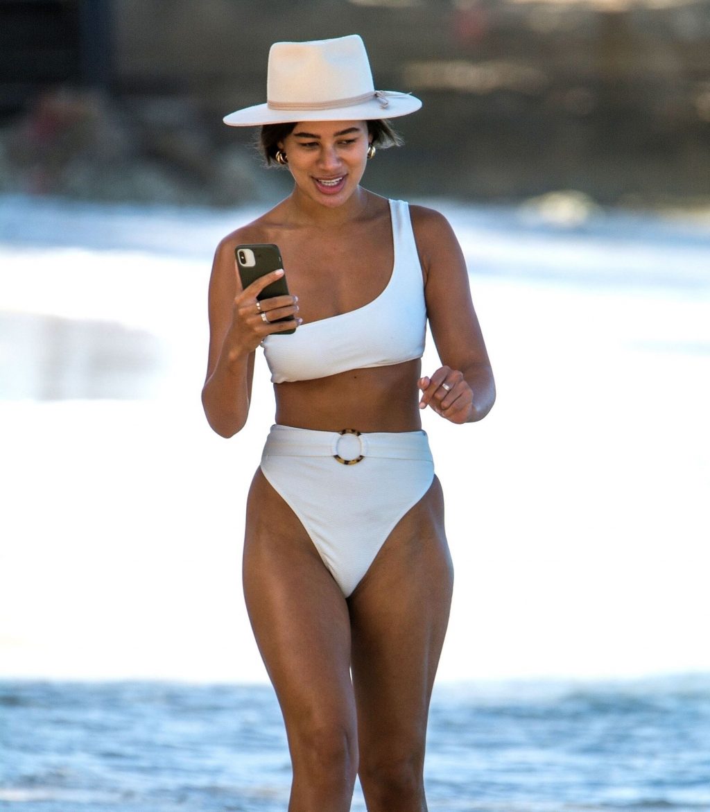 Montana, quien apareció en nuestras pantallas en 2017 en el popular programa de telerrealidad de ITV Love Island, ofrece una exhibición seductora y llamativa mostrando todo su cuerpo curvilíneo de playa, revelando sus abdominales marcados con un traje de baño blanco en el paraíso caribeño.