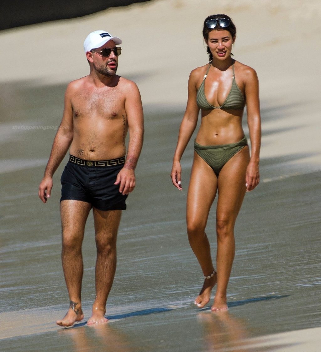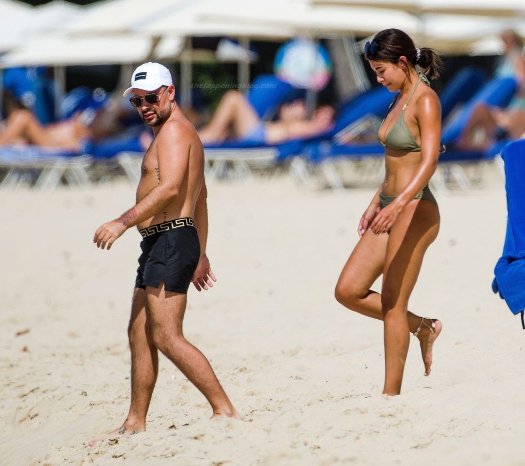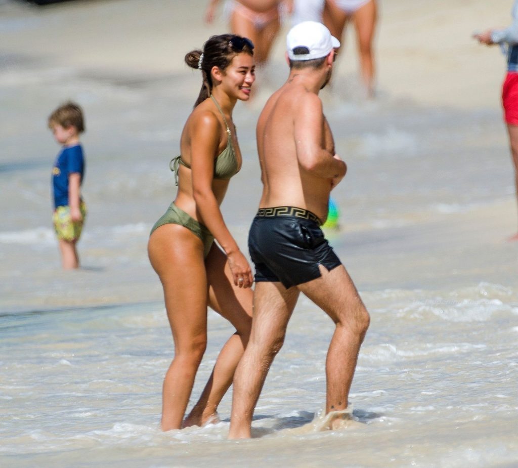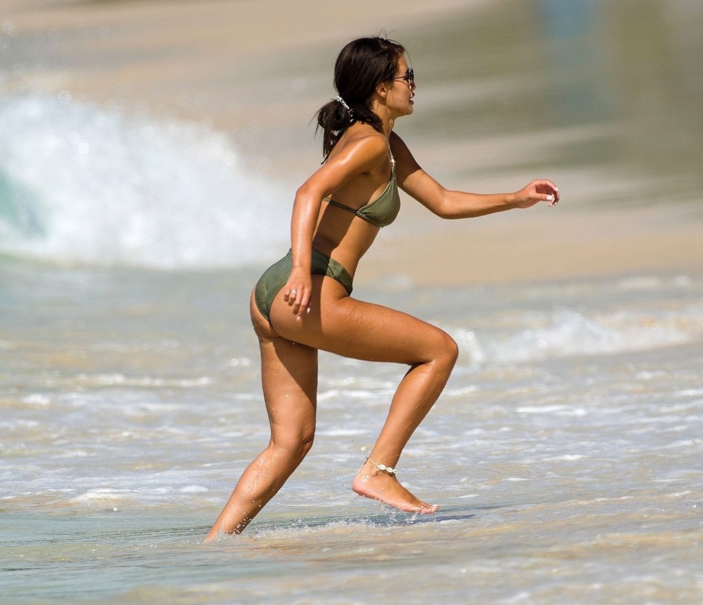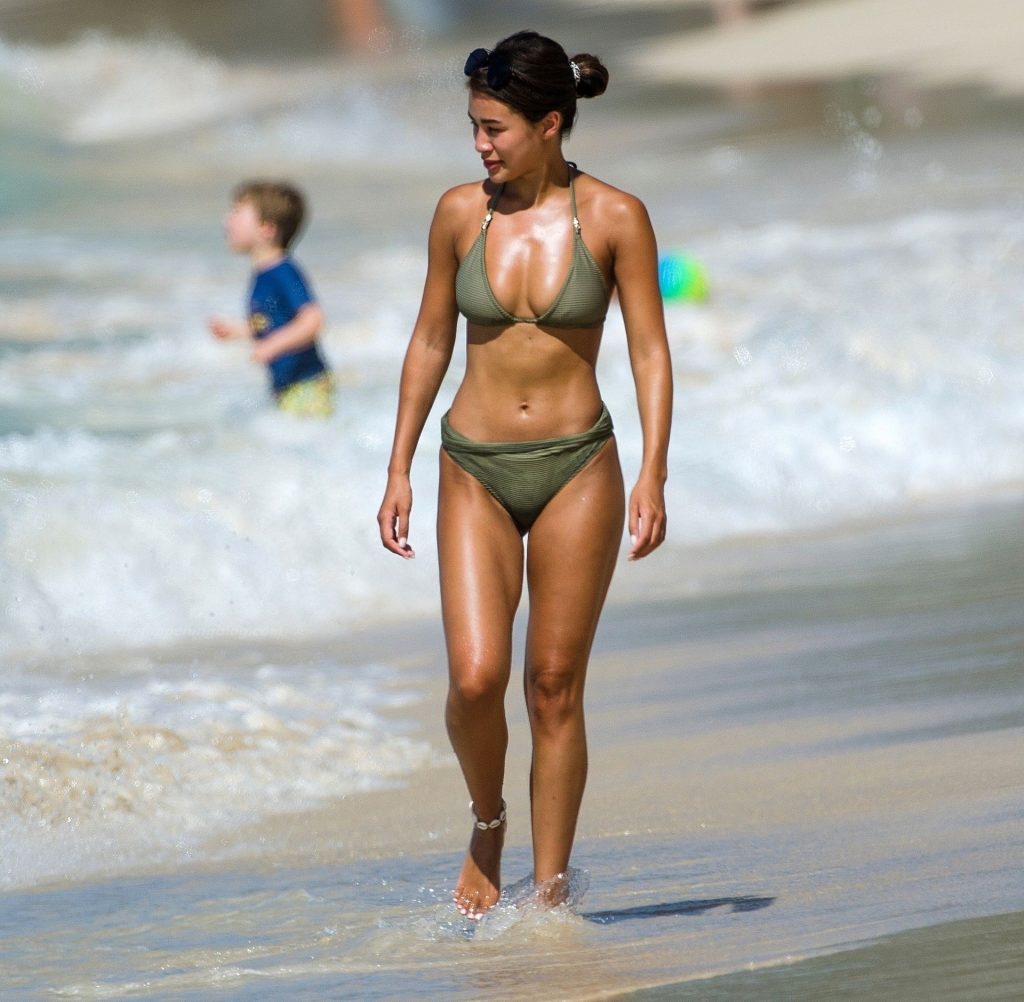 Montana Brown lleva un conjunto de bikini de dos piezas color verde oliva durante sus vacaciones en Barbados, 01/01/2021.