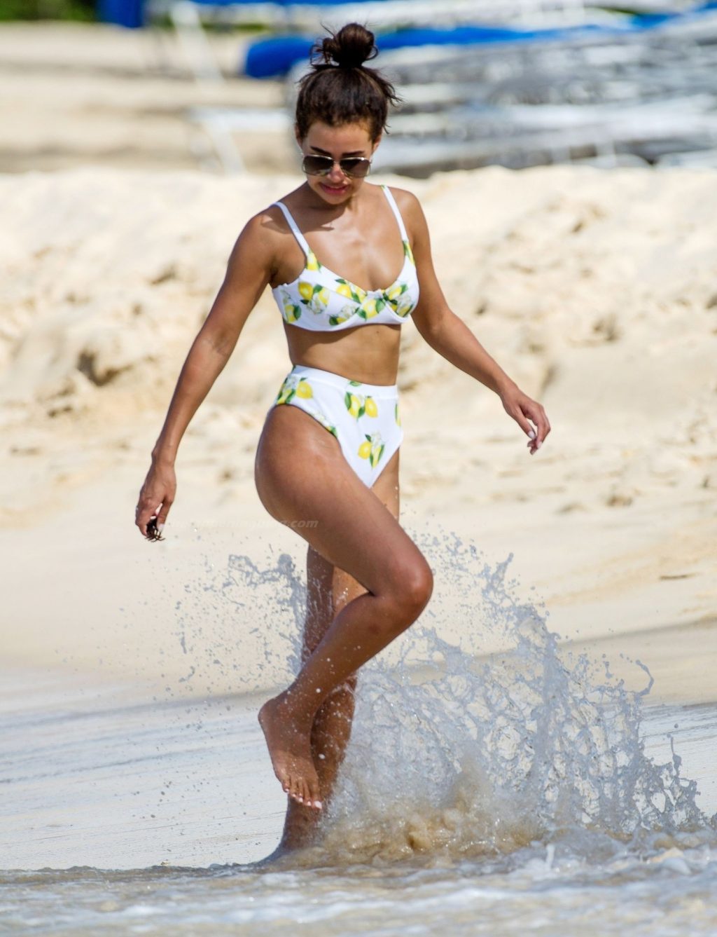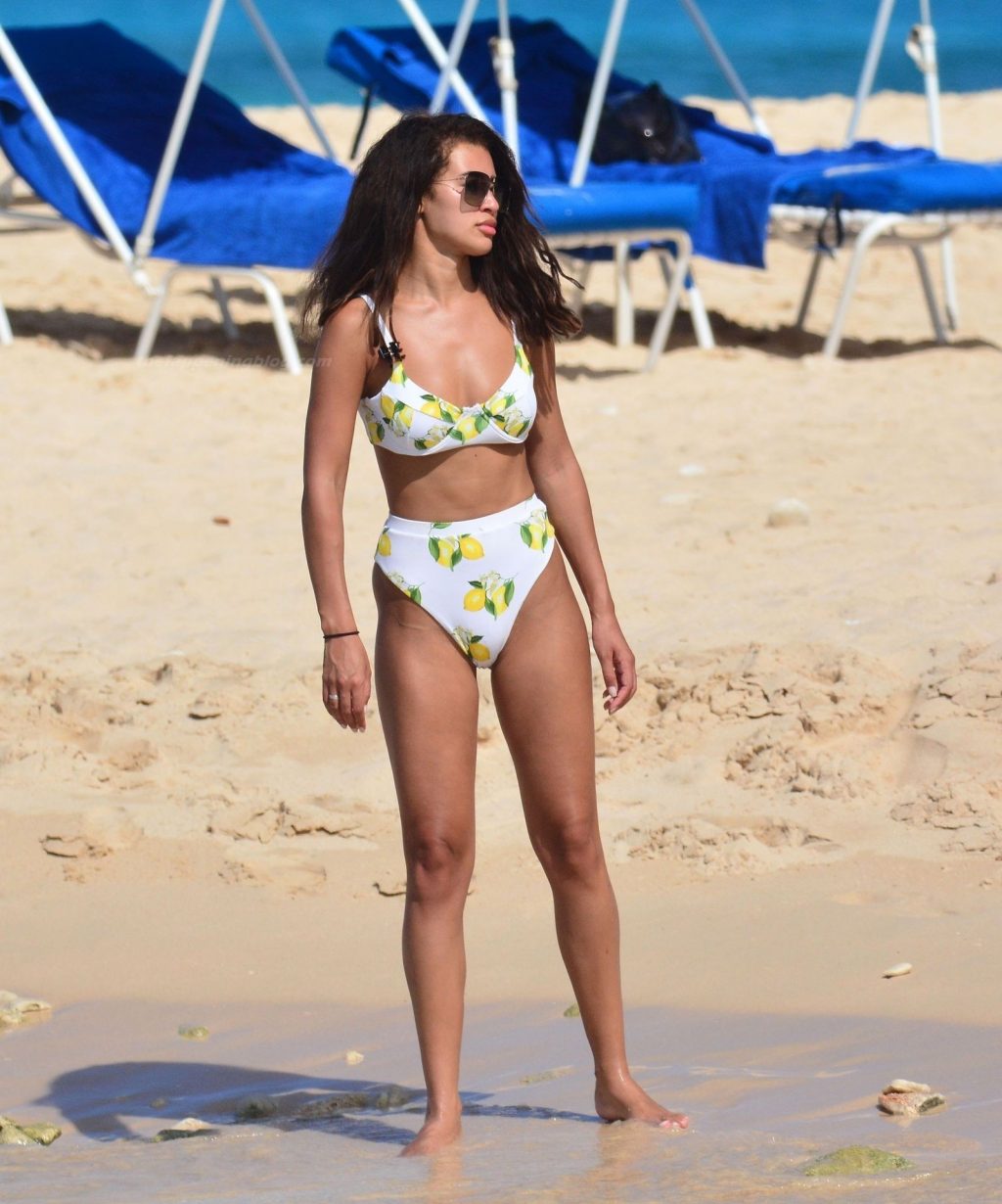 Love Island’s Montana Brown luce un bikini con estampado de limón mientras disfruta de un día en la playa en Barbados, 27/12/2020.