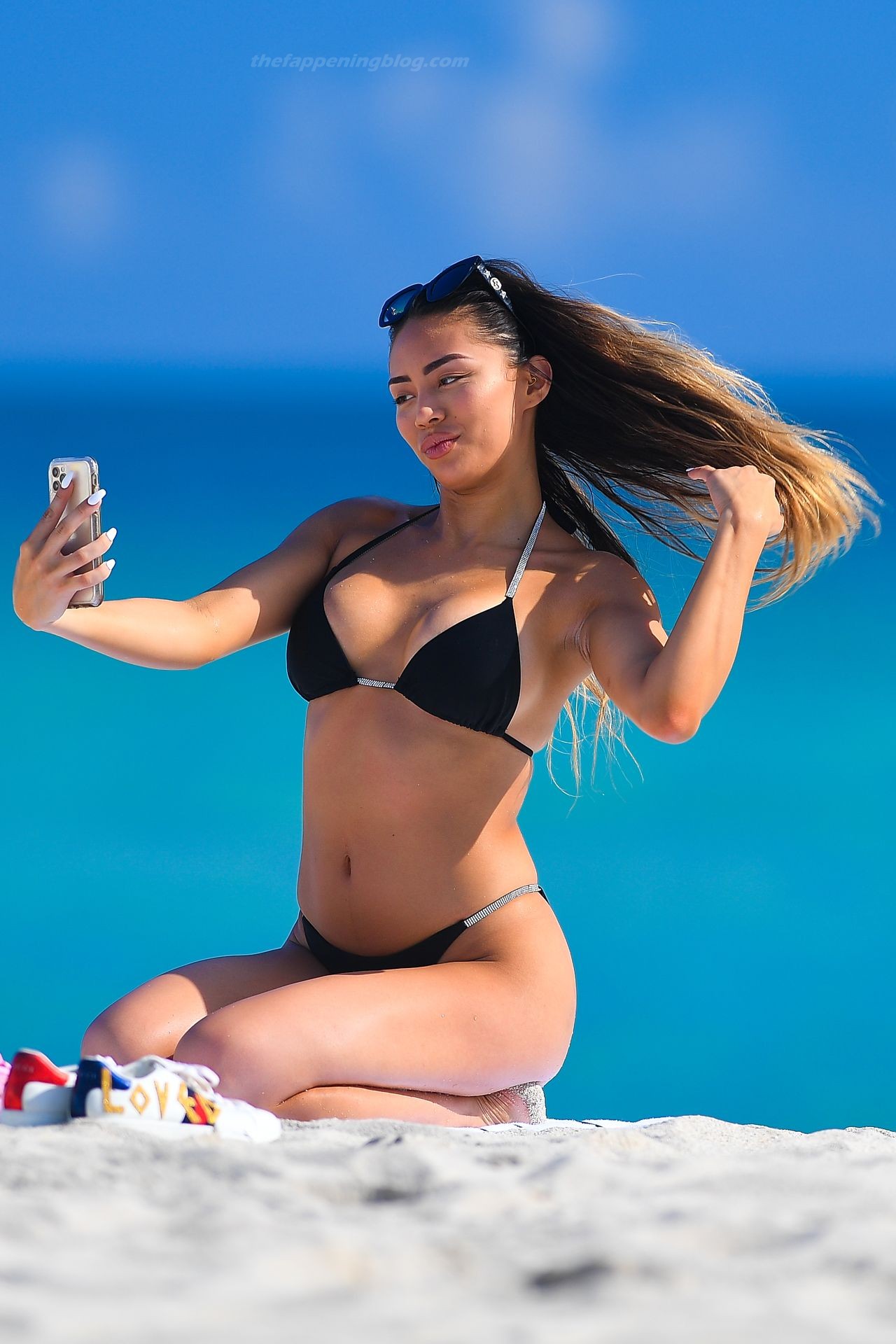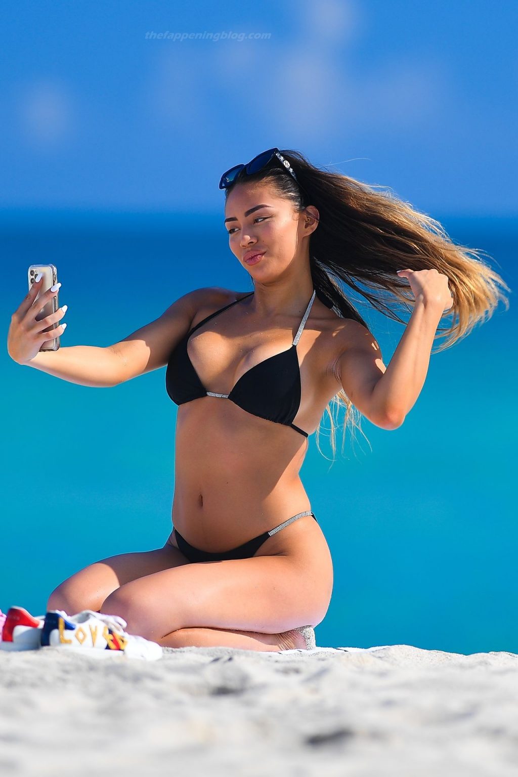 Próxima a divorciarse, la bomba Montana Yao le muestra a su esposo infiel lo que se está perdiendo mientras disfruta de Miami Beach con un diminuto bikini negro, 17/12/2020.