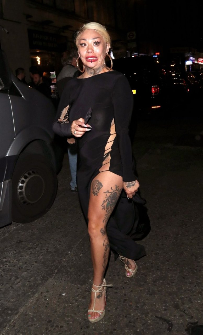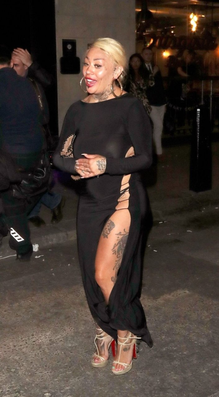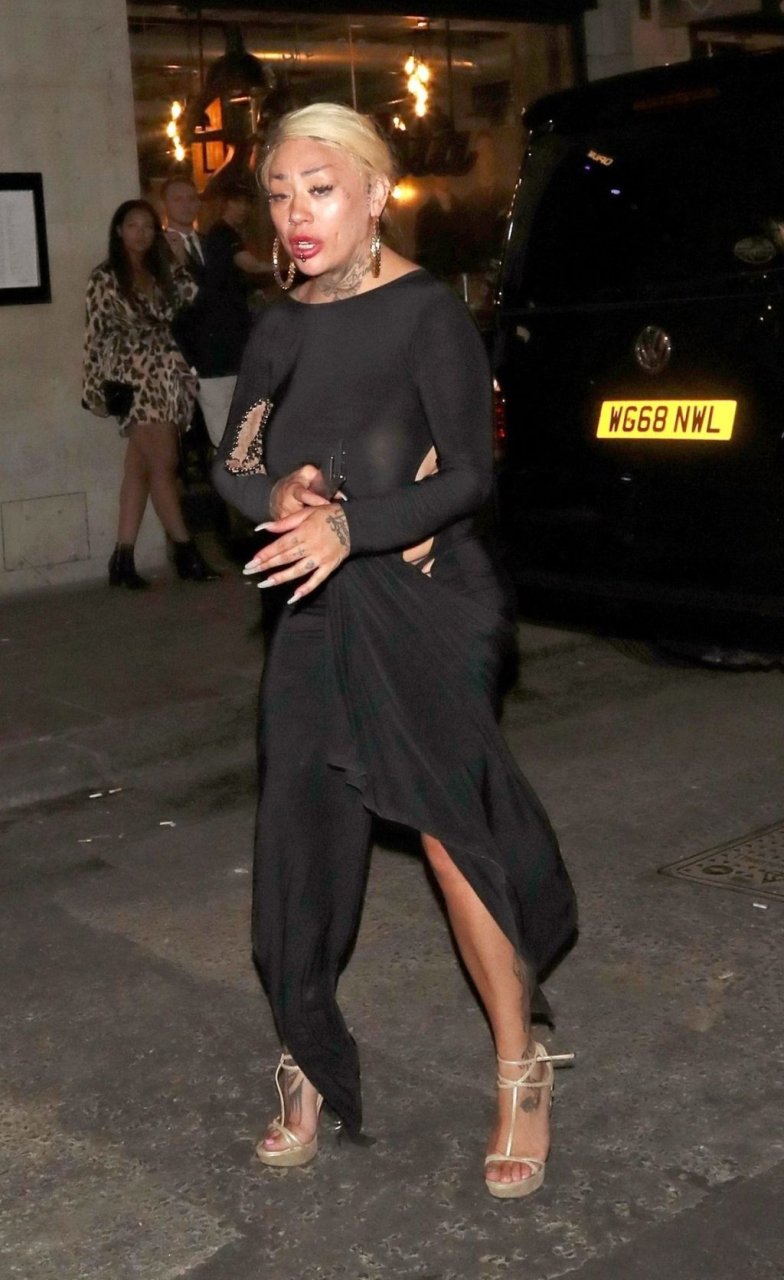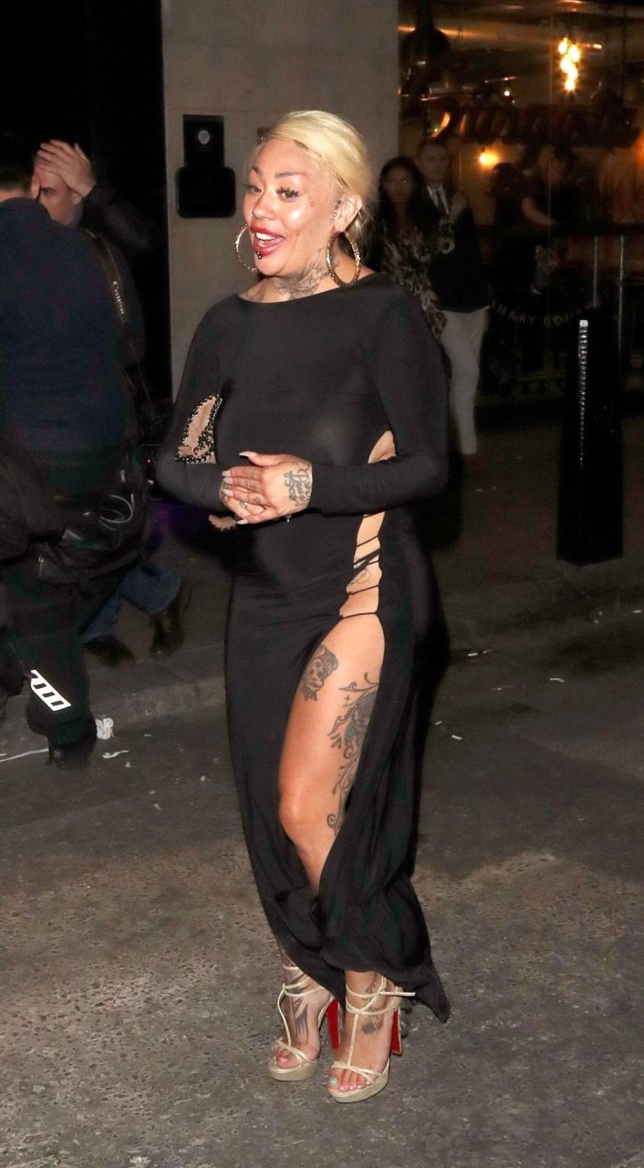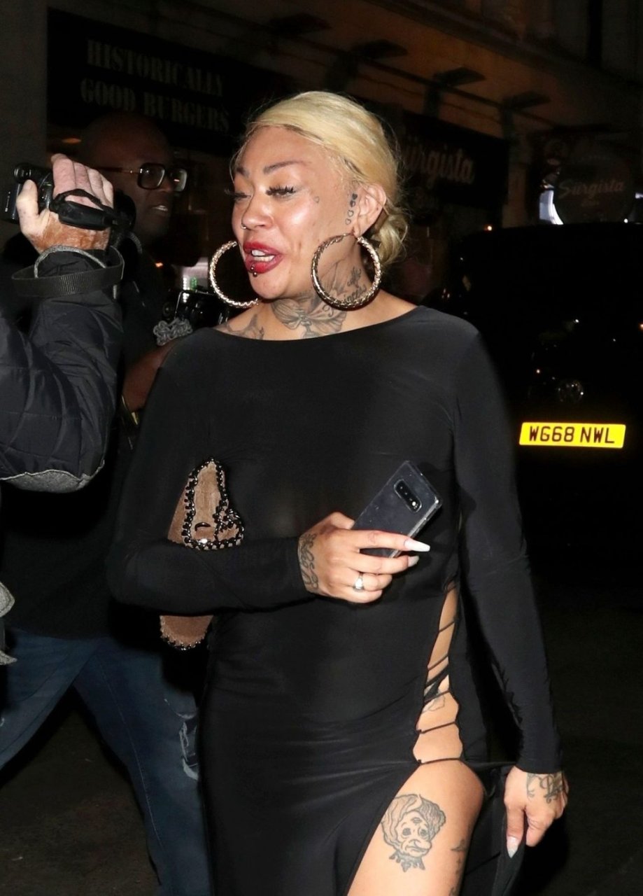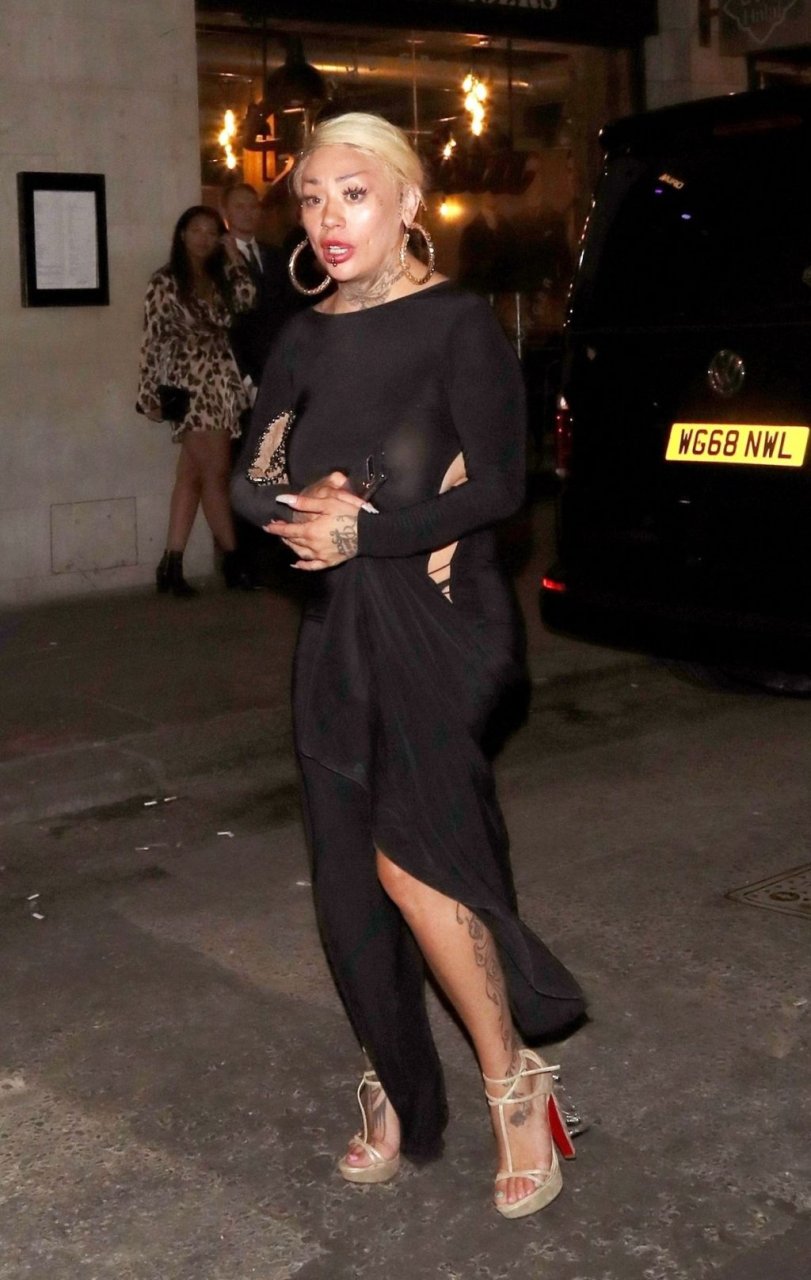 La cantante y compositora Mutya Buena fue vista con un vestido negro transparente sin sujetador al salir de la filmación de Celebs Go Dating en el club Opium de Londres, 08/07/2019.
