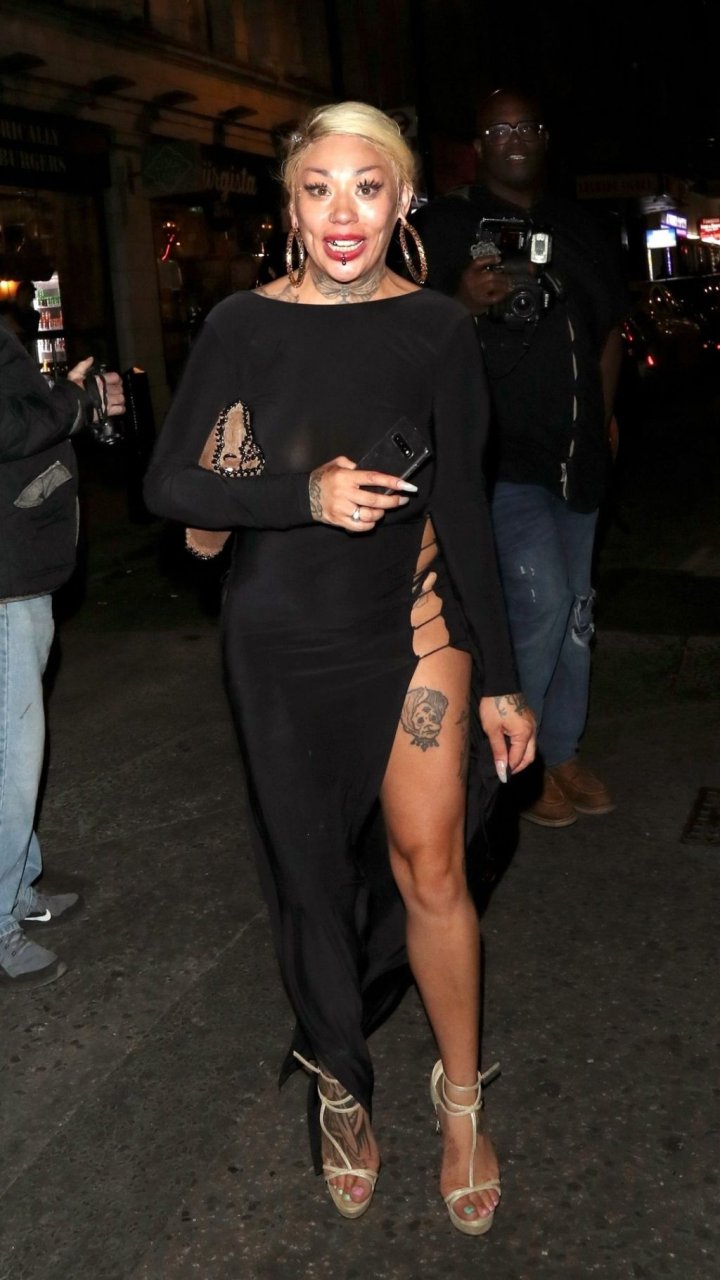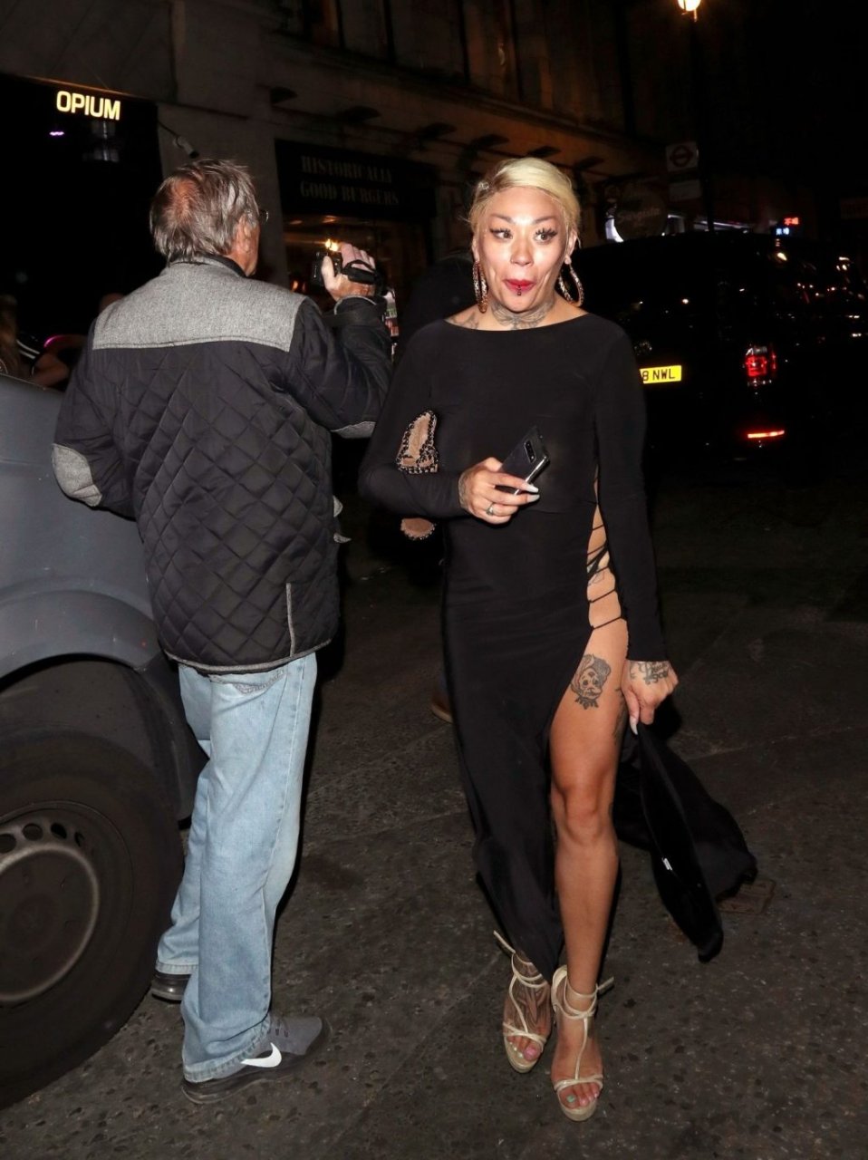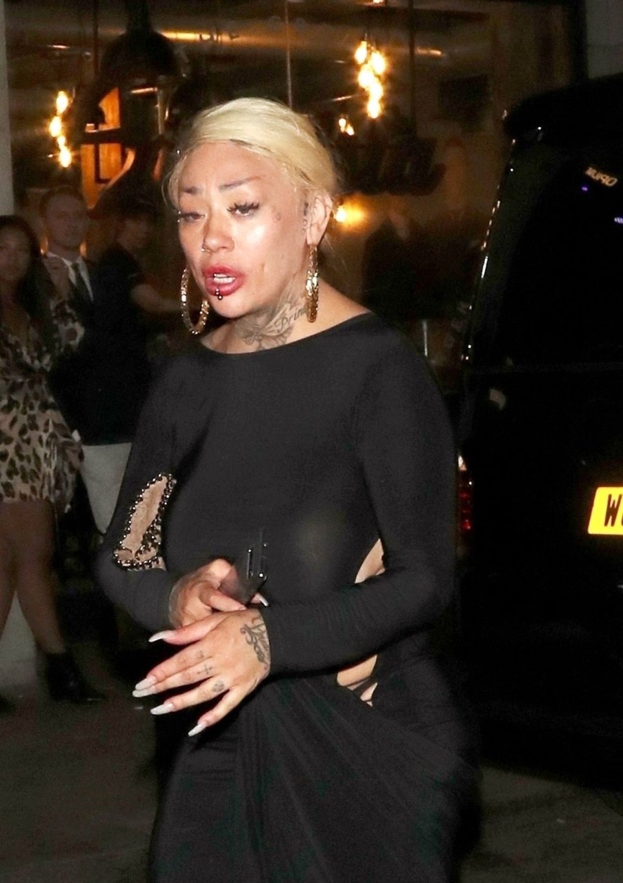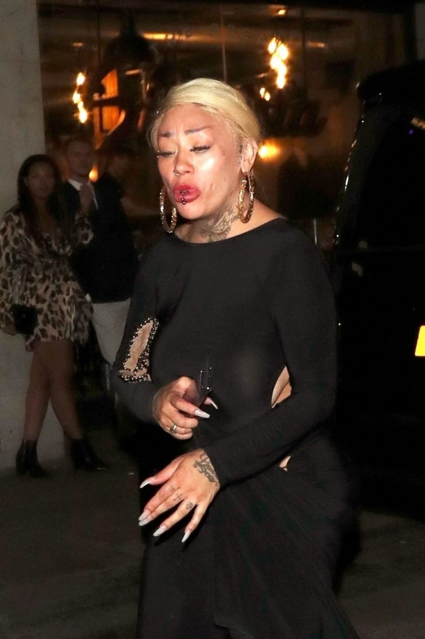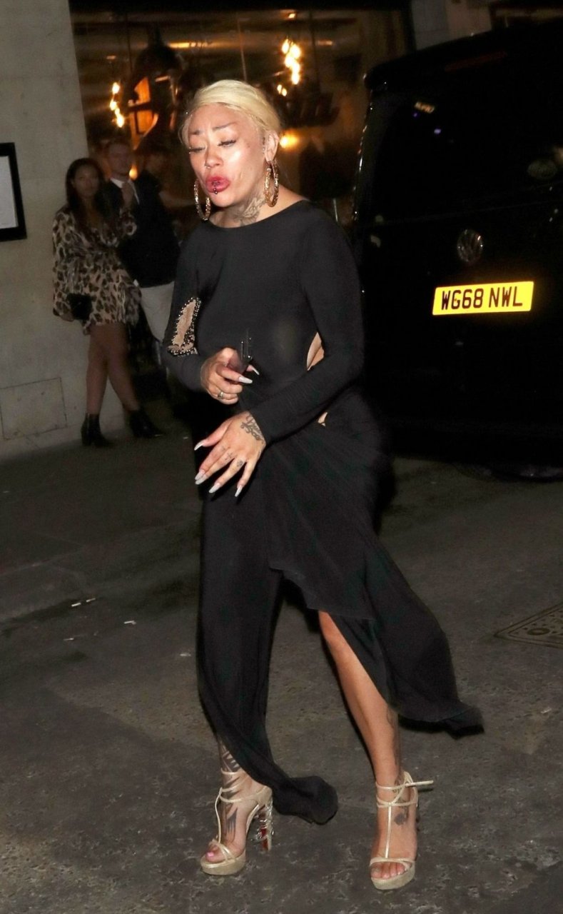 La cantante y compositora Mutya Buena fue vista con un vestido negro transparente sin sujetador al salir de la filmación de Celebs Go Dating en el club Opium de Londres, 08/07/2019.